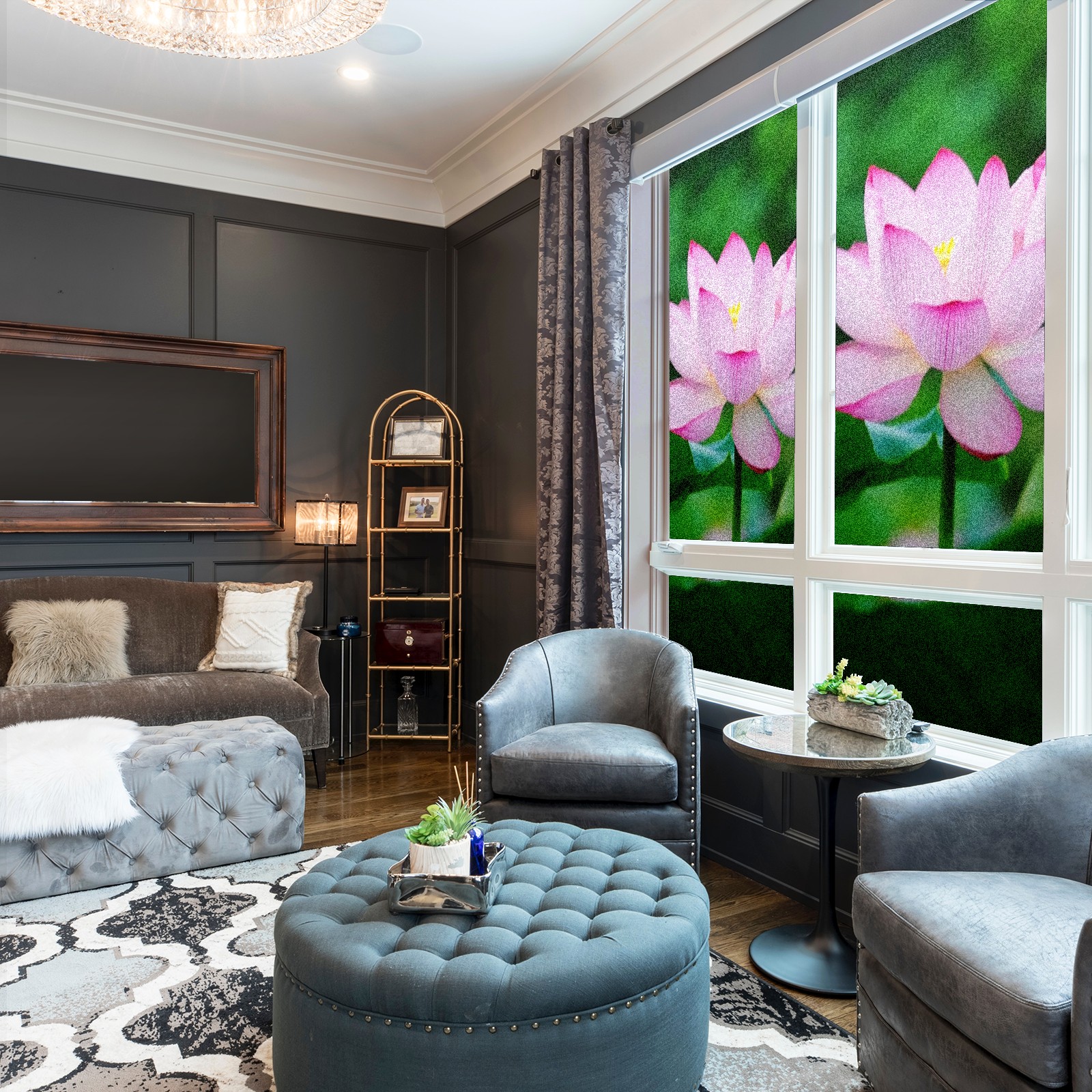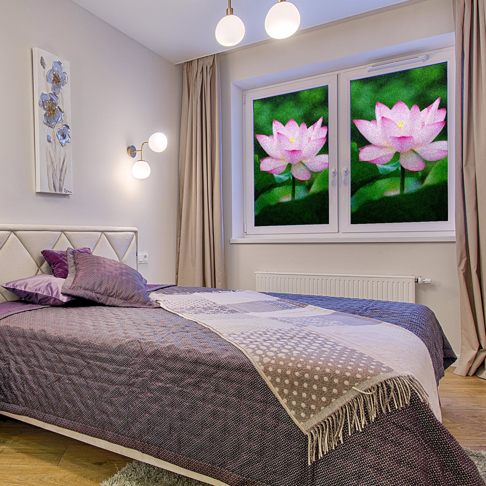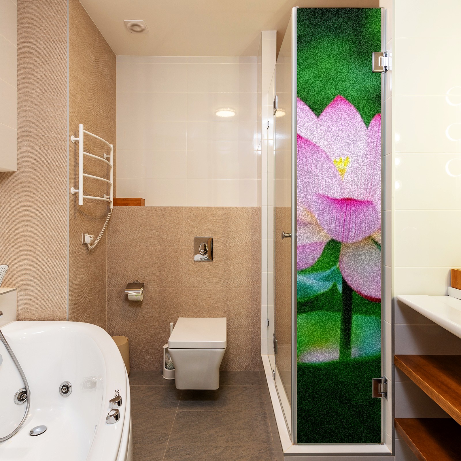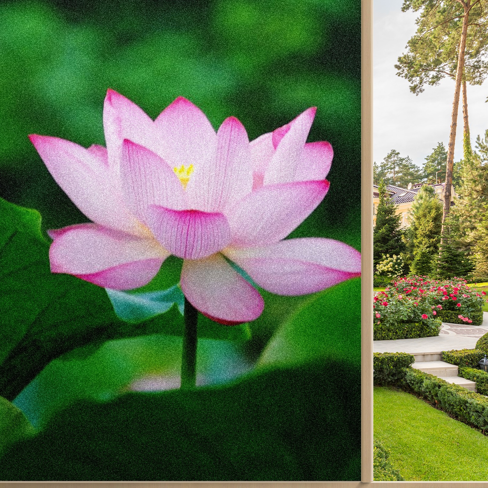 MSINMKOK Window Privacy Film Lotus Flower Decorative Frosted Glass Window Film for Glass Door Bathroom Window 17.7'' x 23.6'' Non-Adhesive Window Decals Stickers
