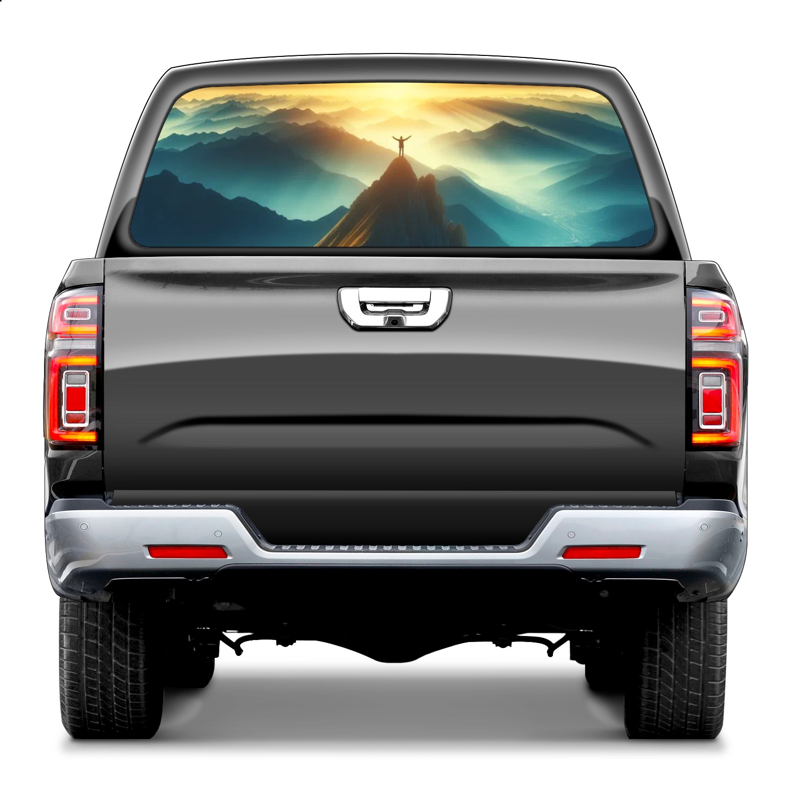 Truck Rear Window Graphics Decals Pickup Trucks Back Window Sticker Full Window Film Decal One Way Visual Waterproof Car Rear Tint Sun Mountain