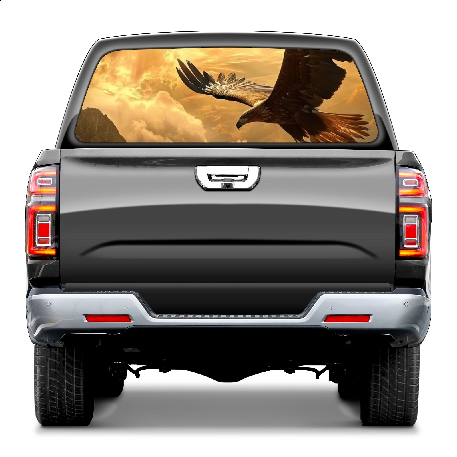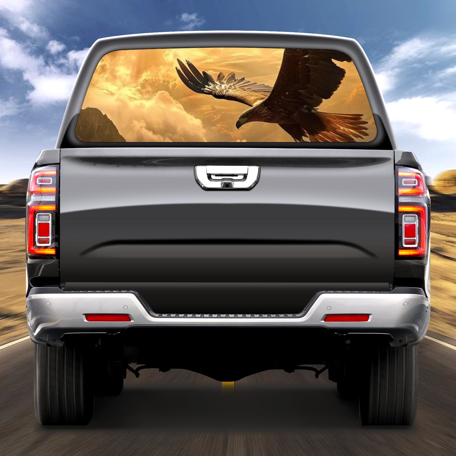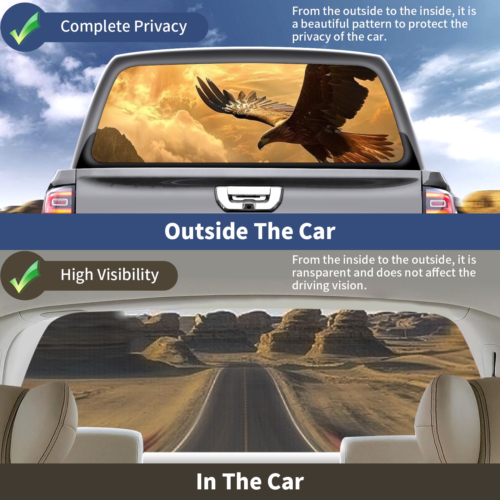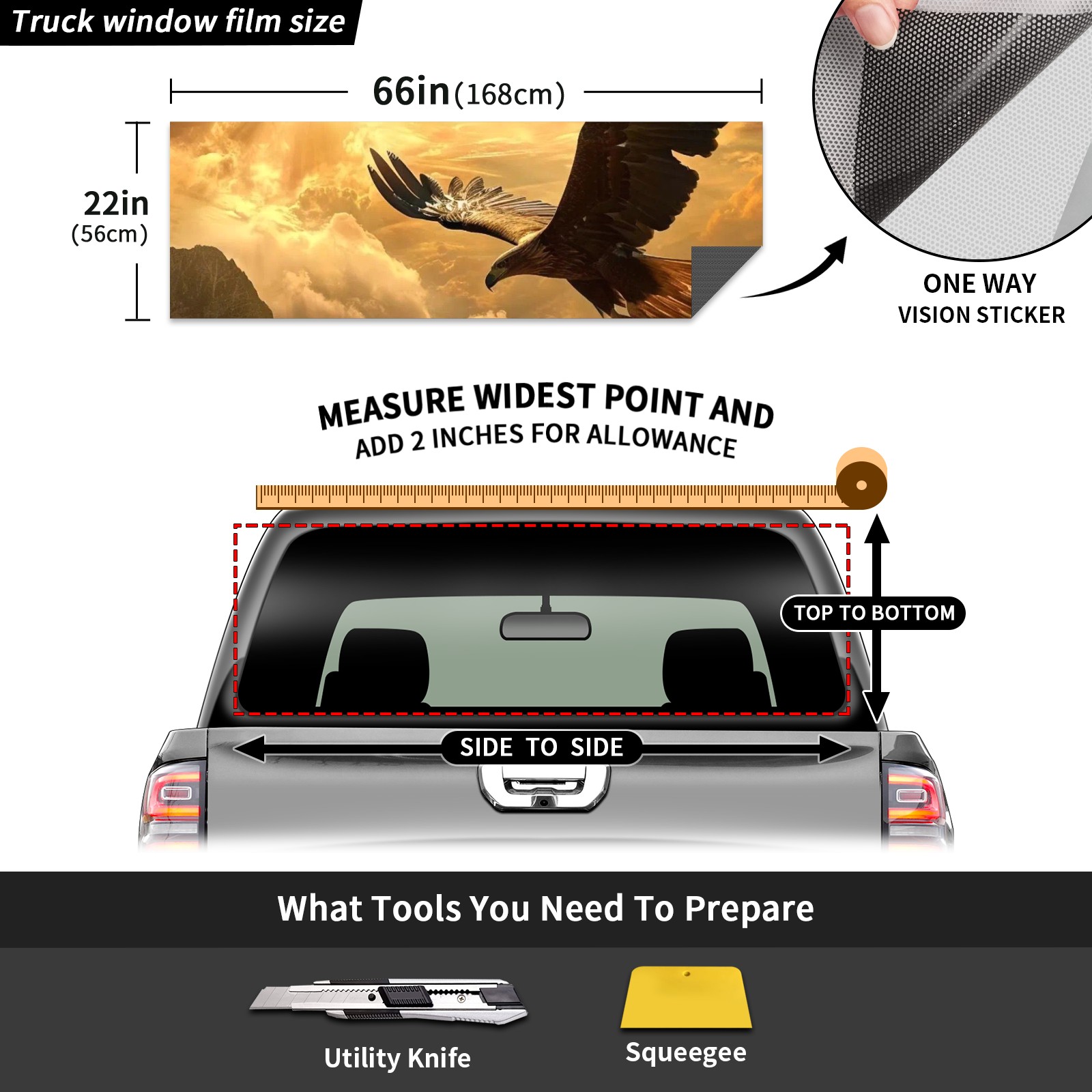 Truck Rear Window Graphics Decals Pickup Trucks Back Window Sticker Full Window Film Decal One Way Visual Waterproof Car Rear Tint Sky Bald Eagle