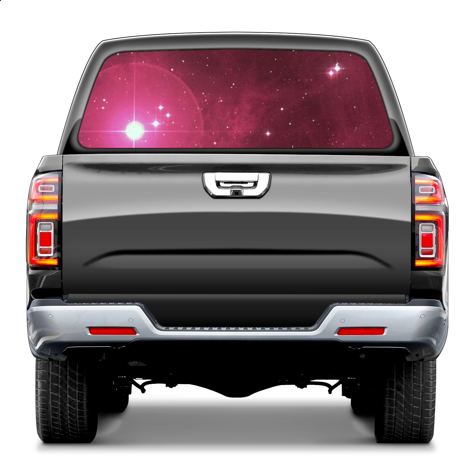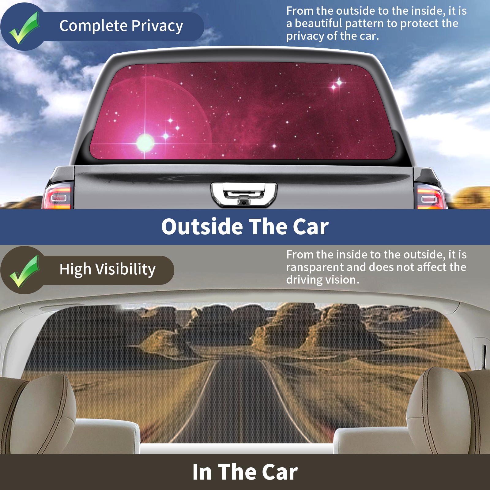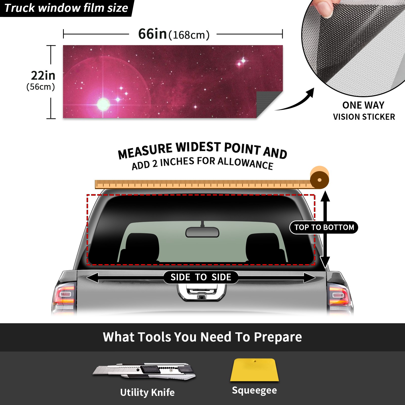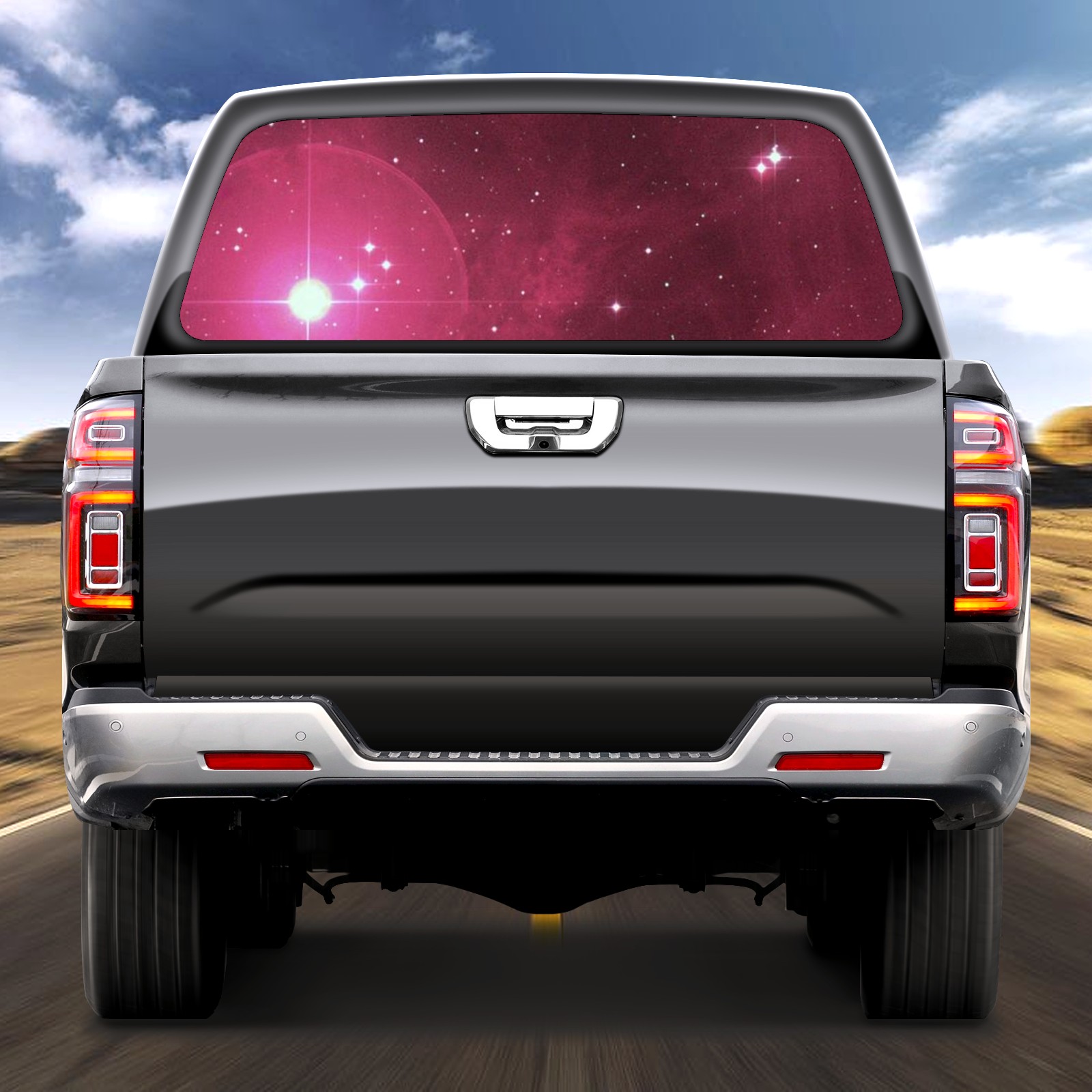 Truck Rear Window Graphics Decals Pickup Trucks Back Window Sticker Full Window Film Decal One Way Visual Waterproof Car Rear Tint Red Starry Sky