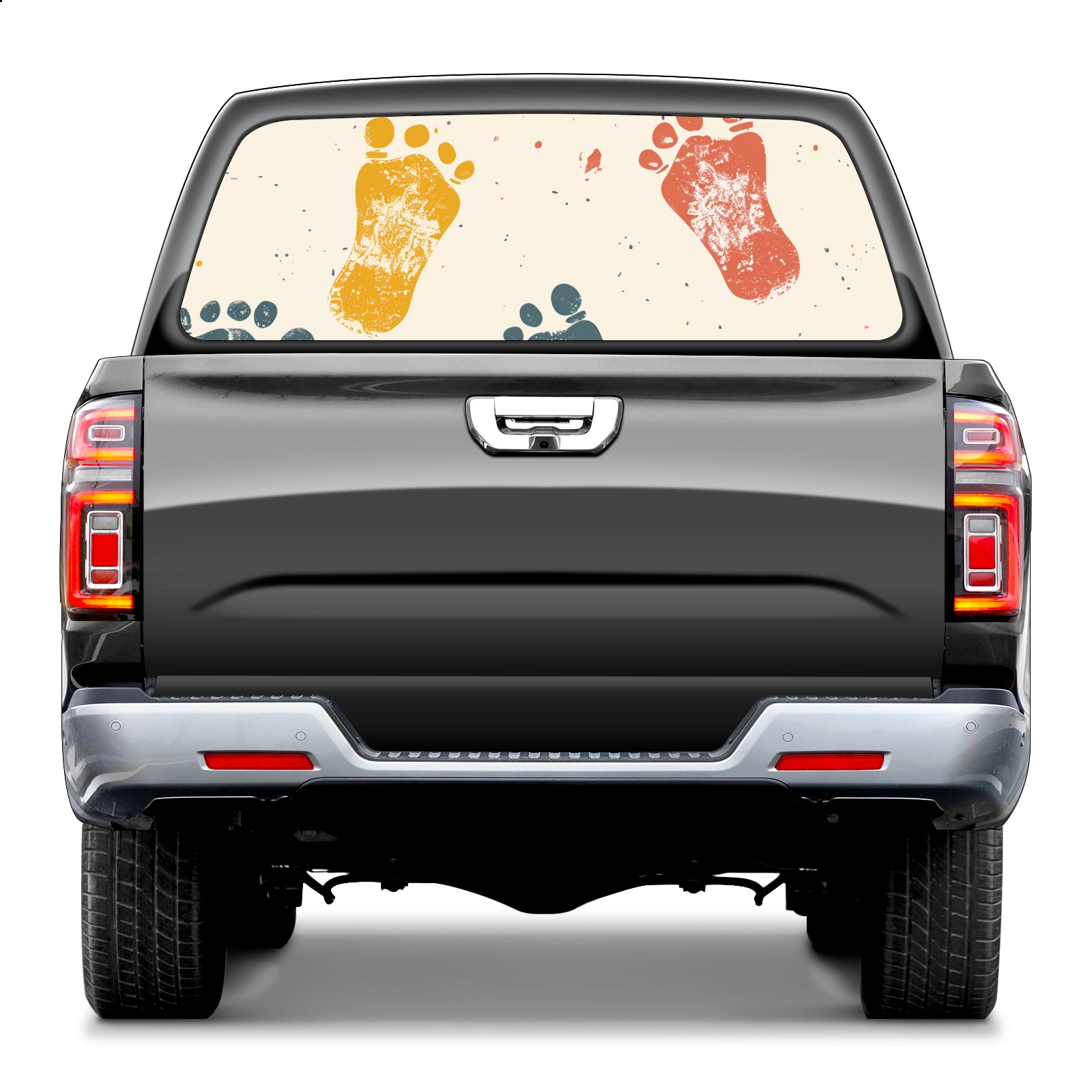 Truck Rear Window Graphics Decals Pickup Trucks Back Window Sticker Full Window Film Decal One Way Visual Waterproof Car Rear Tint Footprints