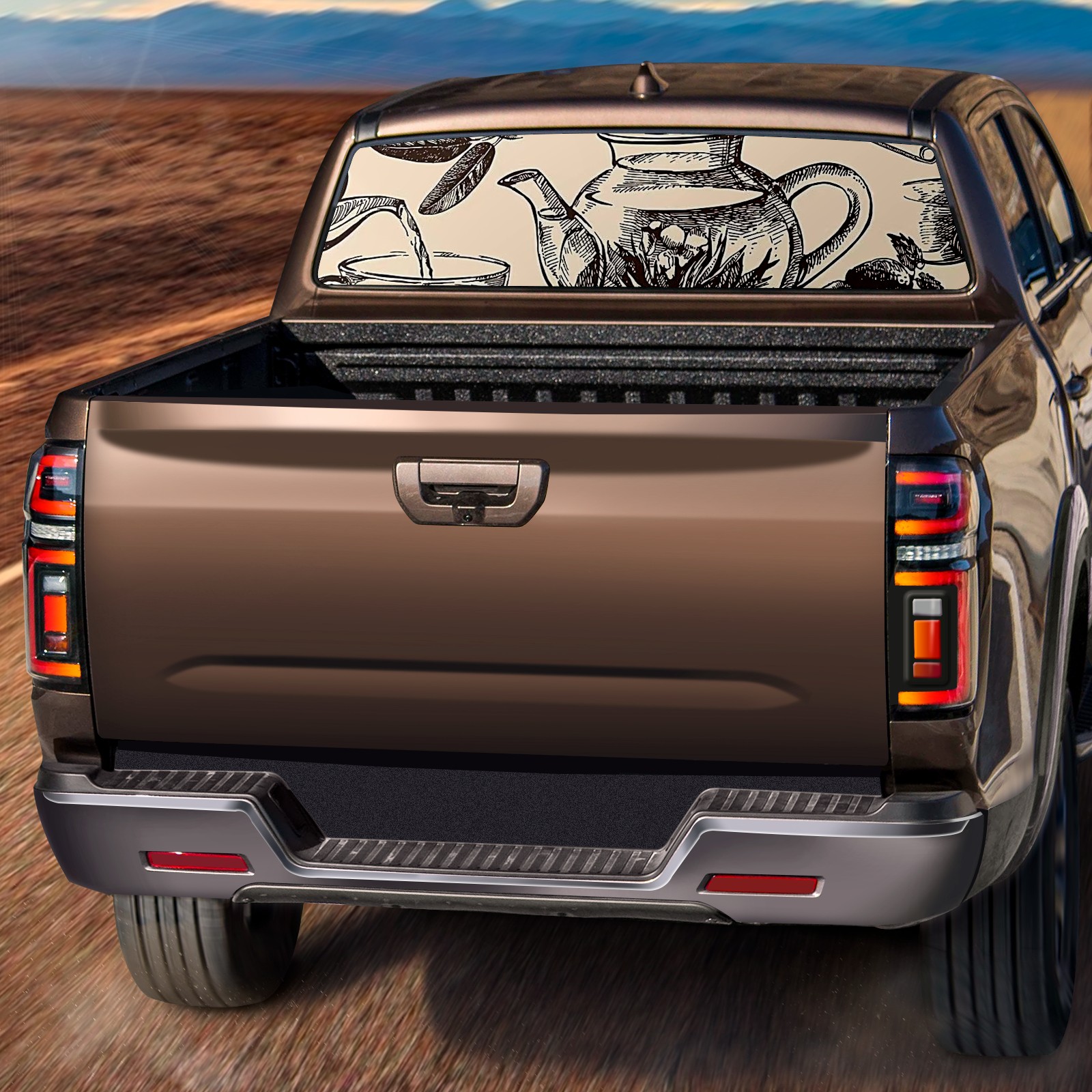 Truck Rear Window Graphics Decals Pickup Trucks Back Window Sticker Full Window Film Decal One Way Visual Waterproof Car Rear Tint Teapot