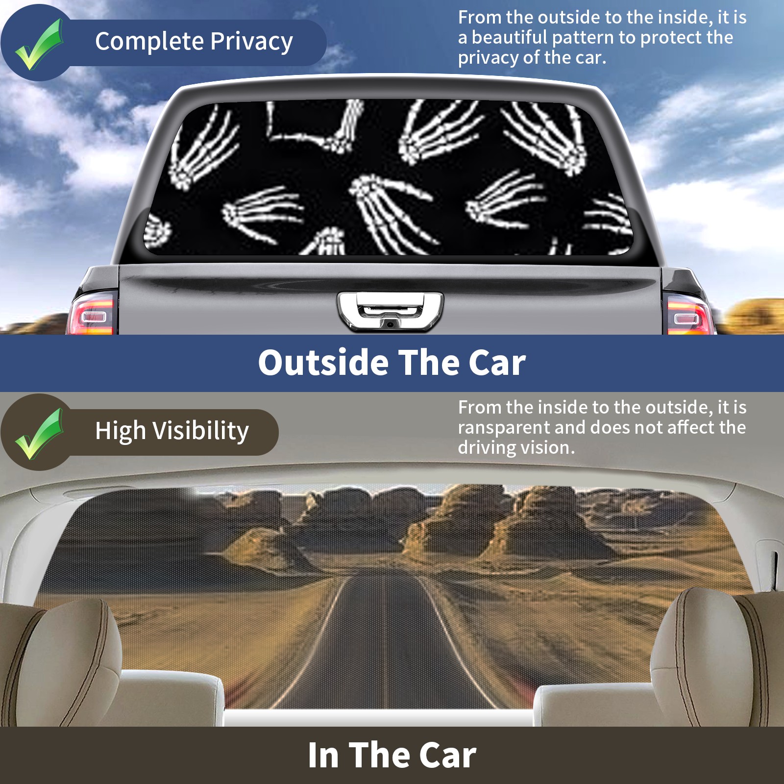 • </b>Window film one-way light transmission Protect your privacy while allowing you to enjoy the scenery outside your window!</b> <br> </b>●Decals Instructions Usage--Teach You To Use Quickly</b> <br> 1.Clean the window galss thoroughly <br> 2.Use a Squeegee or other card to scrape off the remaining water and bumps(don't use too much force) <br> 3.Remove the film's back cover .Use a knife to cut out a suitable contour and wipe off the remaining water(you can also use a hair dryer to blow dry) <br> 4.Find a suitable location and stick a sticker <br> </b>●Unique Design</b> <br> ZXIVGOQFR Back window stickers ‘s smart looking and unique cute design makes your vehicle special under sunshine. Makes your car easy to identify, perfect for finding your car in crowded parking lots and garages.funny visor reflects personality and attitude. <br> </b>●Perfect Gift for all Drivers<br></b> We create all the gifts and accessories you only need to choose what you like. Get full tailgate wraps, rear window decals, and everything you need to make your pickup truck look awesome. <br> </b> Decorate Your Pickup Truck With Rear Window Decal Today!</b>