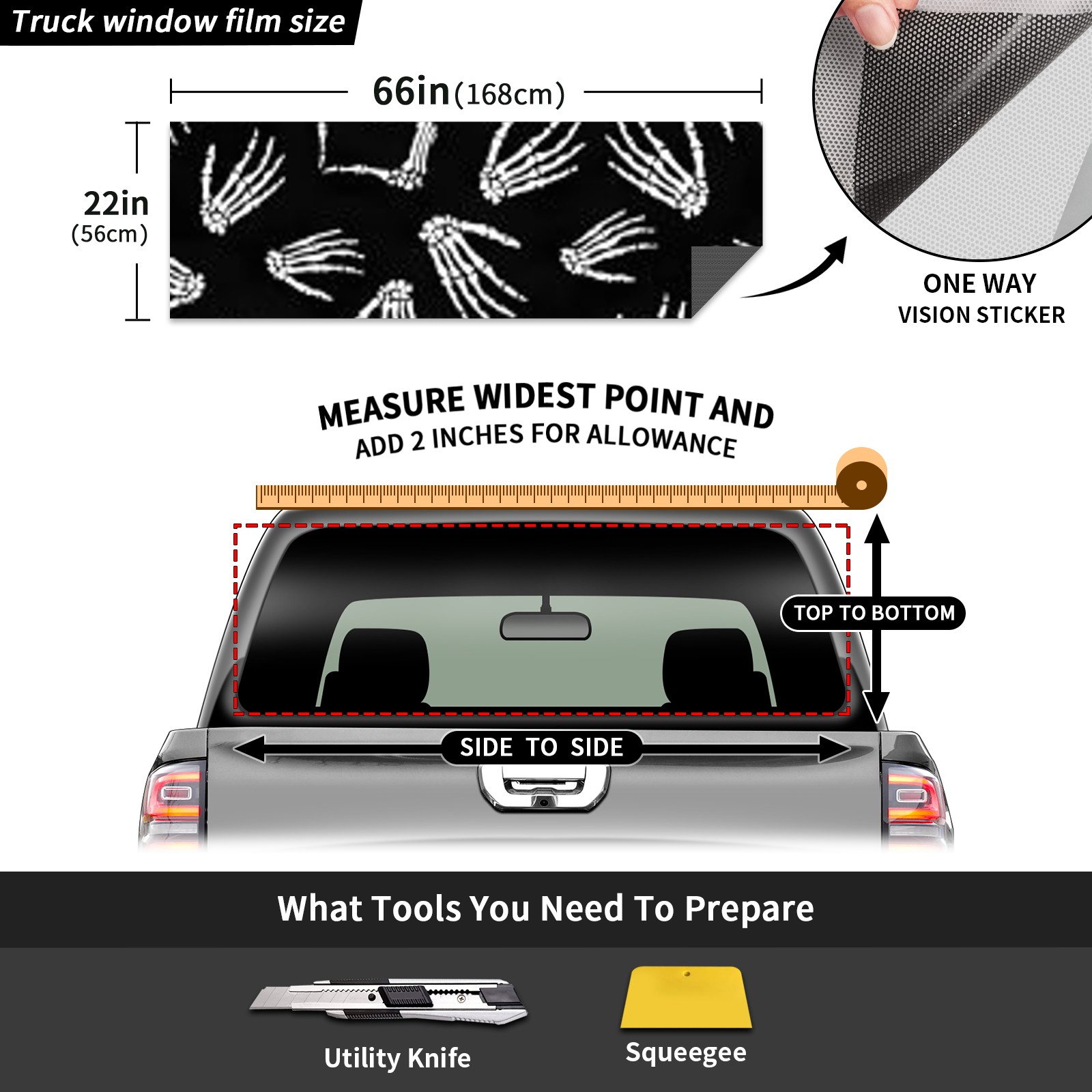 Truck Rear Window Graphics Decals Pickup Trucks Back Window Sticker Full Window Film Decal One Way Visual Waterproof Car Rear Tint Finger