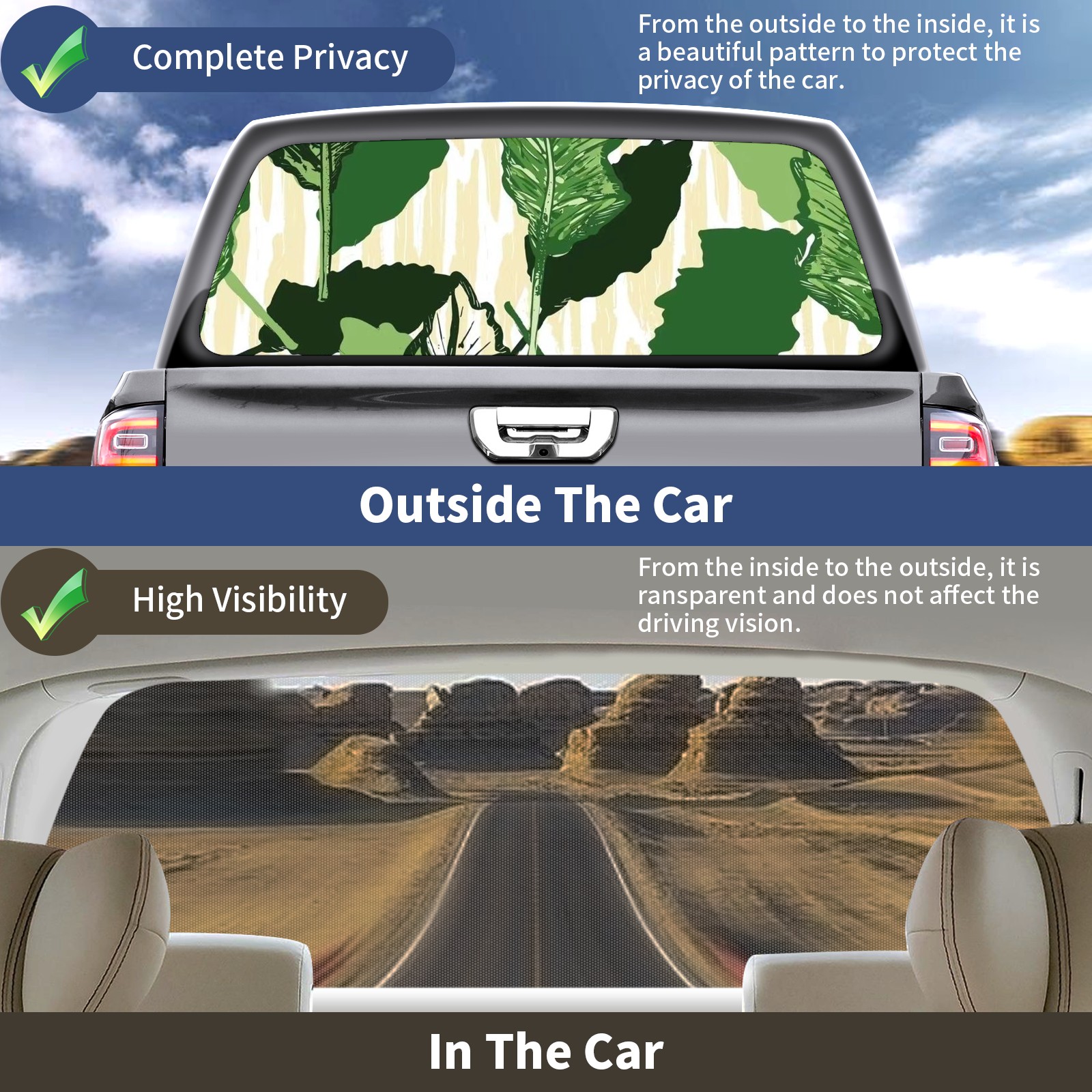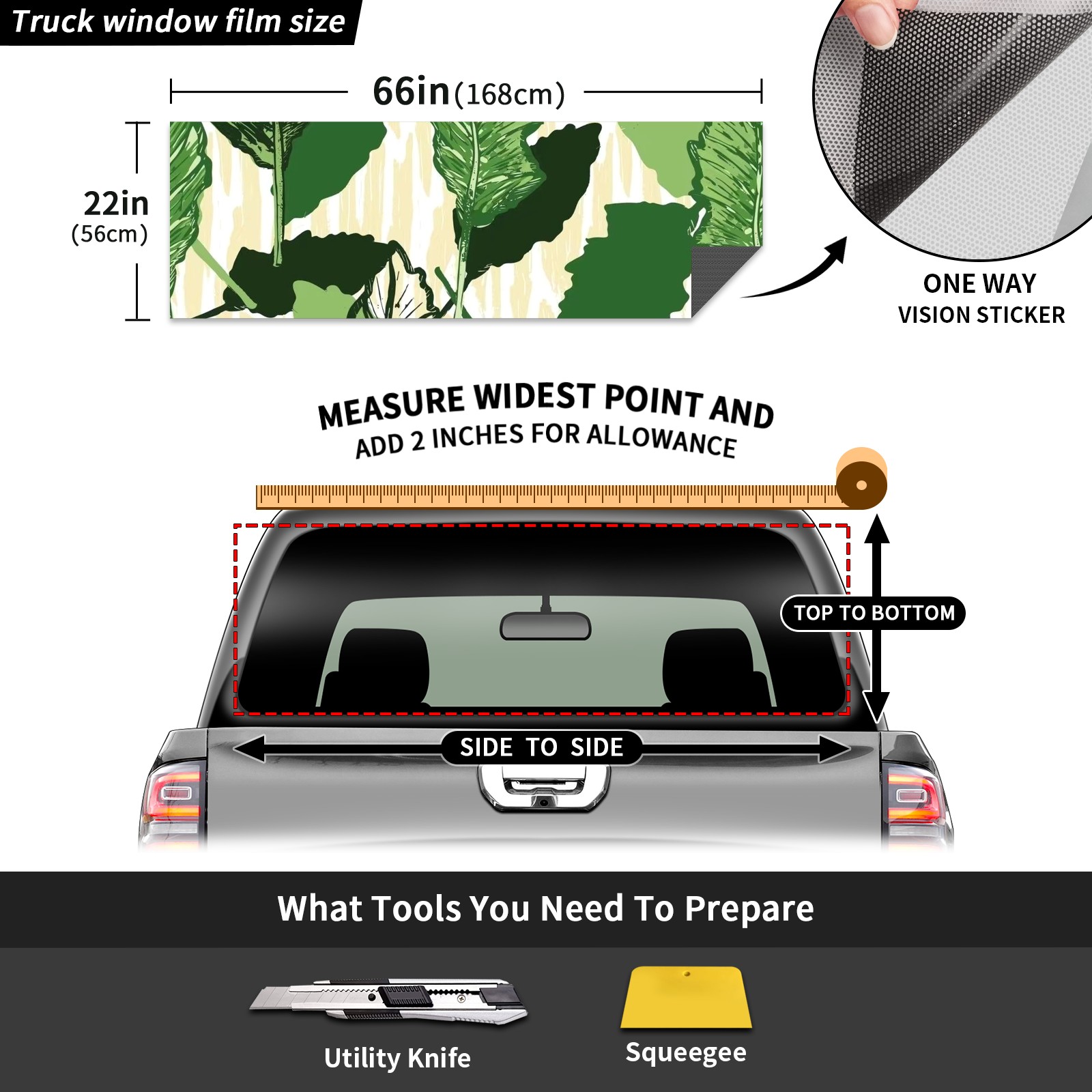 Truck Rear Window Graphics Decals Pickup Trucks Back Window Sticker Full Window Film Decal One Way Visual Waterproof Car Rear Tint Green Leaves