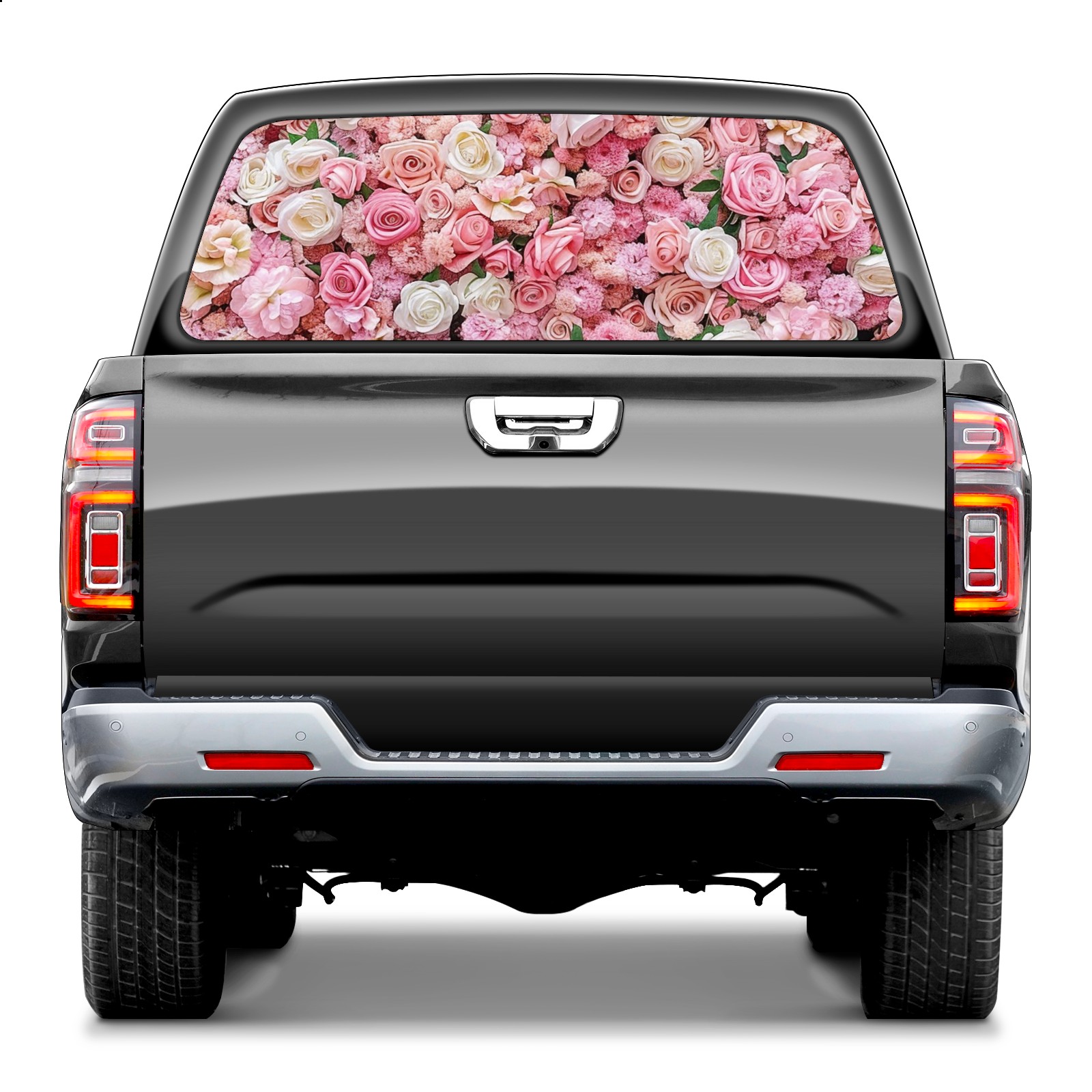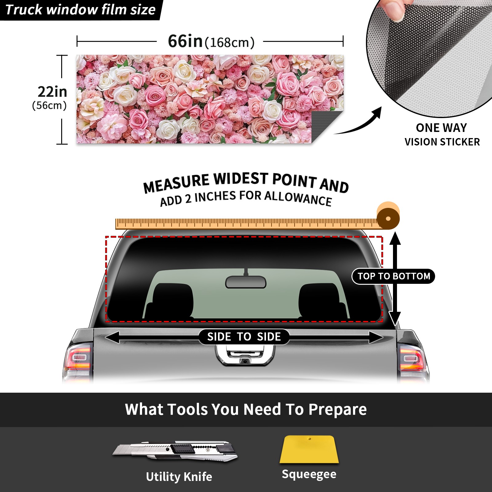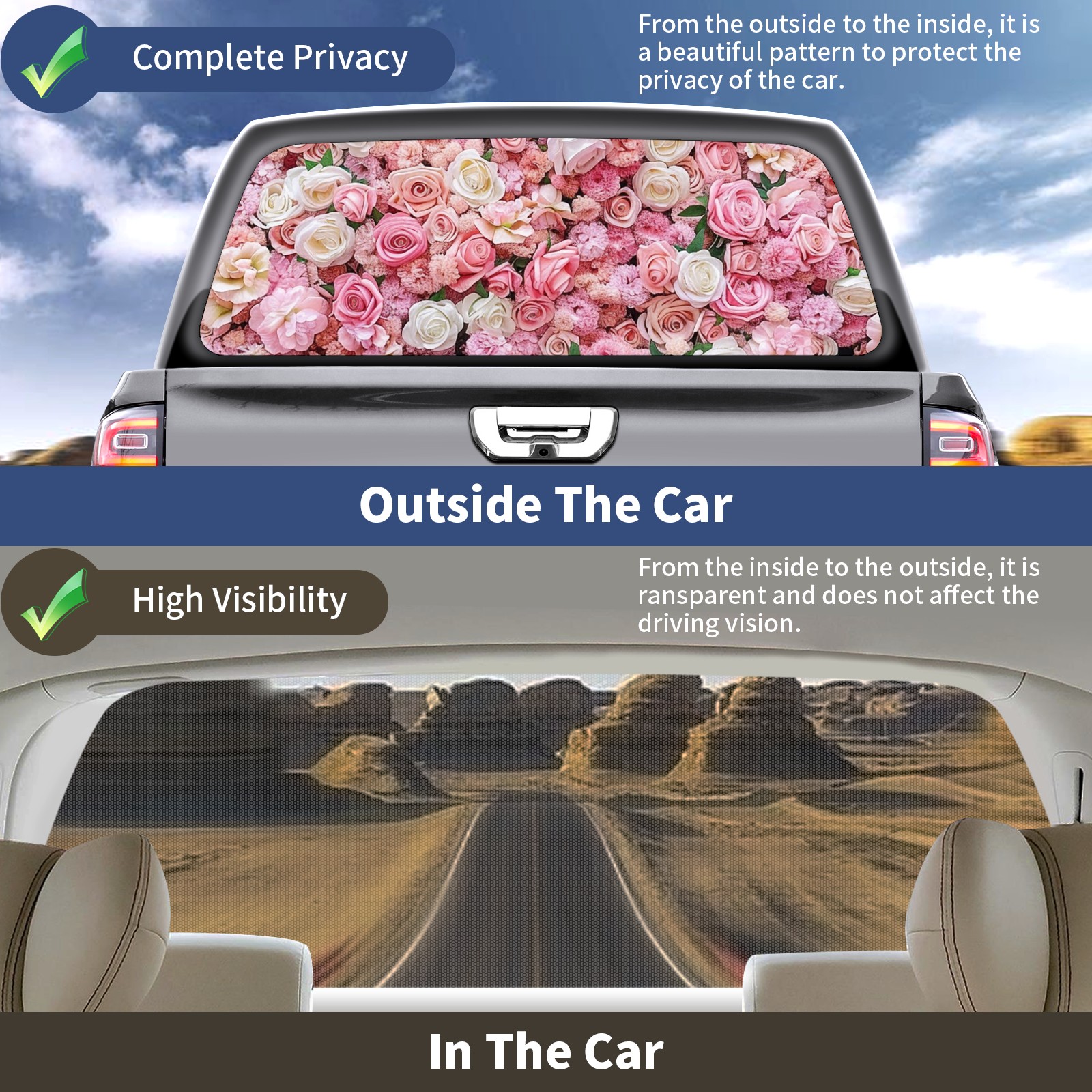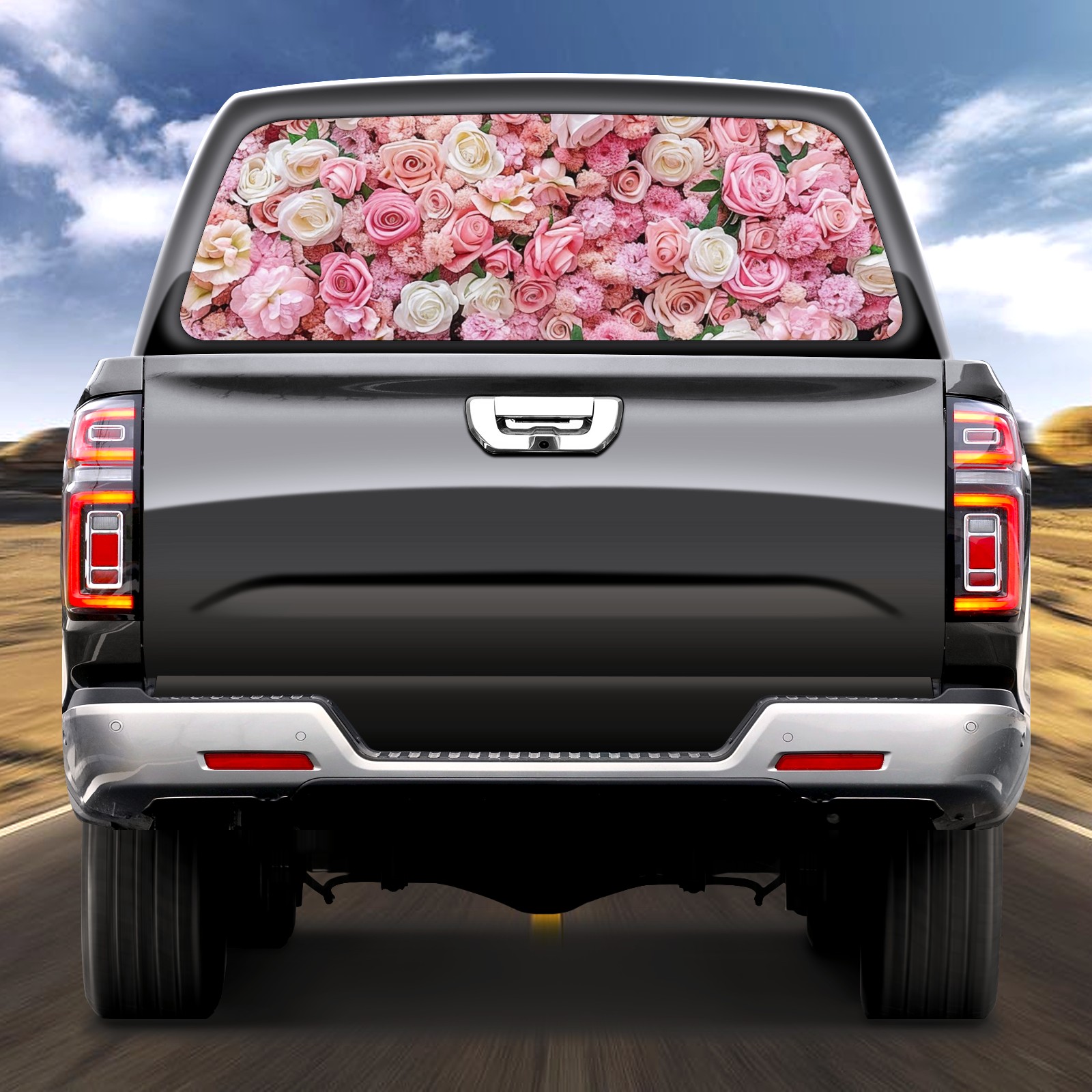 Truck Rear Window Graphics Decals Pickup Trucks Back Window Sticker Full Window Film Decal One Way Visual Waterproof Car Rear Tint Flower111