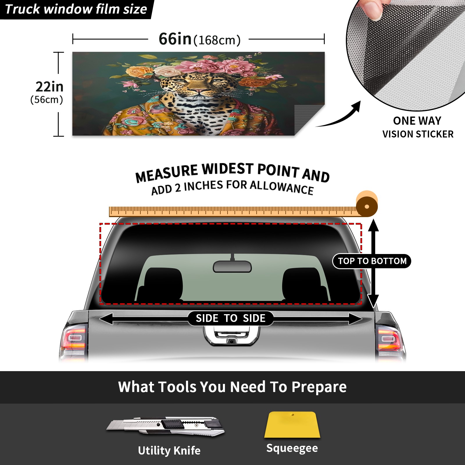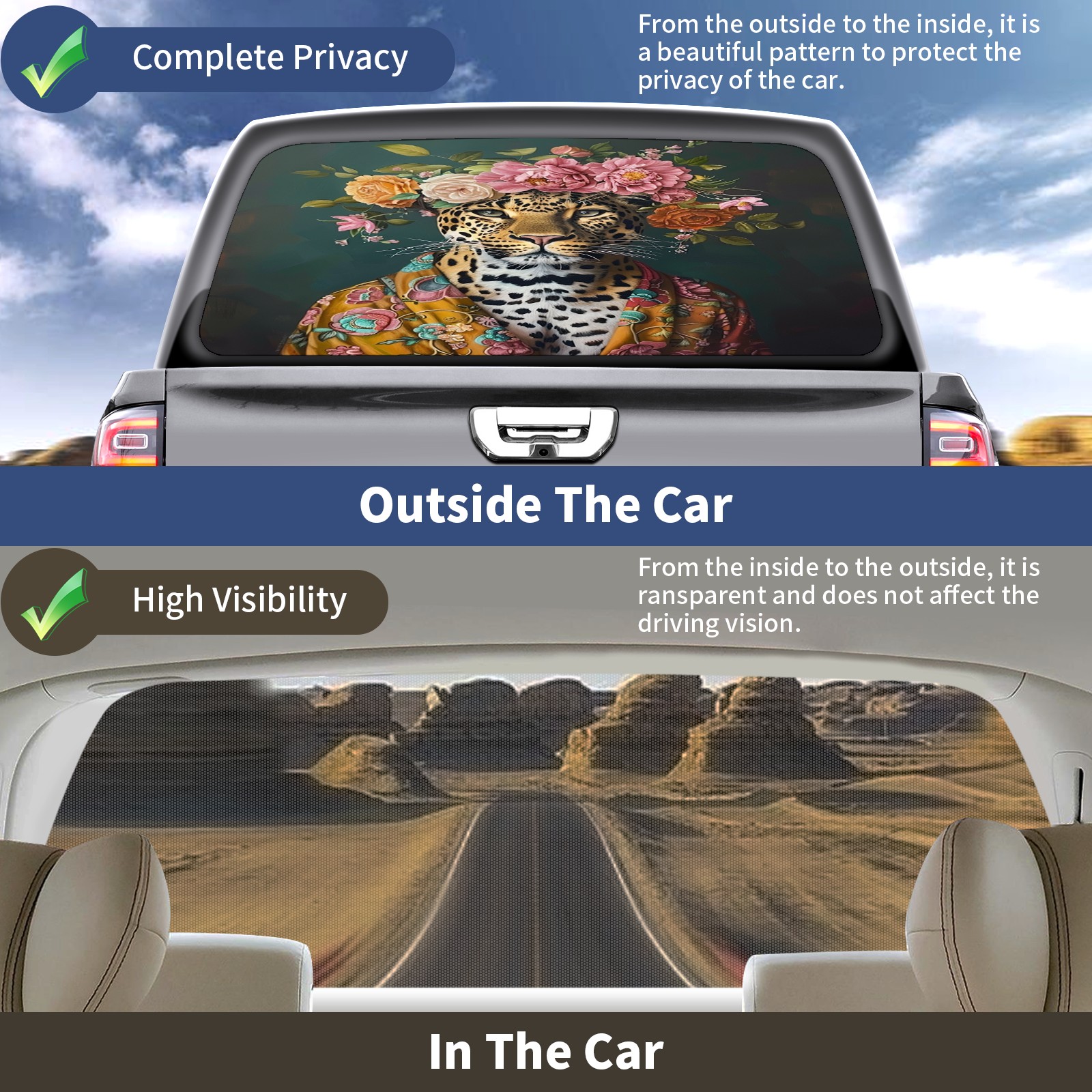 Truck Rear Window Graphics Decals Pickup Trucks Back Window Sticker Full Window Film Decal One Way Visual Waterproof Car Rear Tint Tiger
