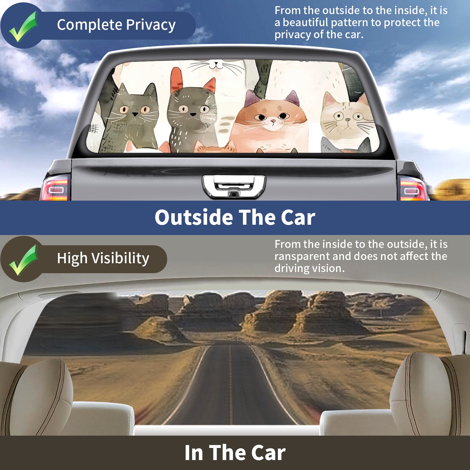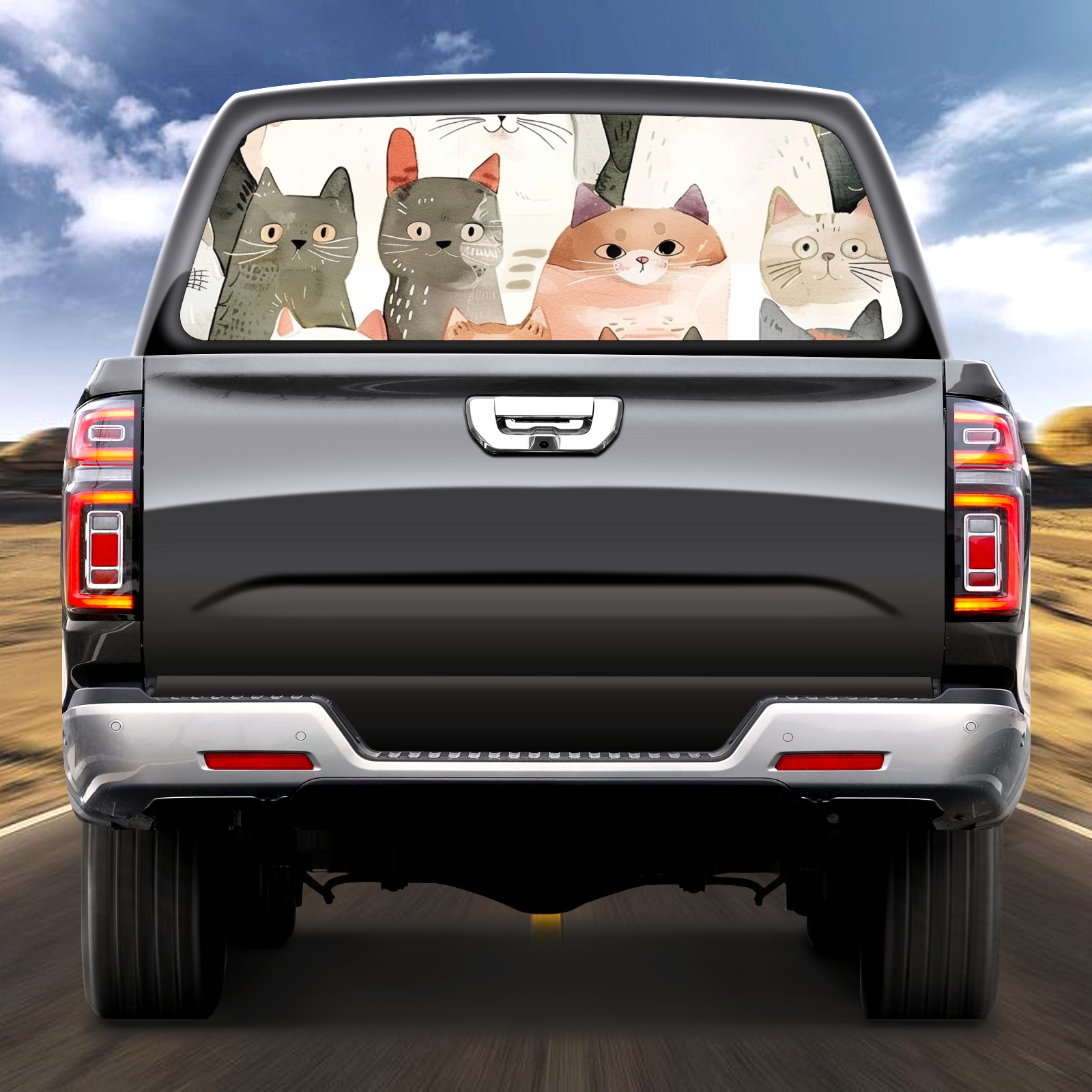 Truck Rear Window Graphics Decals Pickup Trucks Back Window Sticker Full Window Film Decal One Way Visual Waterproof Car Rear Tint Cat