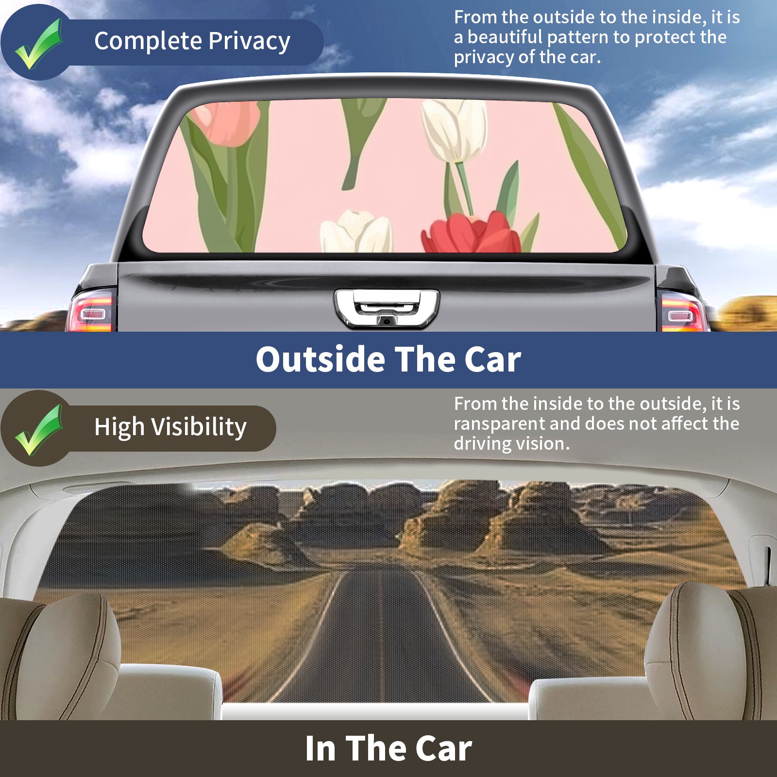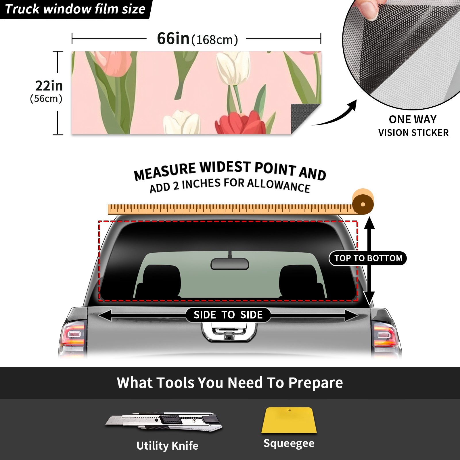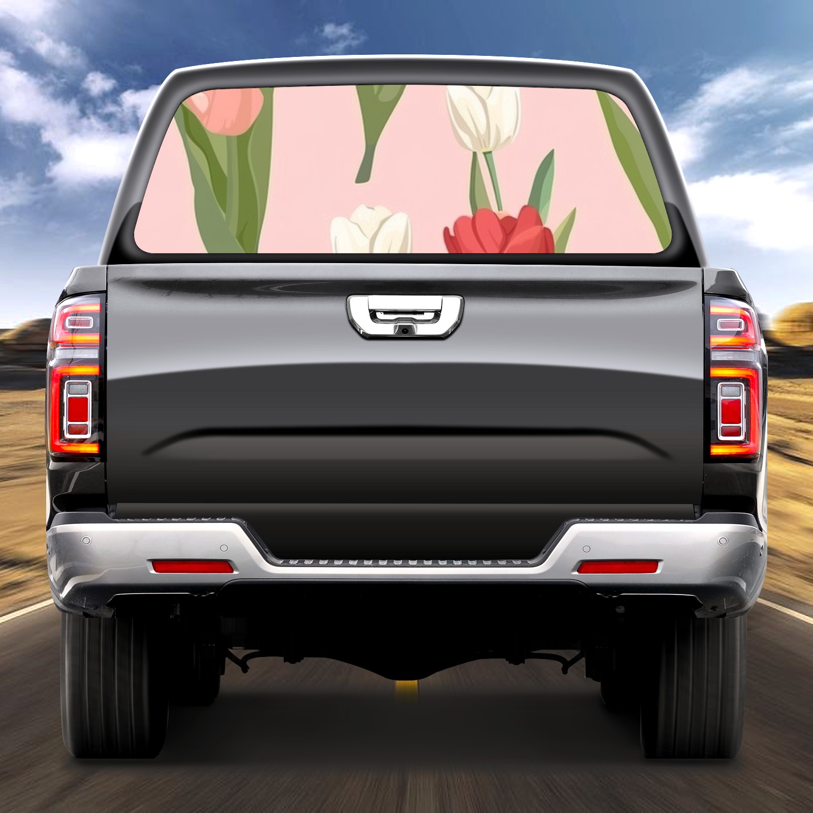 Truck Rear Window Graphics Decals Pickup Trucks Back Window Sticker Full Window Film Decal One Way Visual Waterproof Car Rear Tint Flowers Tulip