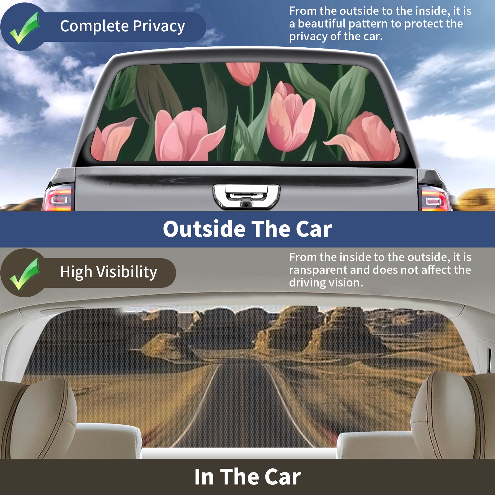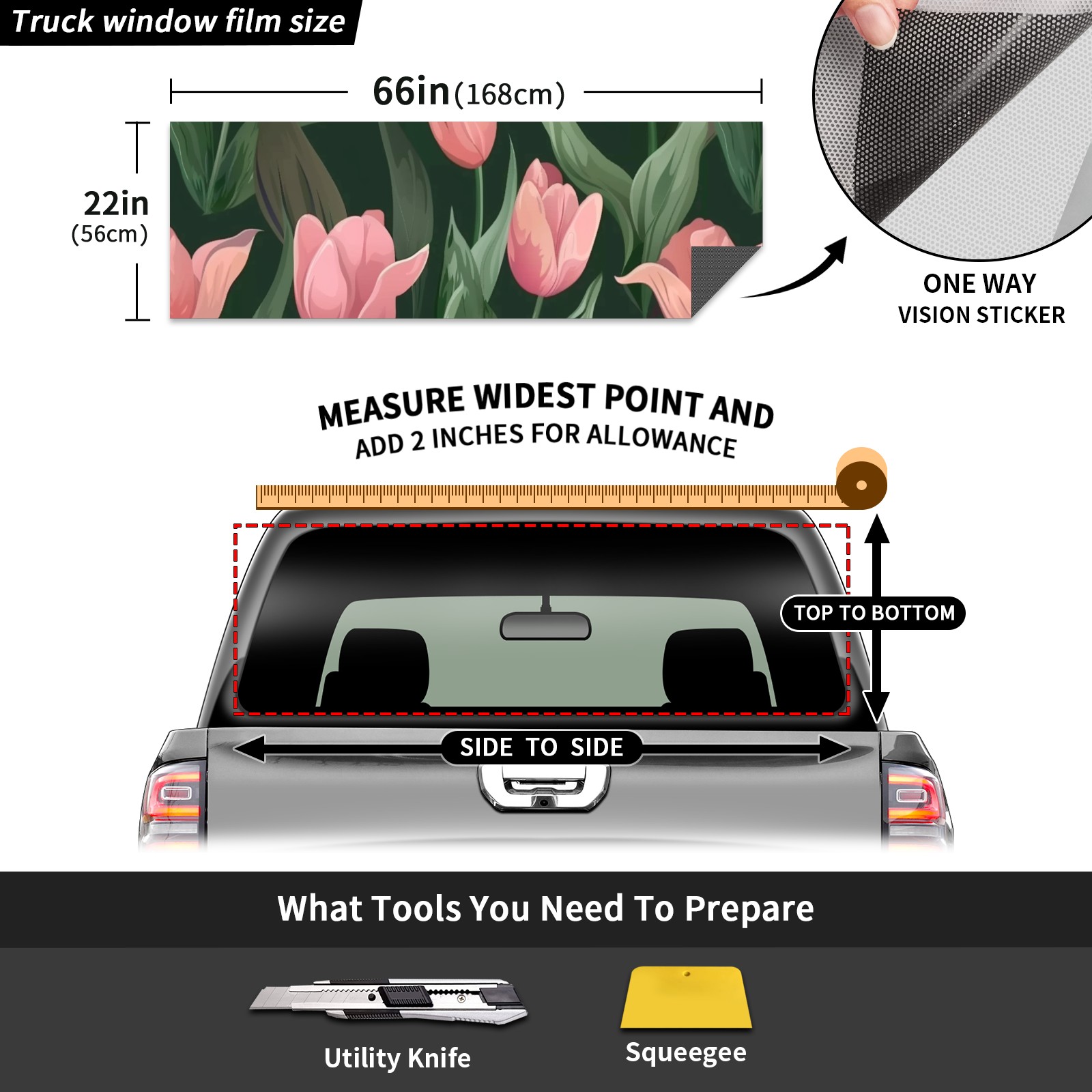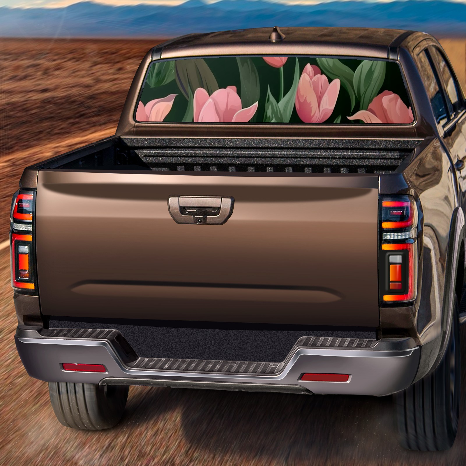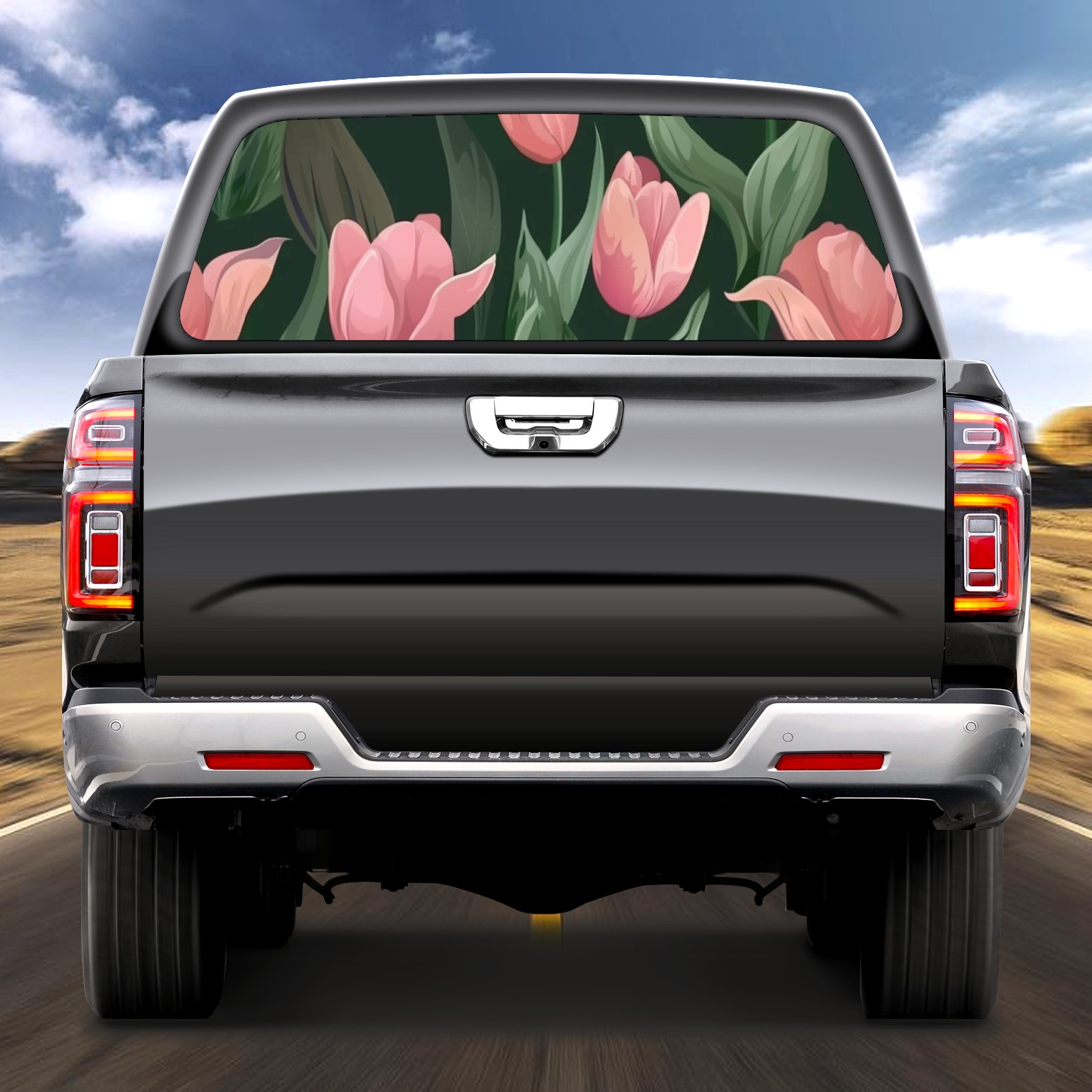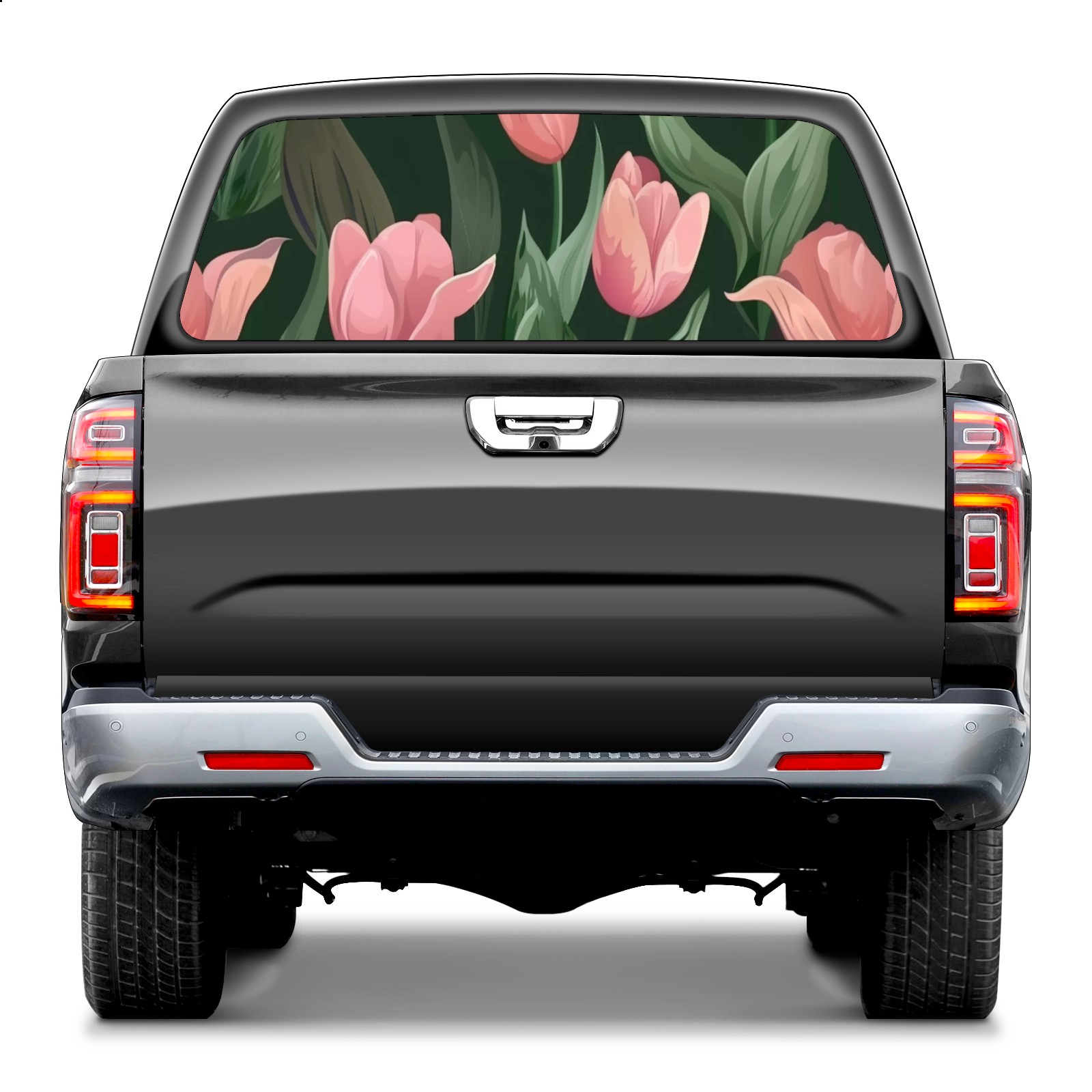 Truck Rear Window Graphics Decals Pickup Trucks Back Window Sticker Full Window Film Decal One Way Visual Waterproof Car Rear Tint Flowers Tulip2