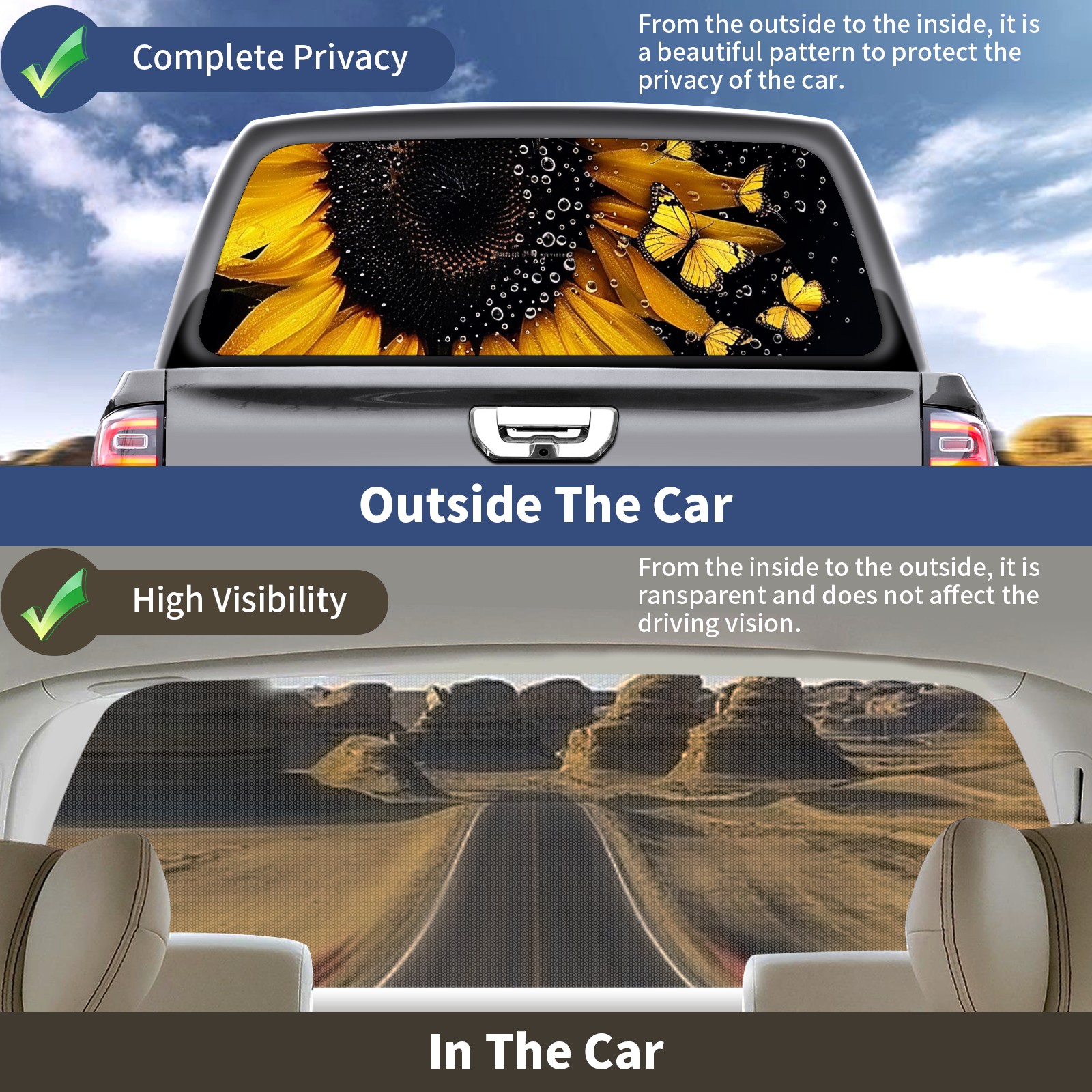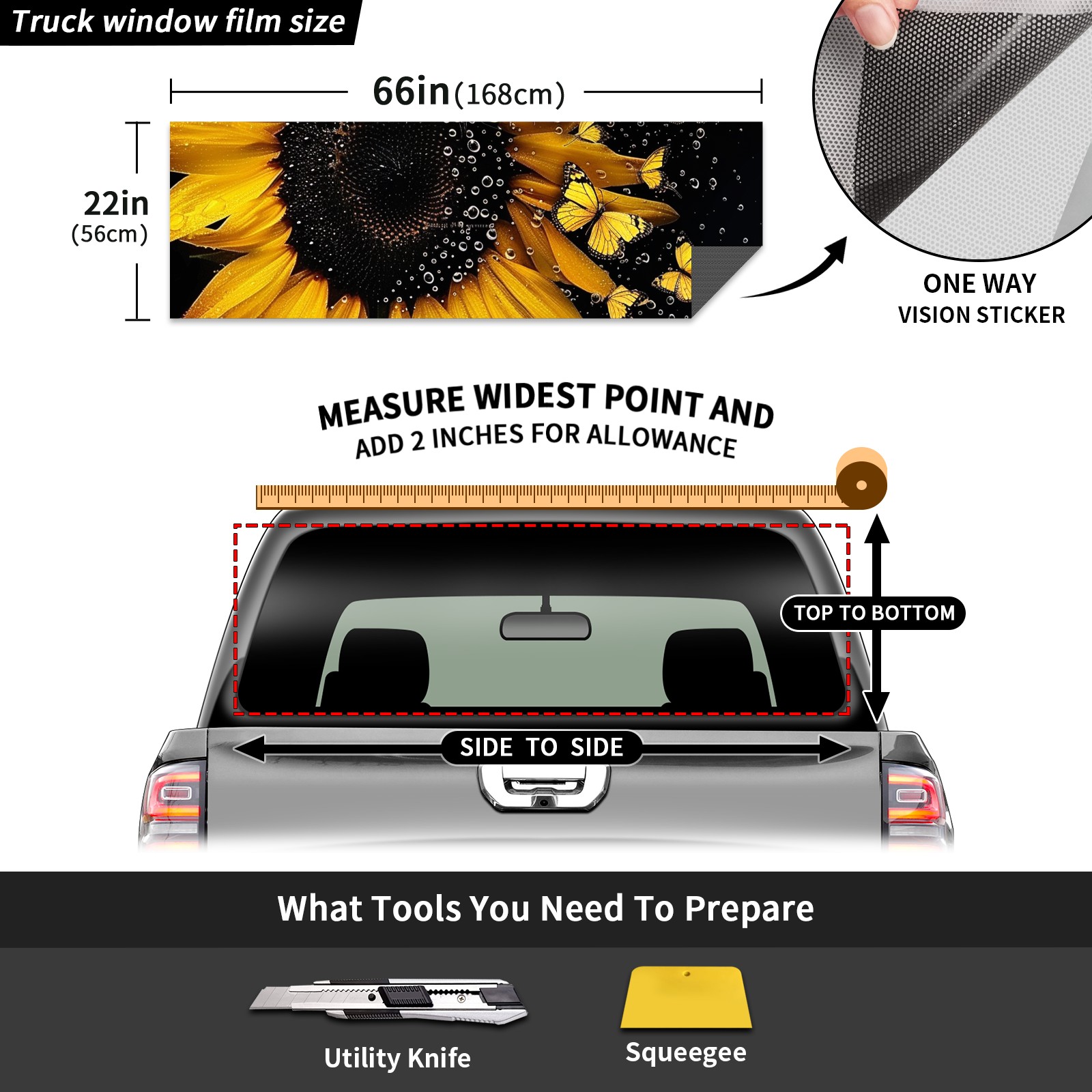 Truck Rear Window Graphics Decals Pickup Trucks Back Window Sticker Full Window Film Decal One Way Visual Waterproof Car Rear Tint Daisy56