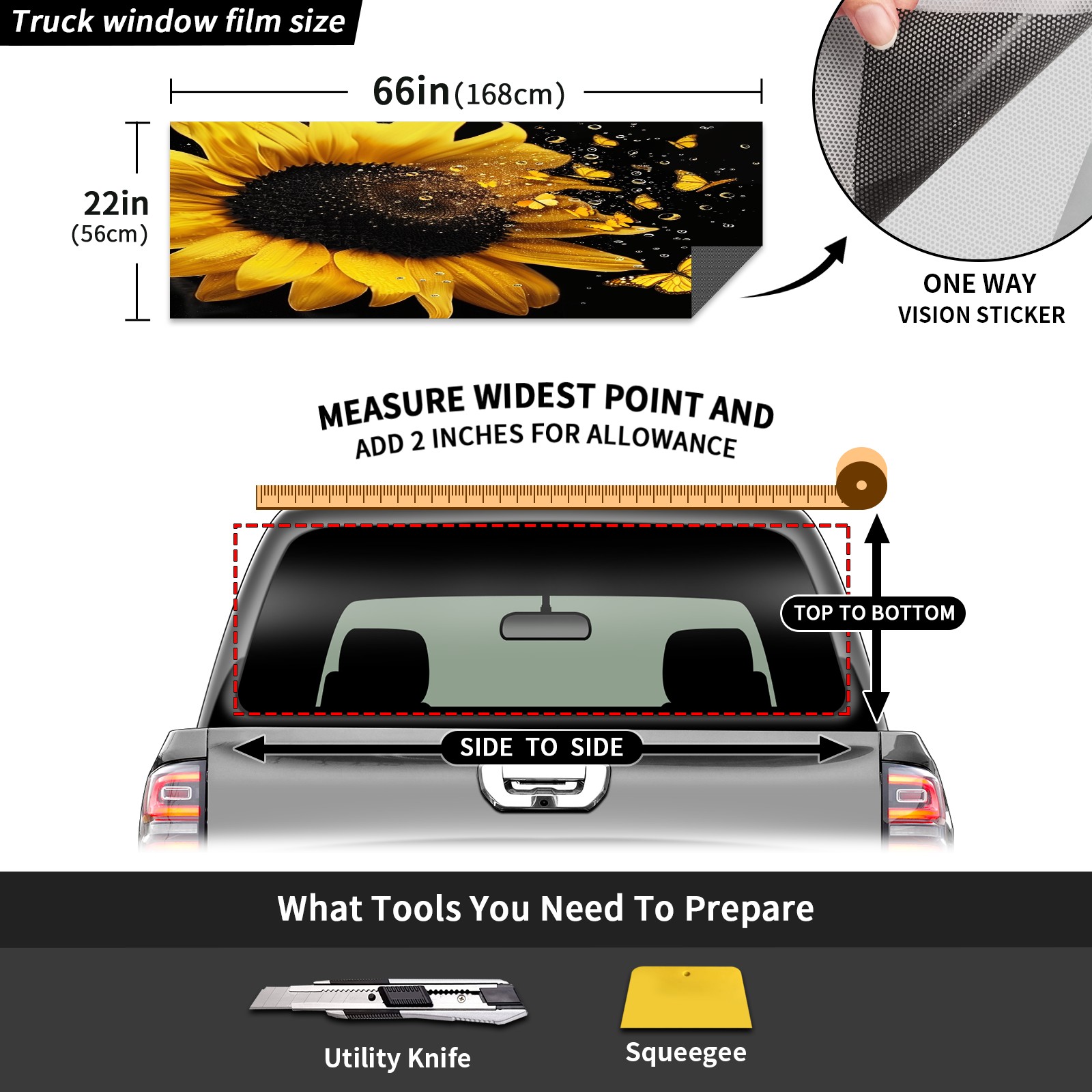 Truck Rear Window Graphics Decals Pickup Trucks Back Window Sticker Full Window Film Decal One Way Visual Waterproof Car Rear Tint Daisy78