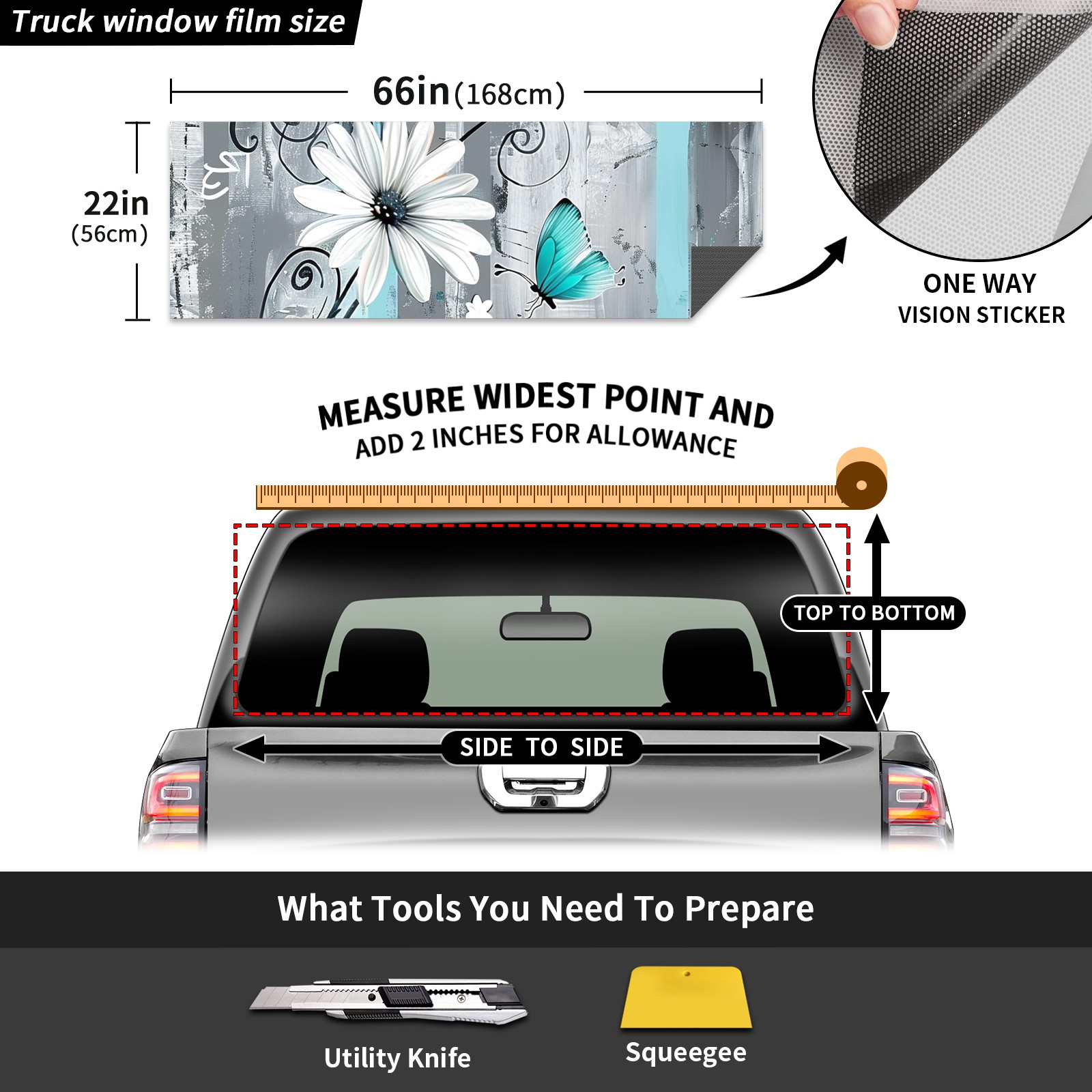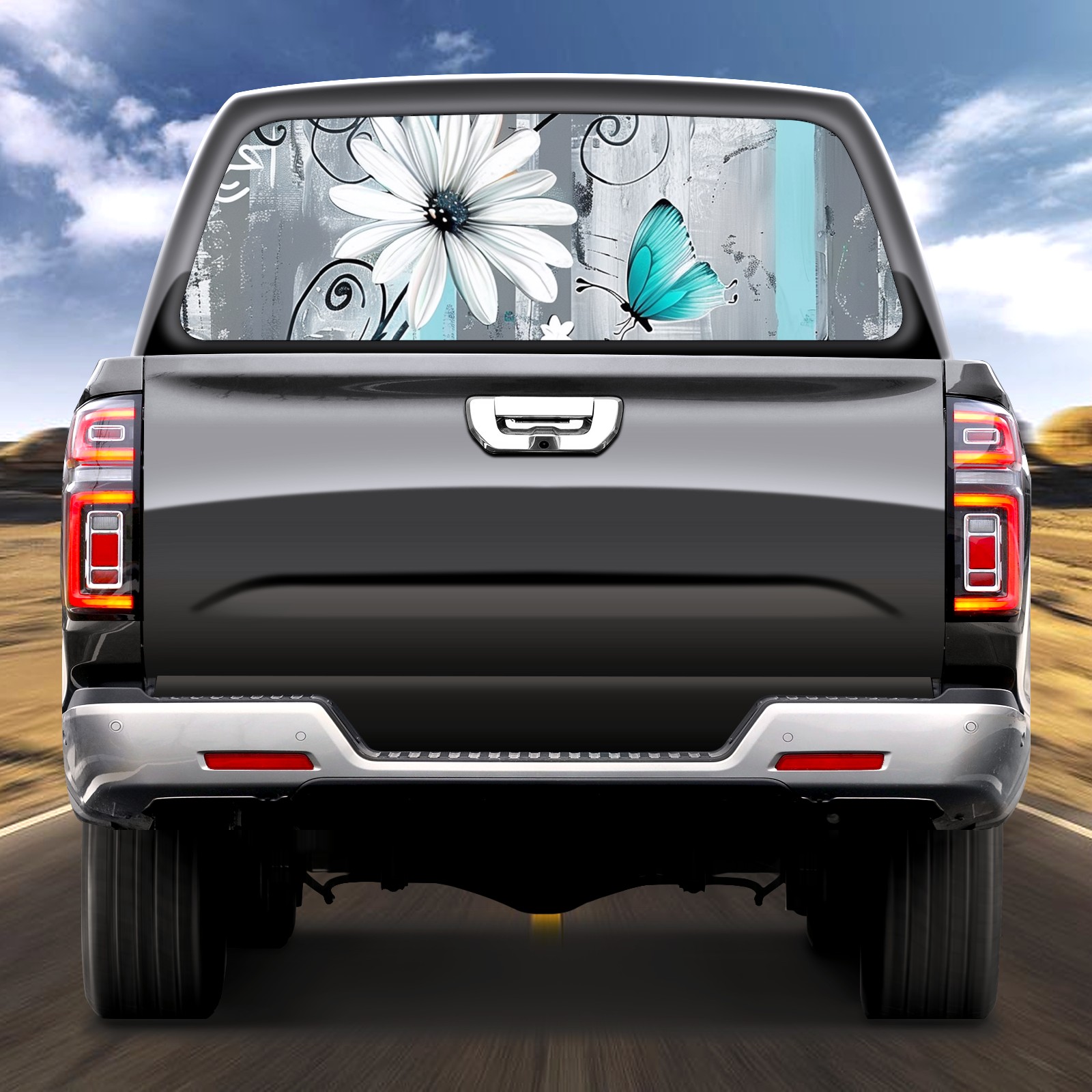 Truck Rear Window Graphics Decals Pickup Trucks Back Window Sticker Full Window Film Decal One Way Visual Waterproof Car Rear Tint Flowers Tree