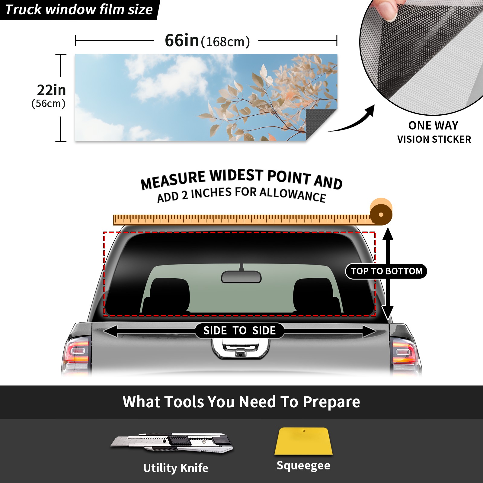 Truck Rear Window Graphics Decals Pickup Trucks Back Window Sticker Full Window Film Decal One Way Visual Waterproof Car Rear Tint Sky Leaves