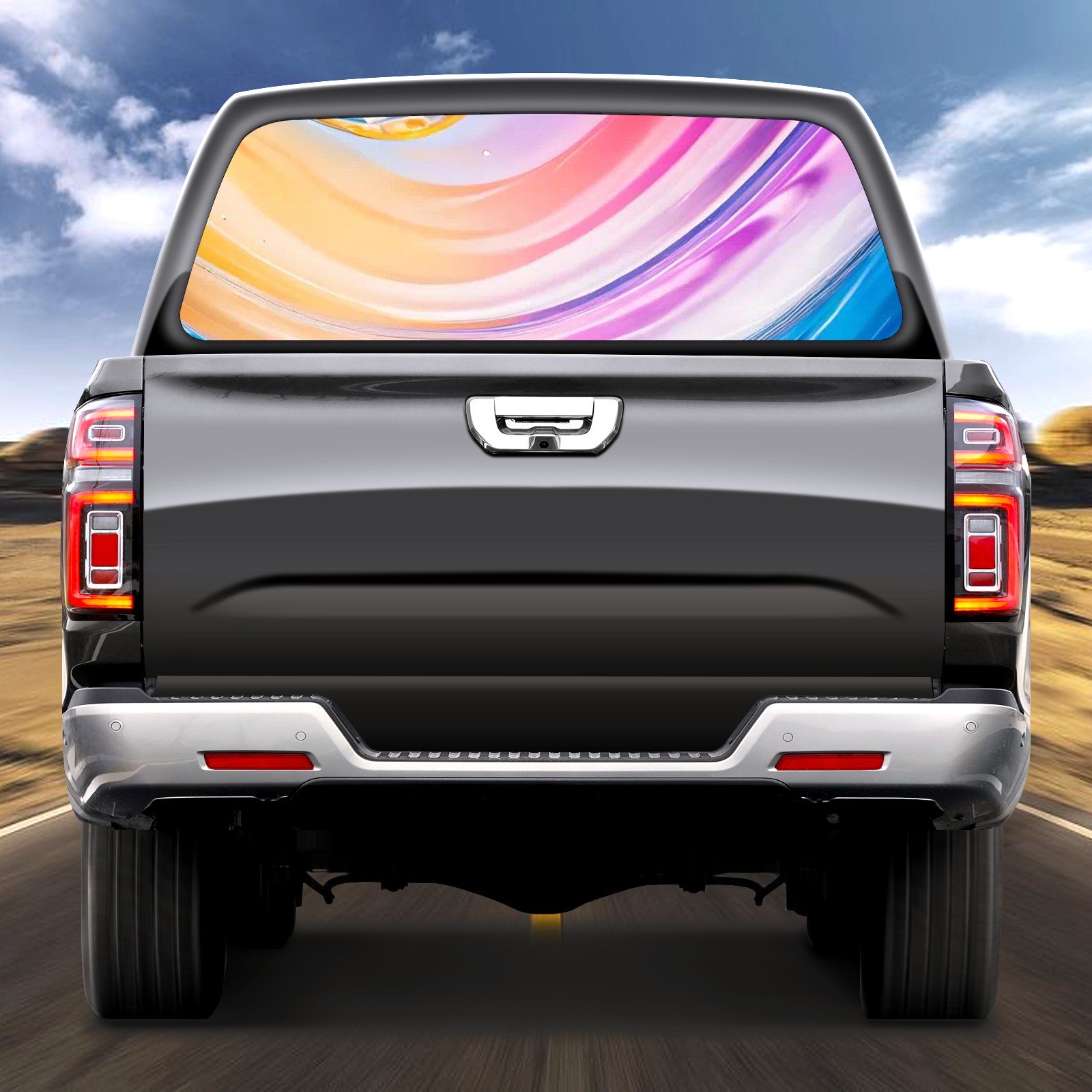 Truck Rear Window Graphics Decals Pickup Trucks Back Window Sticker Full Window Film Decal One Way Visual Waterproof Car Rear Tint Blue Water Wave