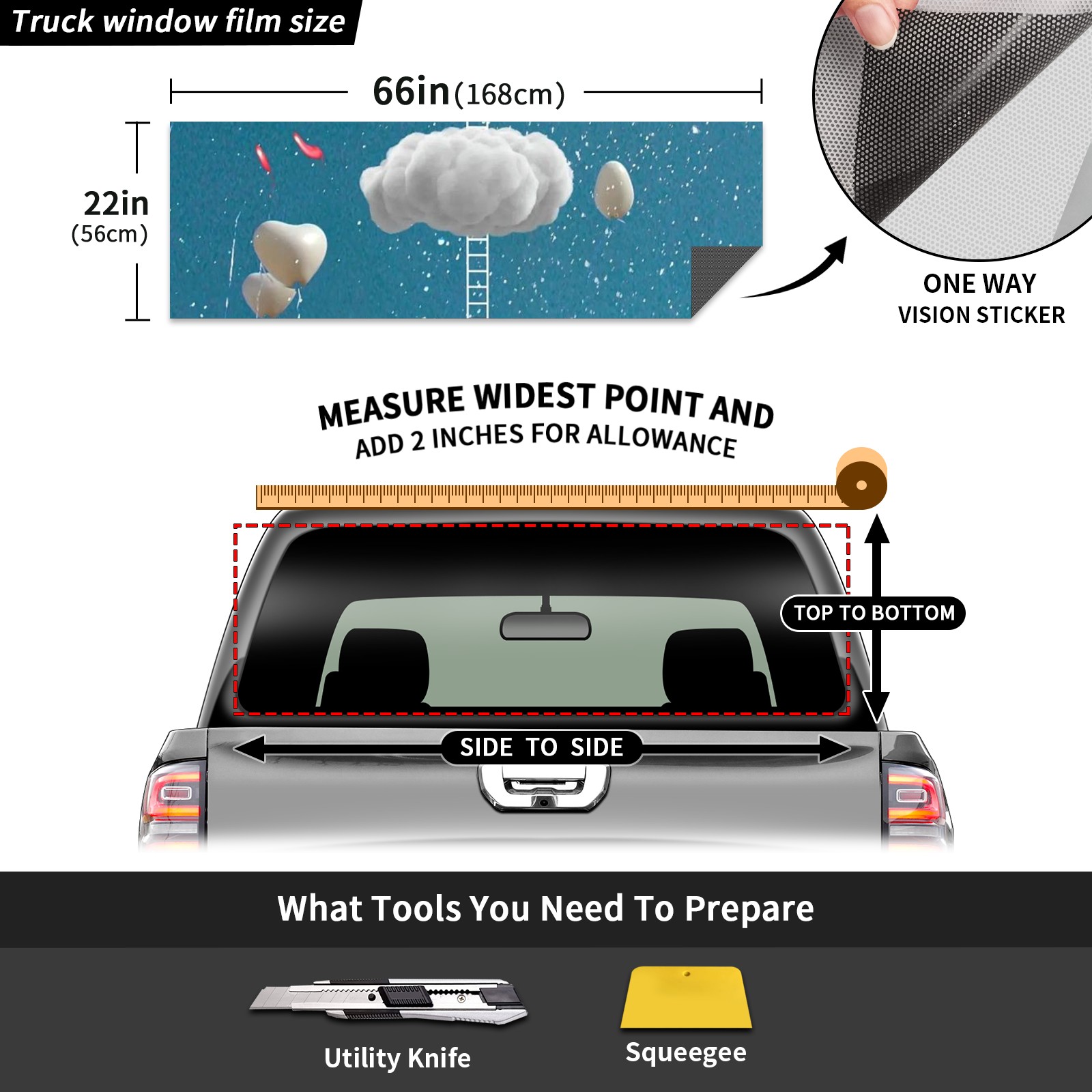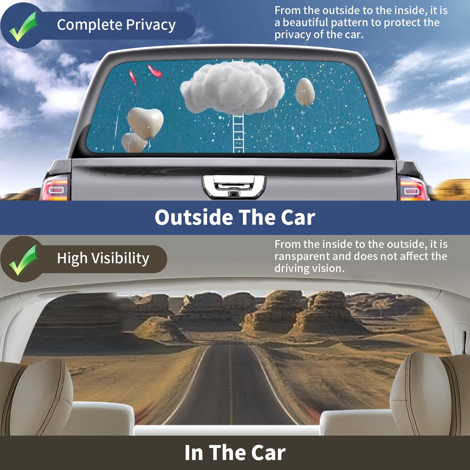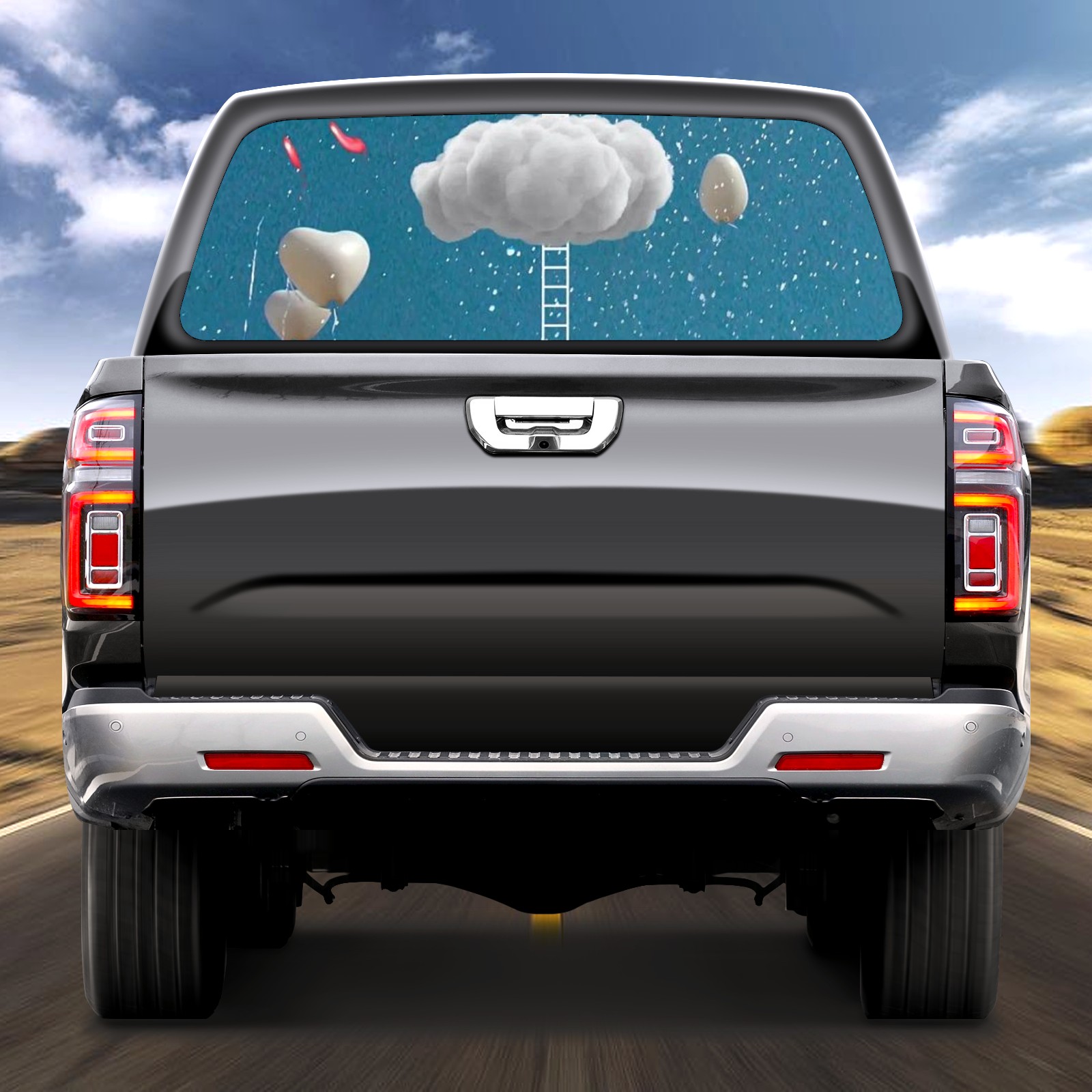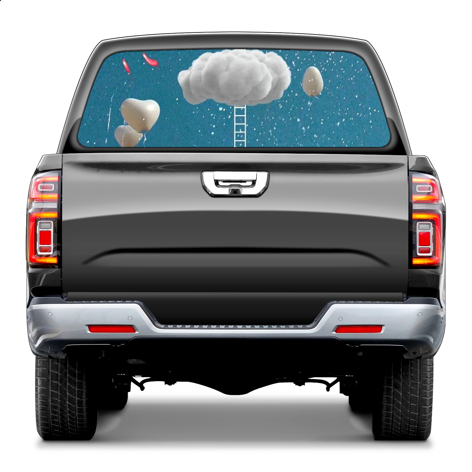 Truck Rear Window Graphics Decals Pickup Trucks Back Window Sticker Full Window Film Decal One Way Visual Waterproof Car Rear Tint Heart Cloud
