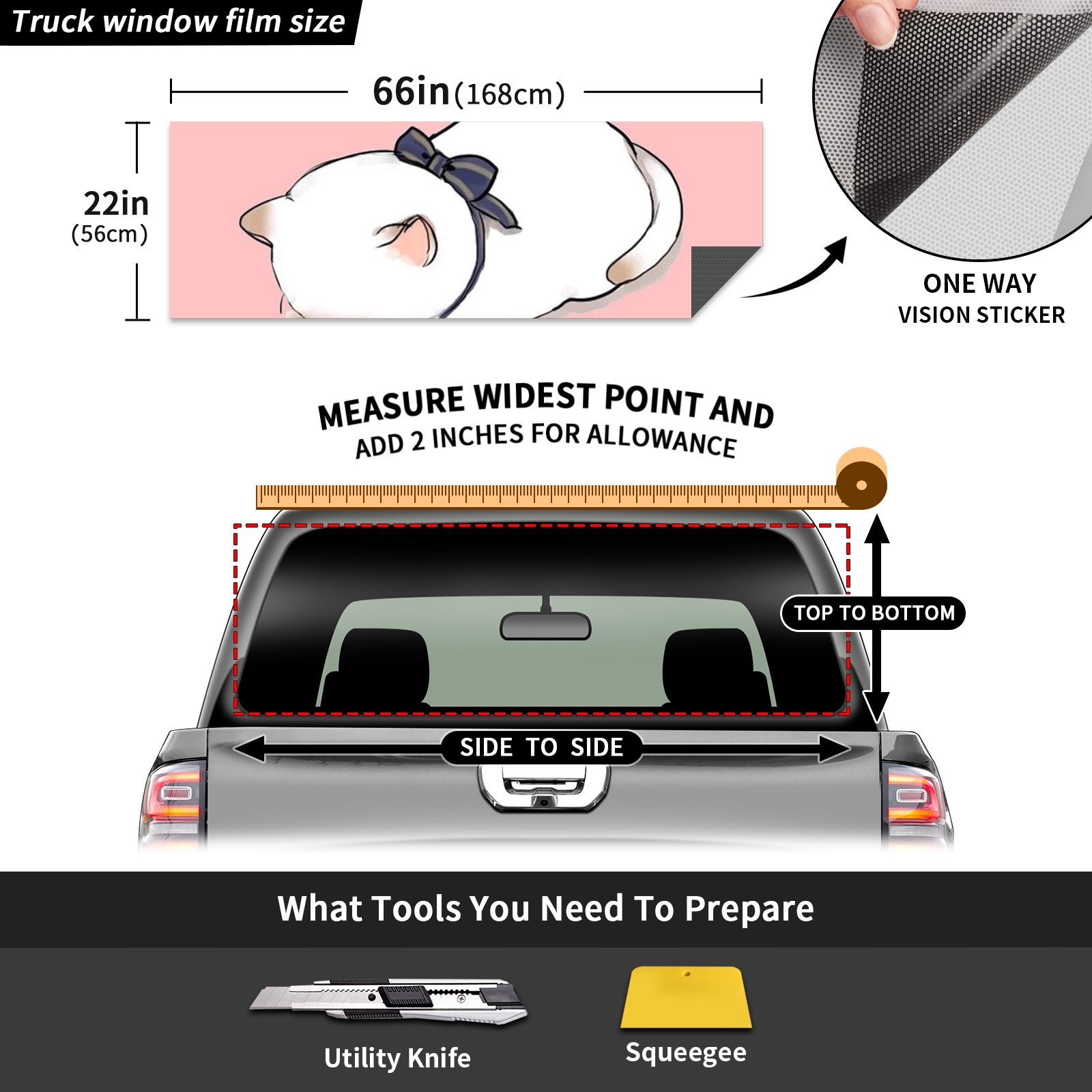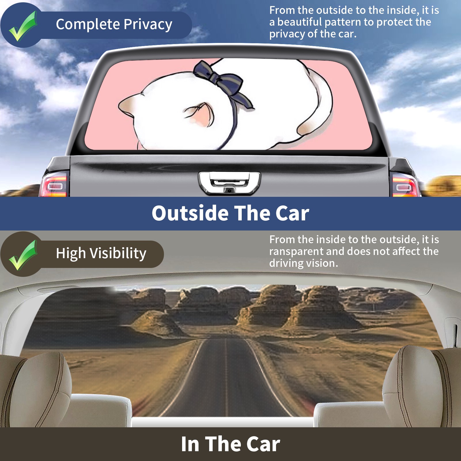 Truck Rear Window Graphics Decals Pickup Trucks Back Window Sticker Full Window Film Decal One Way Visual Waterproof Car Rear Tint Crying Cat Pink