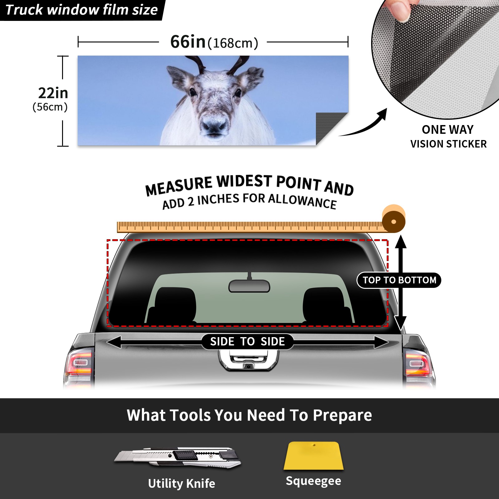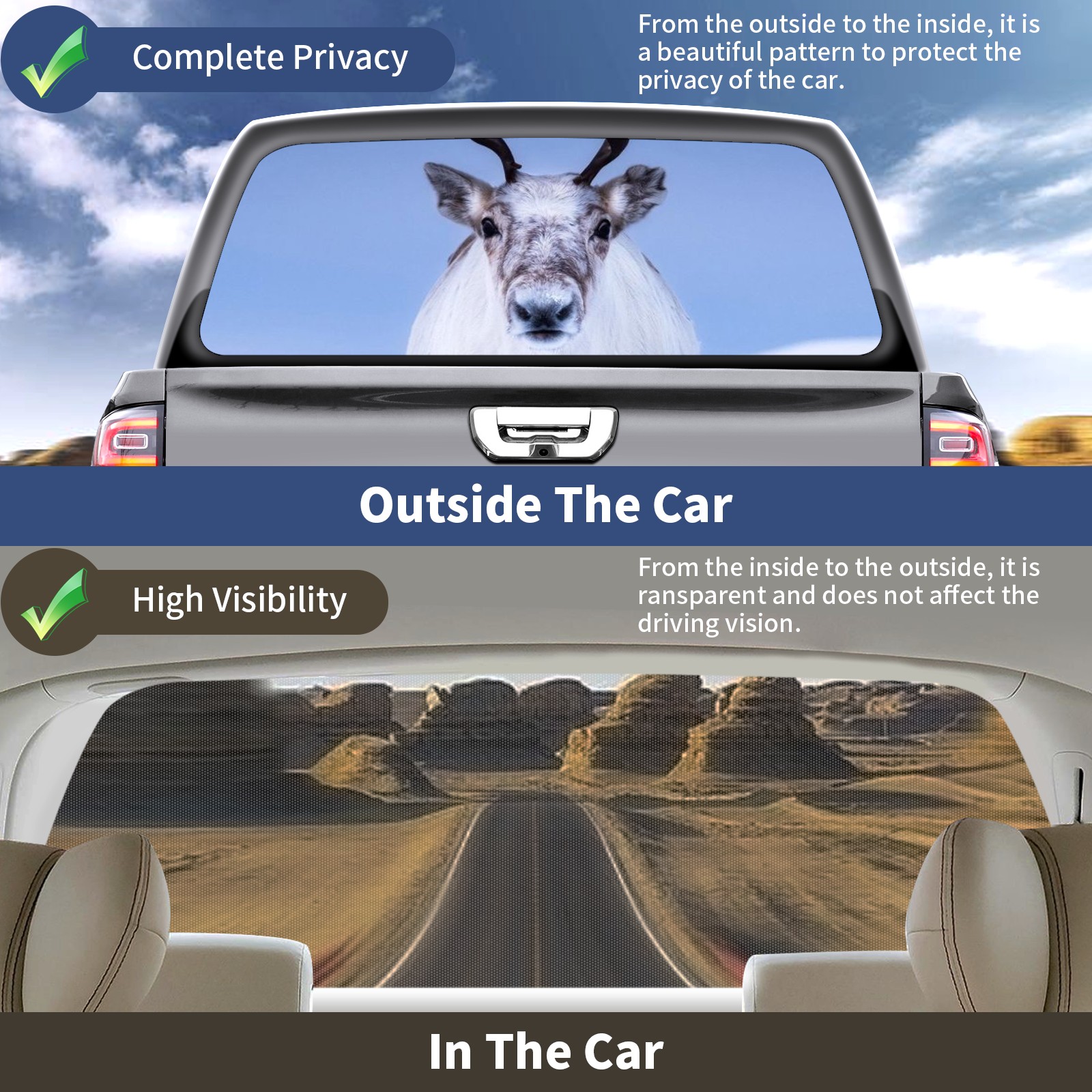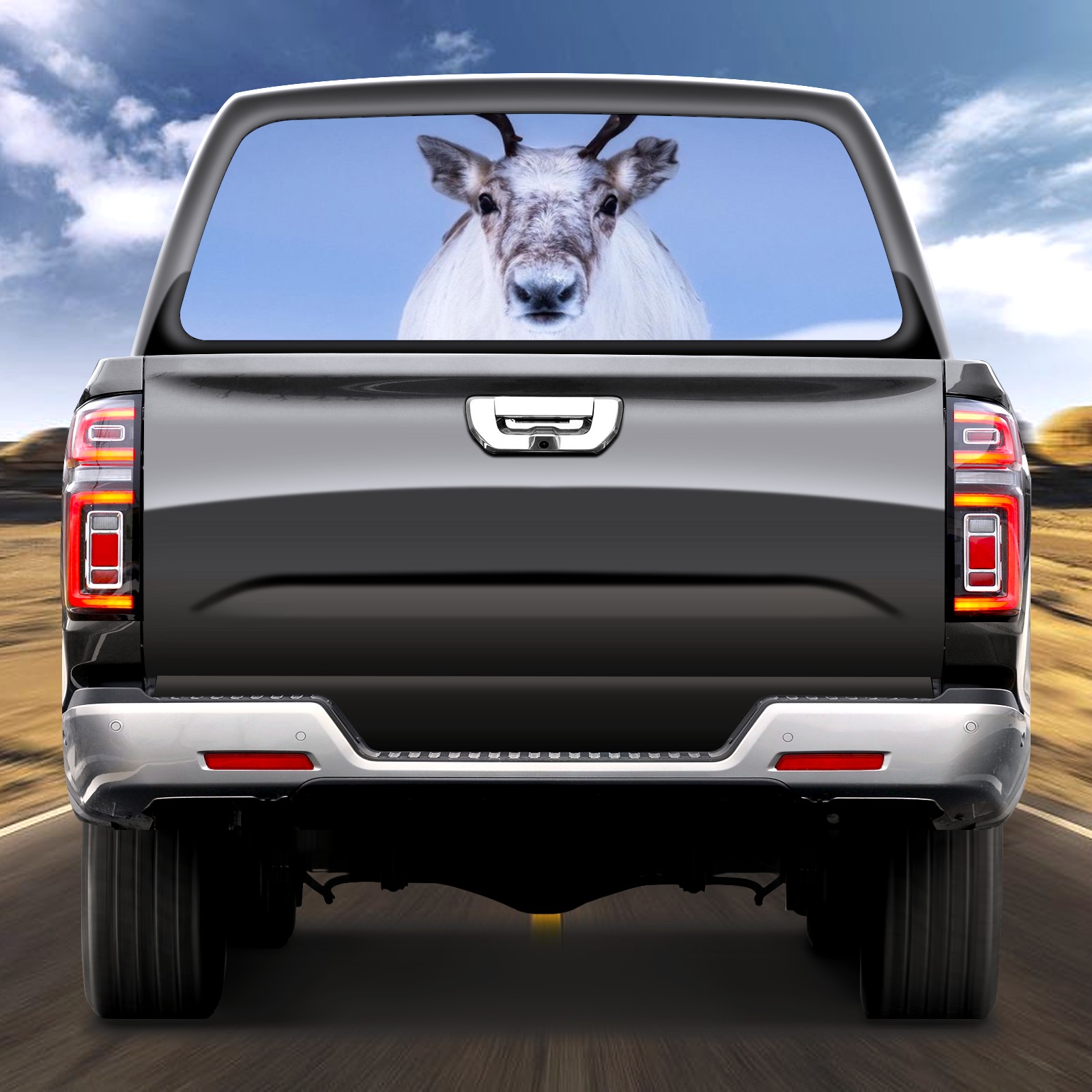 Truck Rear Window Graphics Decals Pickup Trucks Back Window Sticker Full Window Film Decal One Way Visual Waterproof Car Rear Tint Reindeer