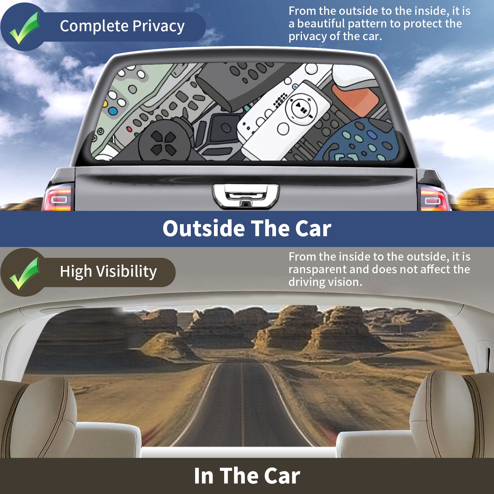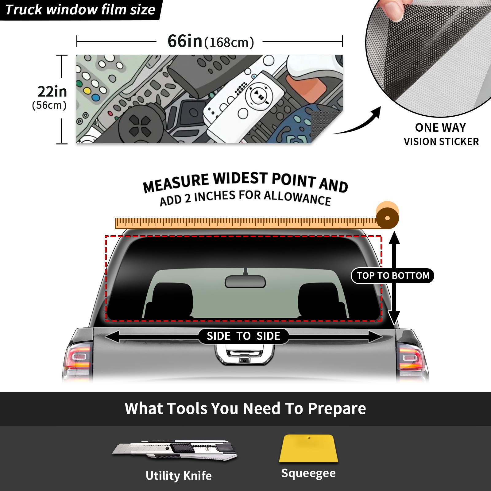 Truck Rear Window Graphics Decals Pickup Trucks Back Window Sticker Full Window Film Decal One Way Visual Waterproof Car Rear Tint Remote Control