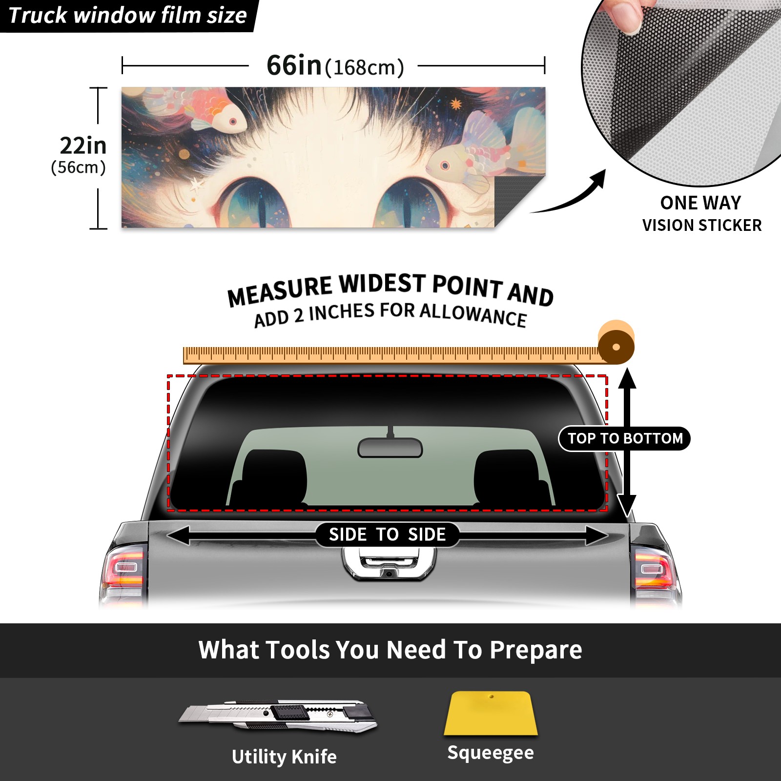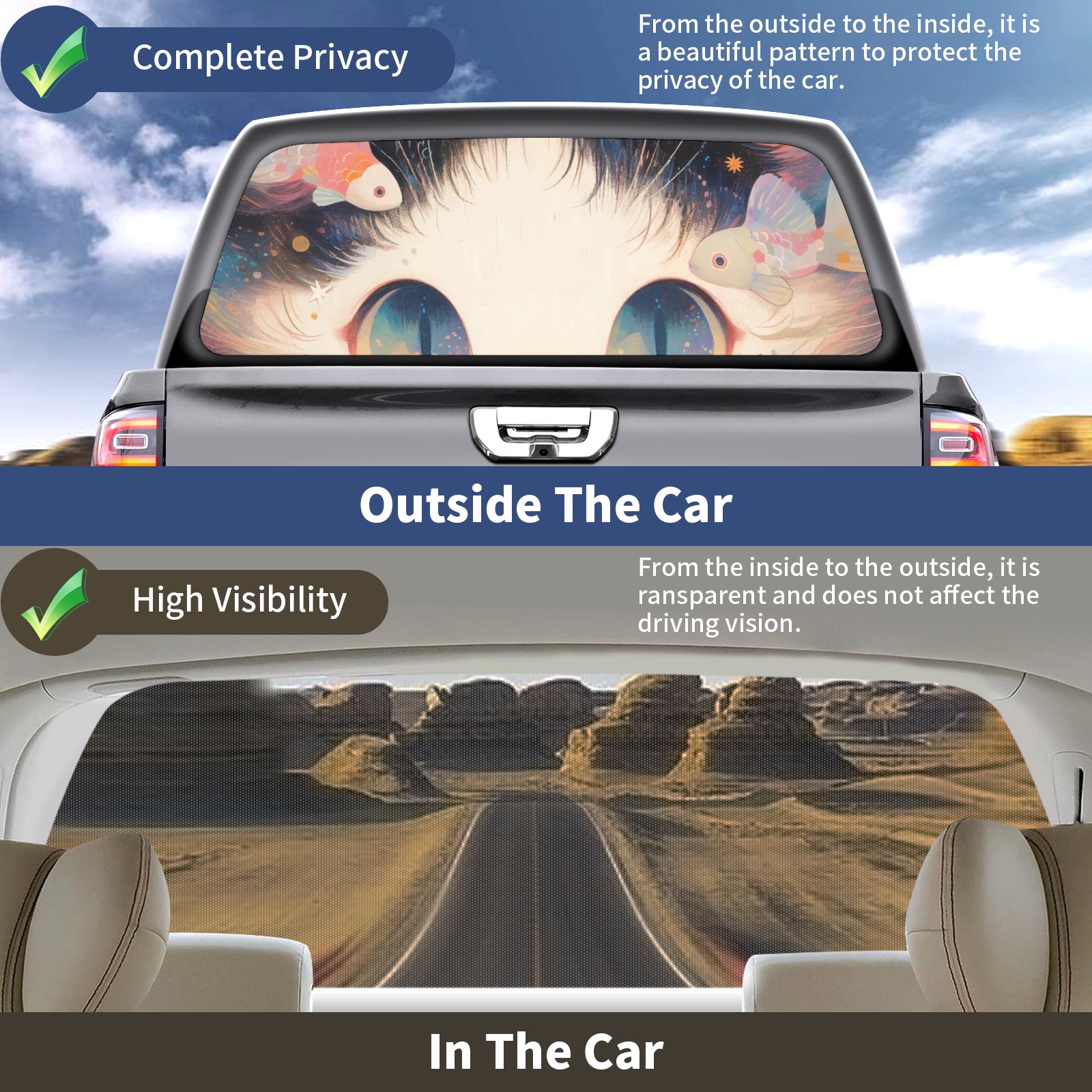 Truck Rear Window Graphics Decals Pickup Trucks Back Window Sticker Full Window Film Decal One Way Visual Waterproof Car Rear Tint Ragdoll