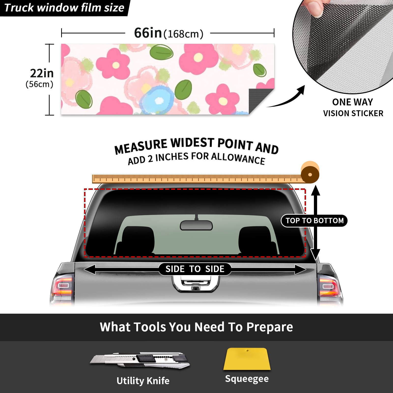 Truck Rear Window Graphics Decals Pickup Trucks Back Window Sticker Full Window Film Decal One Way Visual Waterproof Car Rear Tint Flower Love