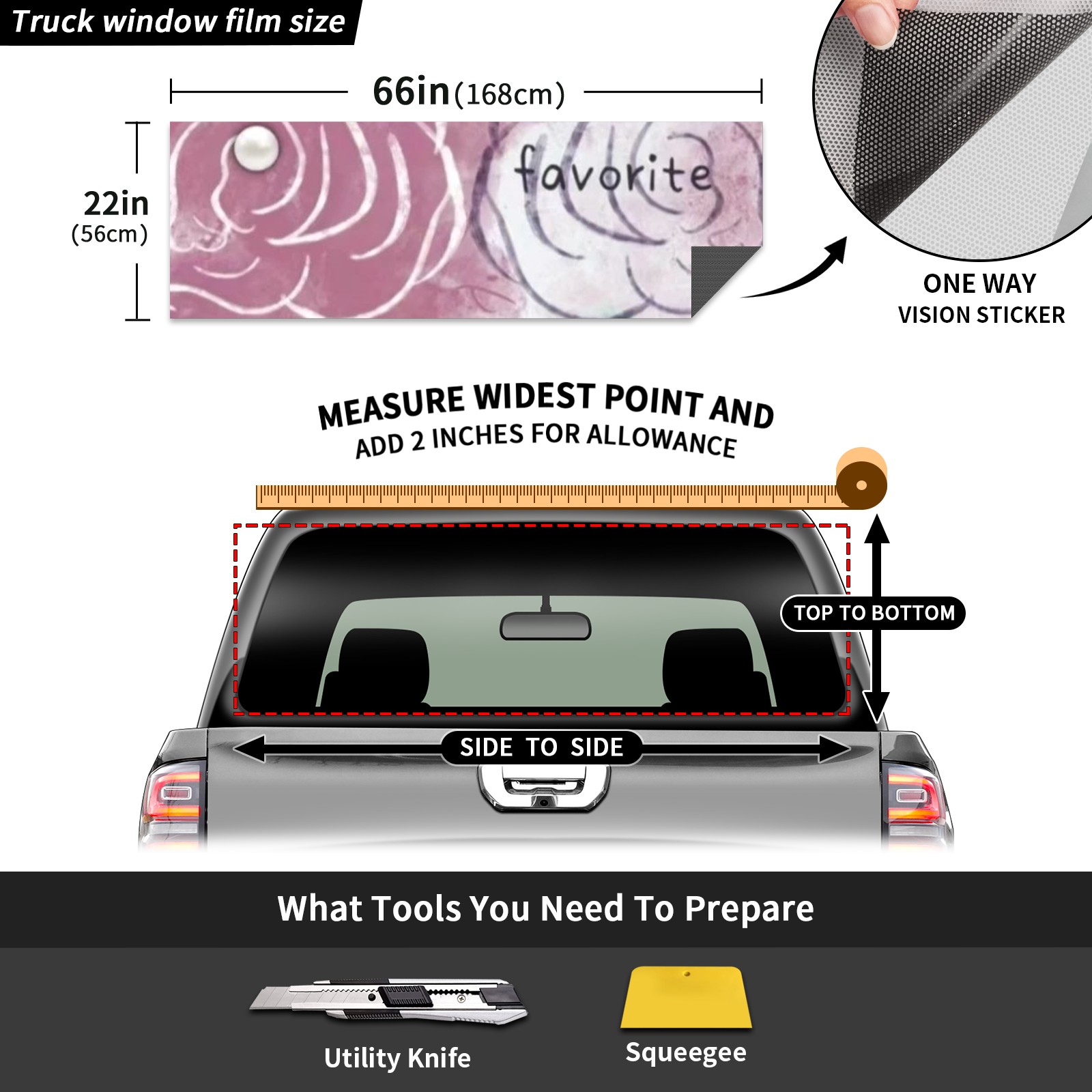 Truck Rear Window Graphics Decals Pickup Trucks Back Window Sticker Full Window Film Decal One Way Visual Waterproof Car Rear Tint Flower