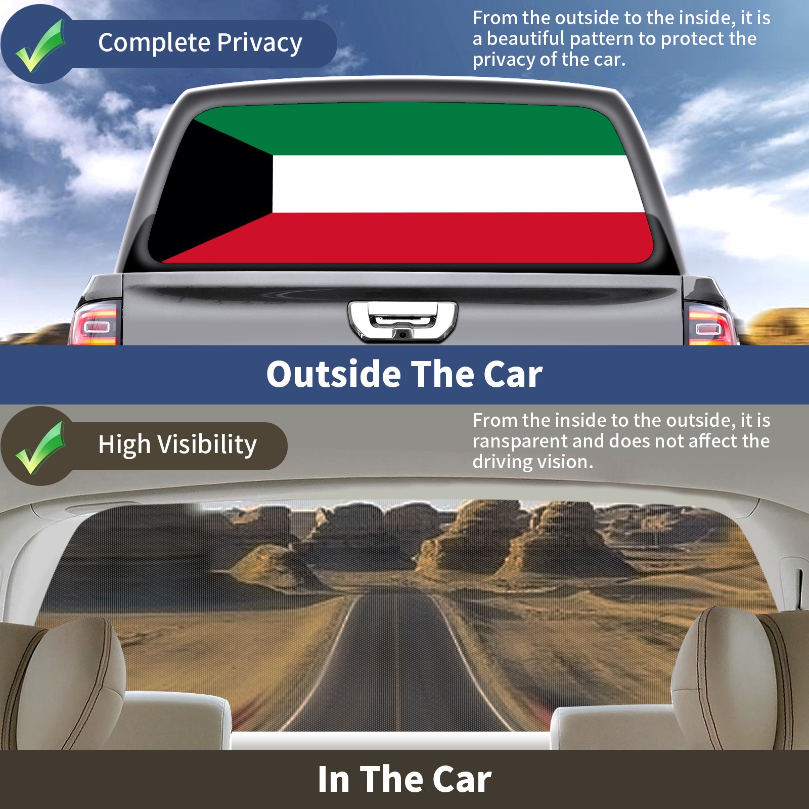 • </b>Window film one-way light transmission Protect your privacy while allowing you to enjoy the scenery outside your window!</b> <br> </b>●Decals Instructions Usage--Teach You To Use Quickly</b> <br> 1.Clean the window galss thoroughly <br> 2.Use a Squeegee or other card to scrape off the remaining water and bumps(don't use too much force) <br> 3.Remove the film's back cover .Use a knife to cut out a suitable contour and wipe off the remaining water(you can also use a hair dryer to blow dry) <br> 4.Find a suitable location and stick a sticker <br> </b>●Unique Design</b> <br> ZXIVGOQFR Back window stickers ‘s smart looking and unique cute design makes your vehicle special under sunshine. Makes your car easy to identify, perfect for finding your car in crowded parking lots and garages.funny visor reflects personality and attitude. <br> </b>●Perfect Gift for all Drivers<br></b> We create all the gifts and accessories you only need to choose what you like. Get full tailgate wraps, rear window decals, and everything you need to make your pickup truck look awesome. <br> </b> Decorate Your Pickup Truck With Rear Window Decal Today!</b>