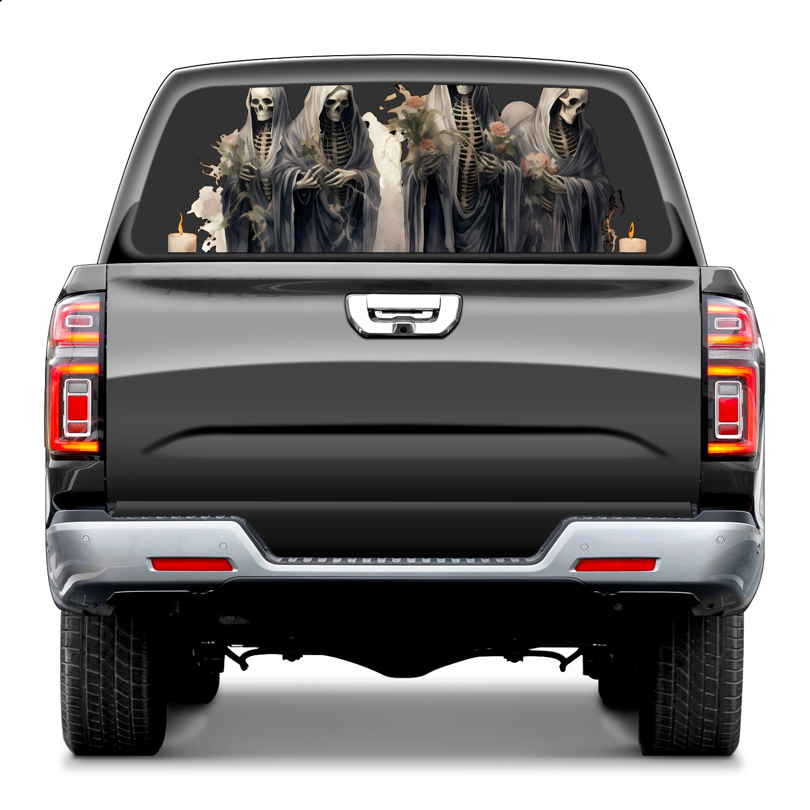 Truck Rear Window Graphics Decals Pickup Trucks Back Window Sticker Full Window Film Decal One Way Visual Waterproof Car Rear Tint Skull (13)