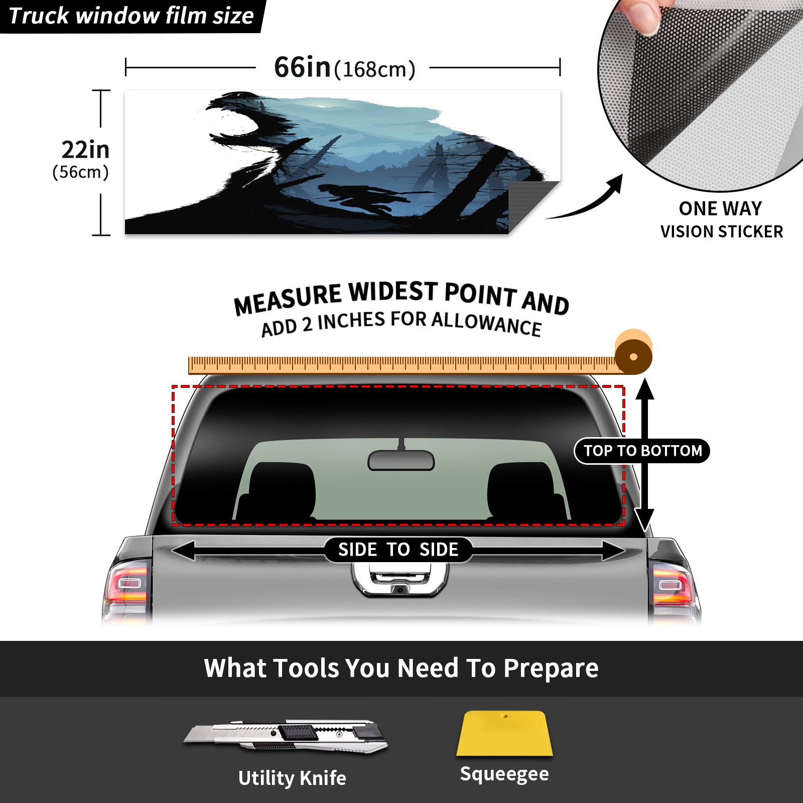 </b>Window film one-way light transmission Protect your privacy while allowing you to enjoy the scenery outside your window!</b> <br> </b>●Decals Instructions Usage--Teach You To Use Quickly</b> <br> 1.Clean the window galss thoroughly <br> 2.Use a Squeegee or other card to scrape off the remaining water and bumps(don't use too much force) <br> 3.Remove the film's back cover .Use a knife to cut out a suitable contour and wipe off the remaining water(you can also use a hair dryer to blow dry) <br> 4.Find a suitable location and stick a sticker <br> </b>●Unique Design</b> <br> ZXIVGOQFR Back window stickers ‘s smart looking and unique cute design makes your vehicle special under sunshine. Makes your car easy to identify, perfect for finding your car in crowded parking lots and garages.funny visor reflects personality and attitude. <br> </b>●Perfect Gift for all Drivers<br></b> We create all the gifts and accessories you only need to choose what you like. Get full tailgate wraps, rear window decals, and everything you need to make your pickup truck look awesome. <br> </b> Decorate Your Pickup Truck With Rear Window Decal Today!</b>