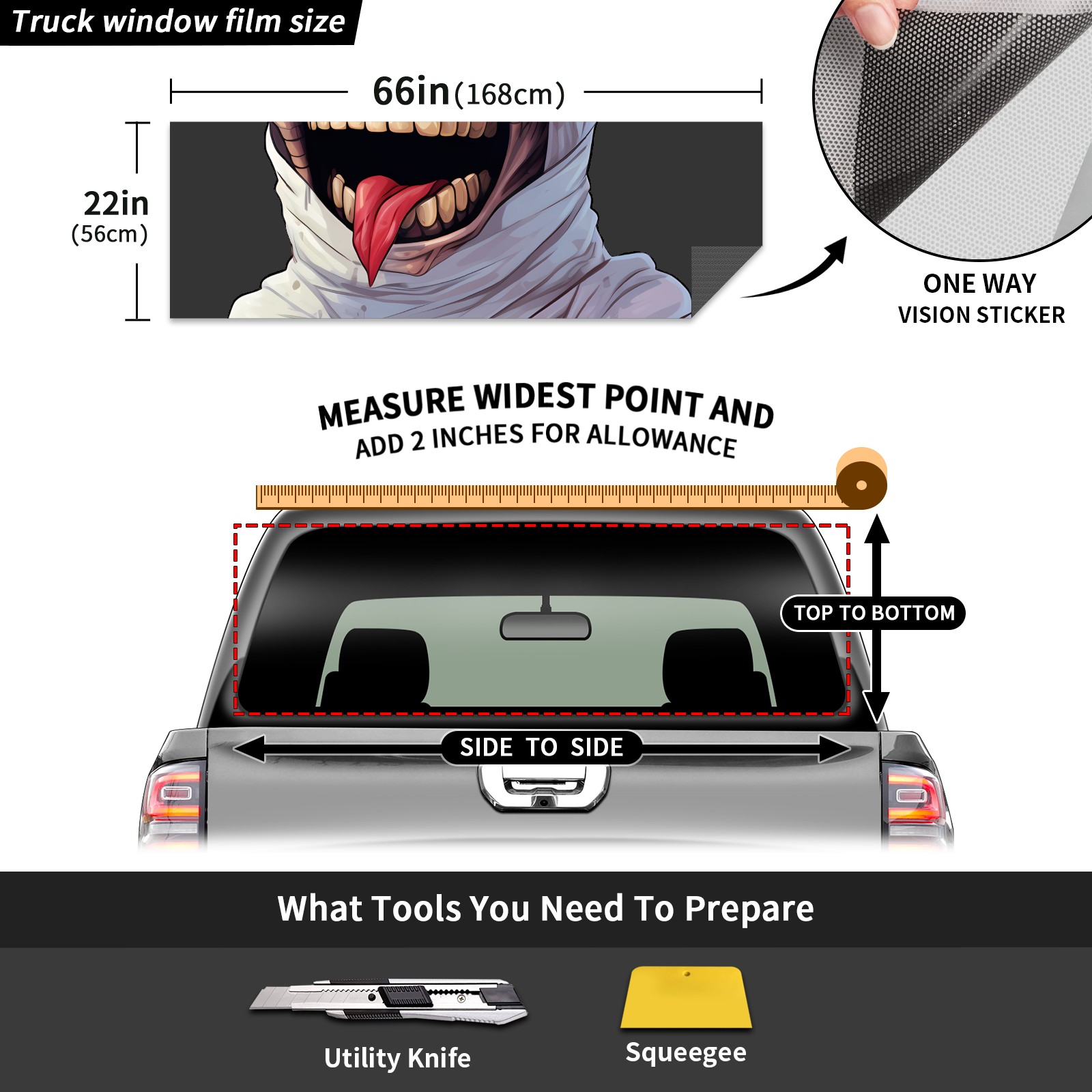 Truck Rear Window Graphics Decals Pickup Trucks Back Window Sticker Full Window Film Decal One Way Visual Waterproof Car Rear Tint Skull (7)