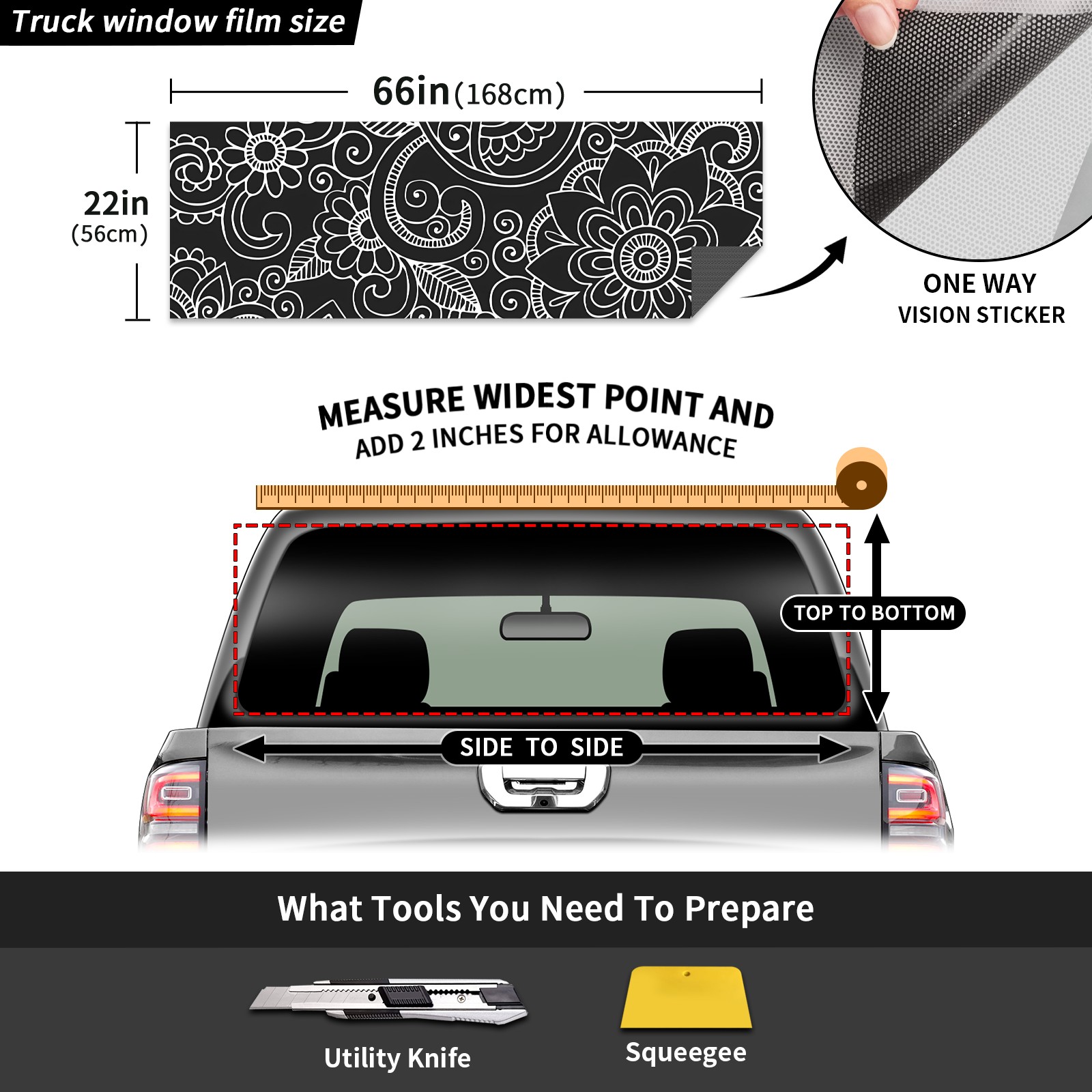 </b>Window film one-way light transmission Protect your privacy while allowing you to enjoy the scenery outside your window!</b> <br> </b>●Decals Instructions Usage--Teach You To Use Quickly</b> <br> 1.Clean the window galss thoroughly <br> 2.Use a Squeegee or other card to scrape off the remaining water and bumps(don't use too much force) <br> 3.Remove the film's back cover .Use a knife to cut out a suitable contour and wipe off the remaining water(you can also use a hair dryer to blow dry) <br> 4.Find a suitable location and stick a sticker <br> </b>●Unique Design</b> <br> ZXIVGOQFR Back window stickers ‘s smart looking and unique cute design makes your vehicle special under sunshine. Makes your car easy to identify, perfect for finding your car in crowded parking lots and garages.funny visor reflects personality and attitude. <br> </b>●Perfect Gift for all Drivers<br></b> We create all the gifts and accessories you only need to choose what you like. Get full tailgate wraps, rear window decals, and everything you need to make your pickup truck look awesome. <br> </b> Decorate Your Pickup Truck With Rear Window Decal Today!</b>