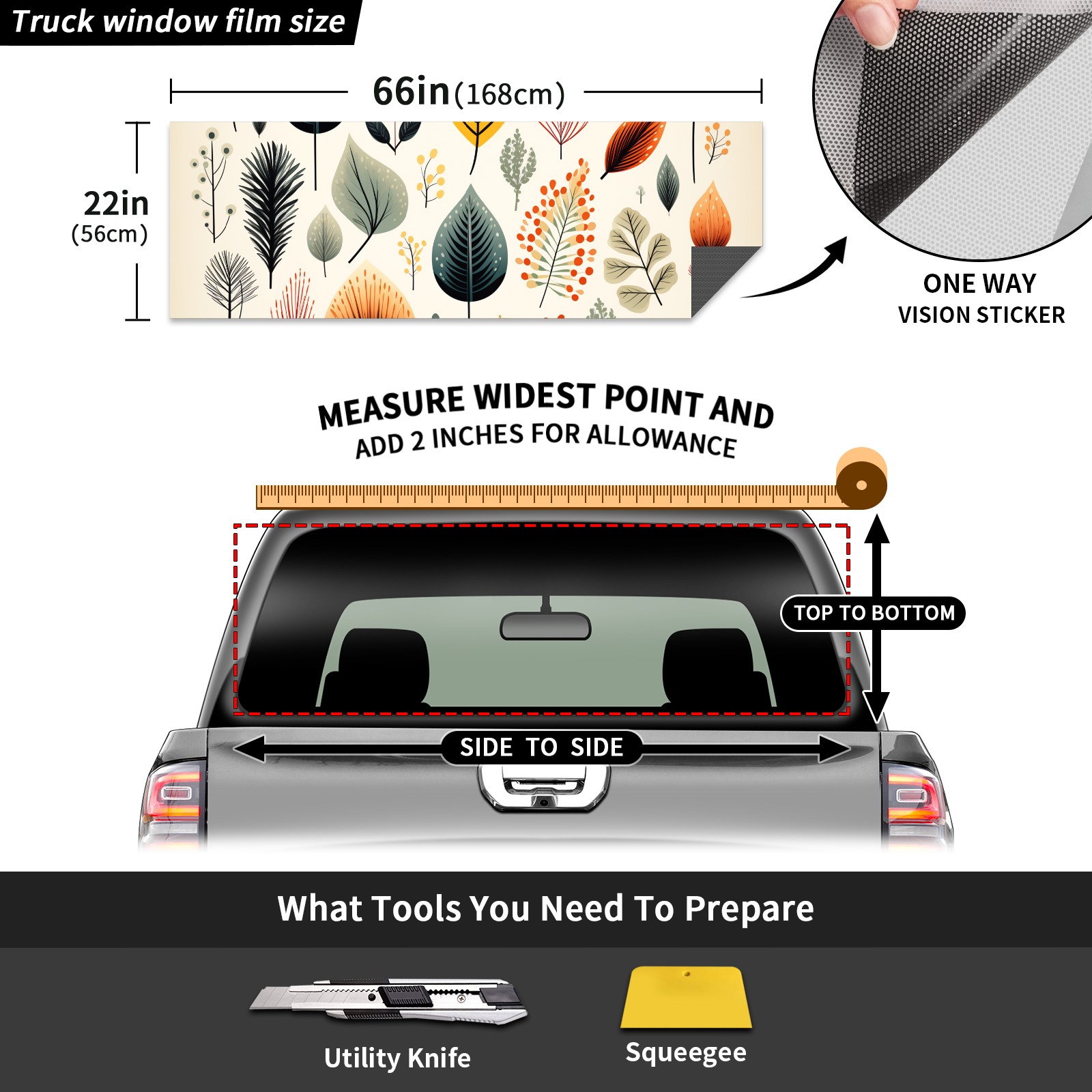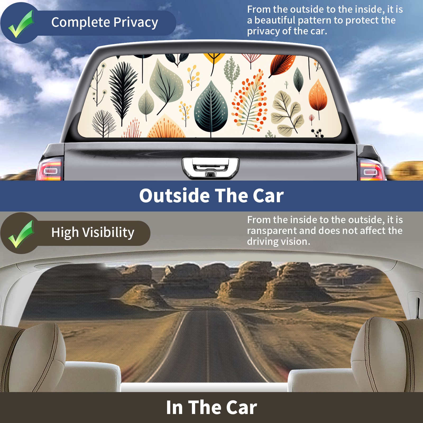 Truck Rear Window Graphics Decals Pickup Trucks Back Window Sticker Full Window Film Decal One Way Visual Waterproof Car Rear Tint Leave