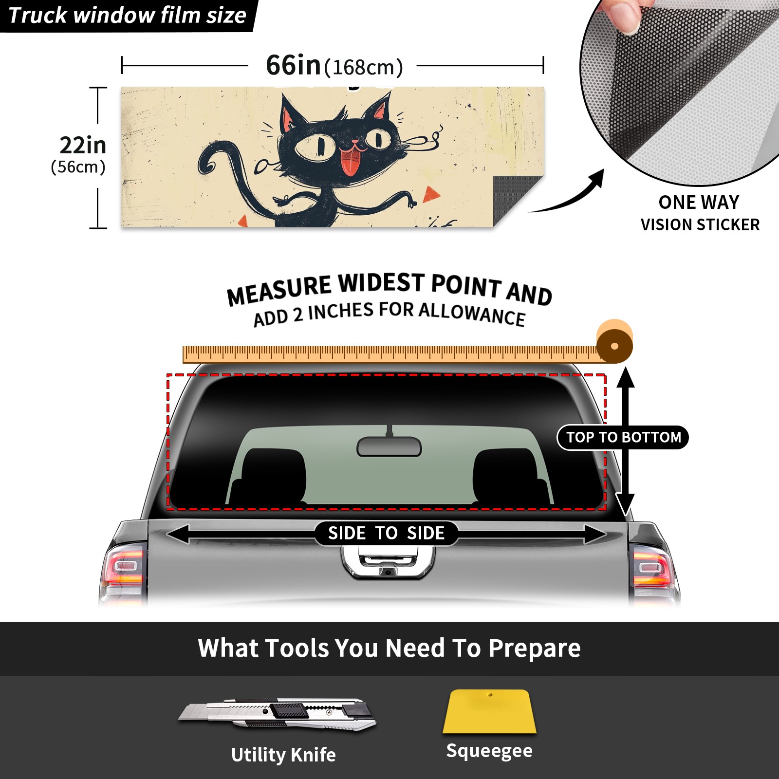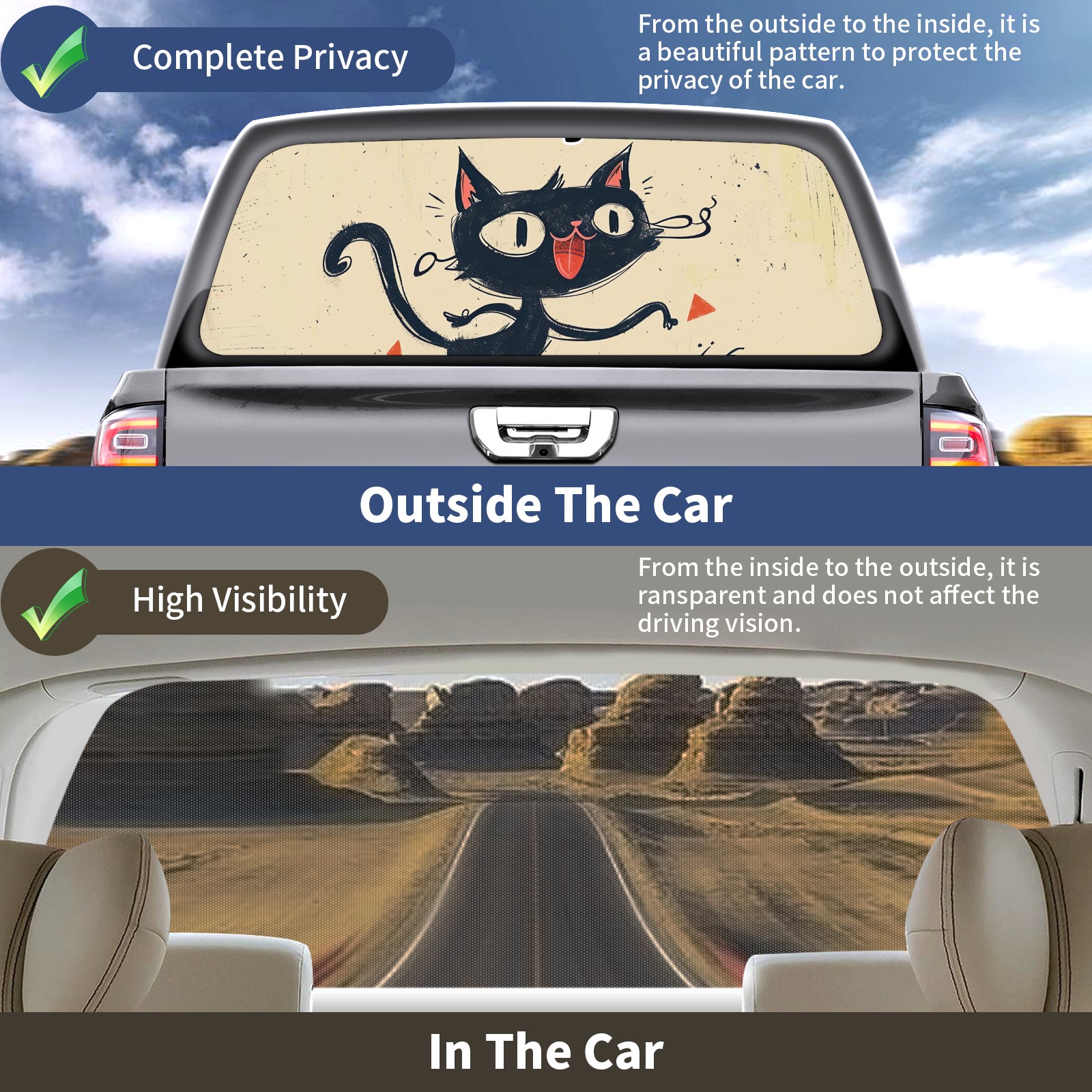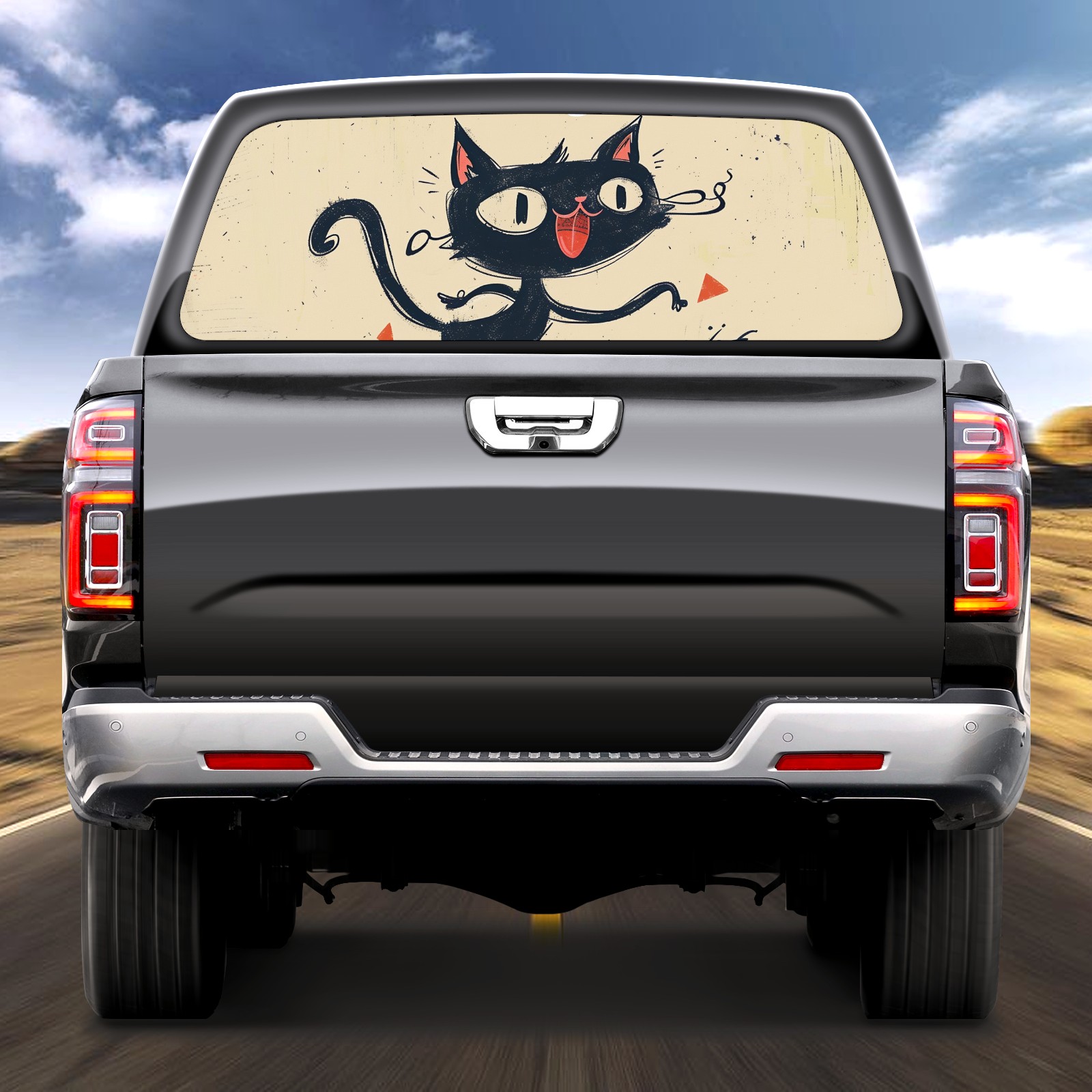Truck Rear Window Graphics Decals Pickup Trucks Back Window Sticker Full Window Film Decal One Way Visual Waterproof Car Rear Tint Black Cat
