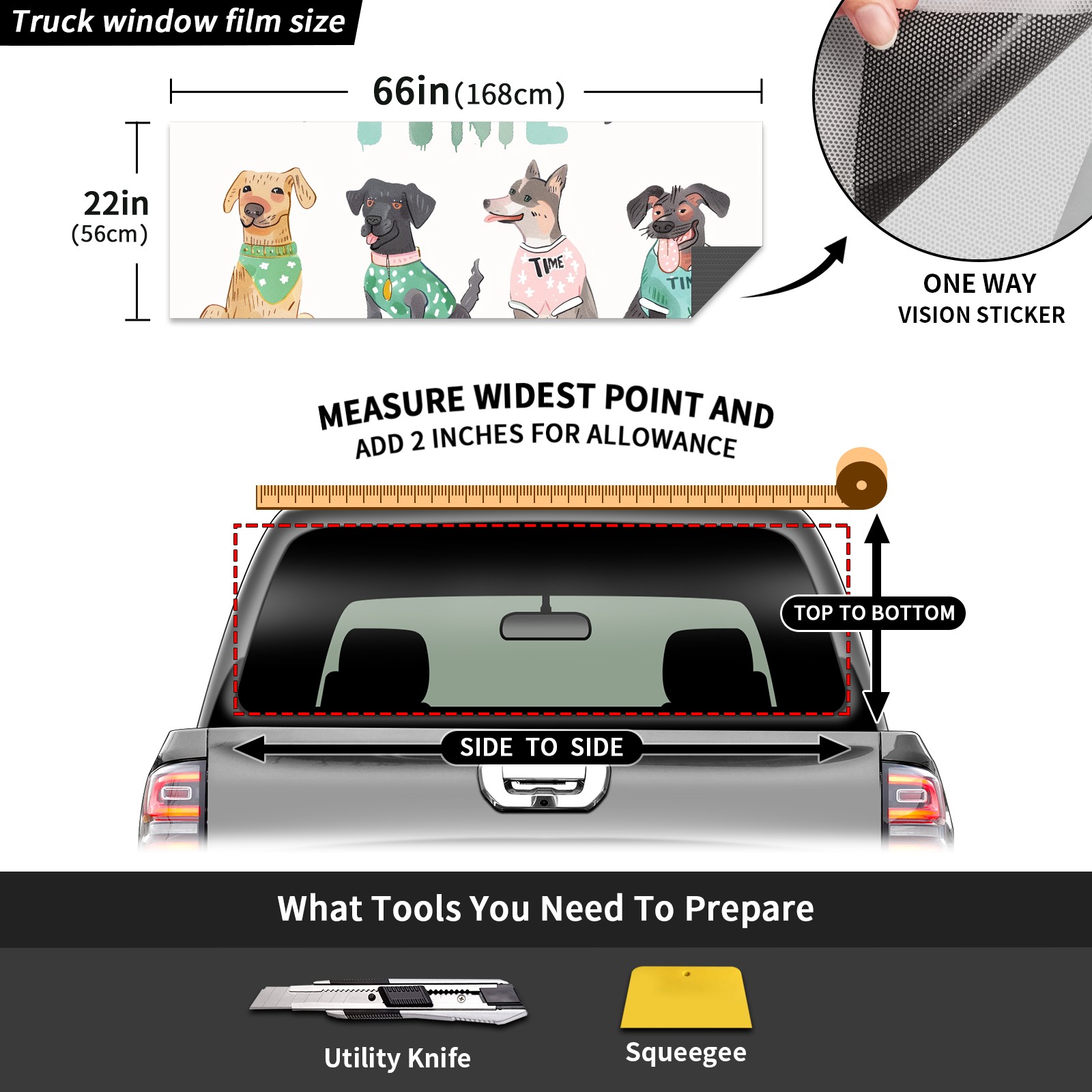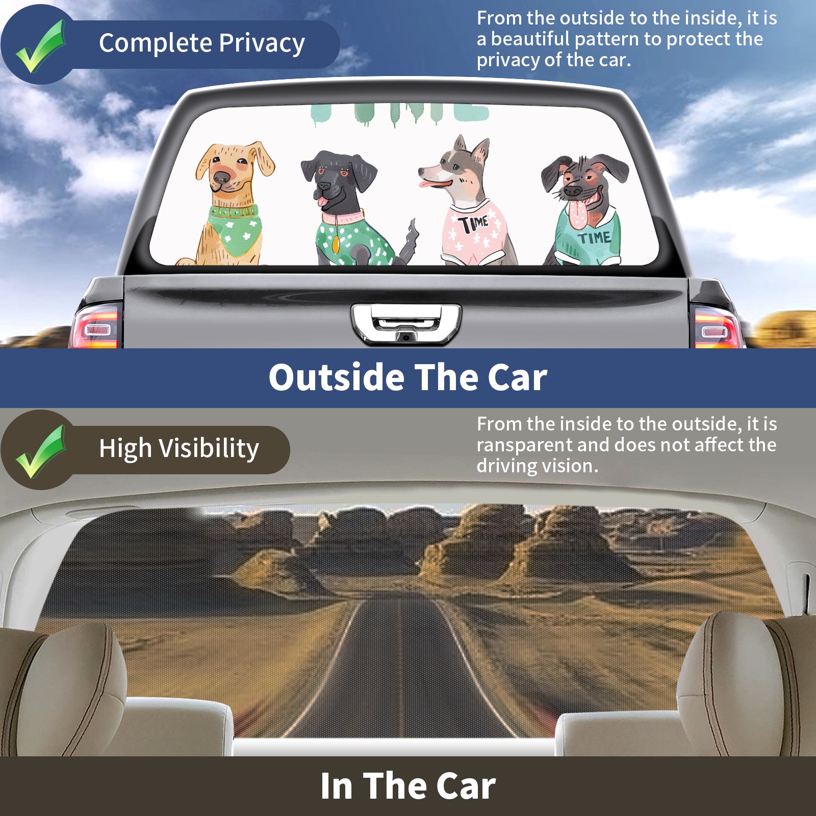 Truck Rear Window Graphics Decals Pickup Trucks Back Window Sticker Full Window Film Decal One Way Visual Waterproof Car Rear Tint Beagle
