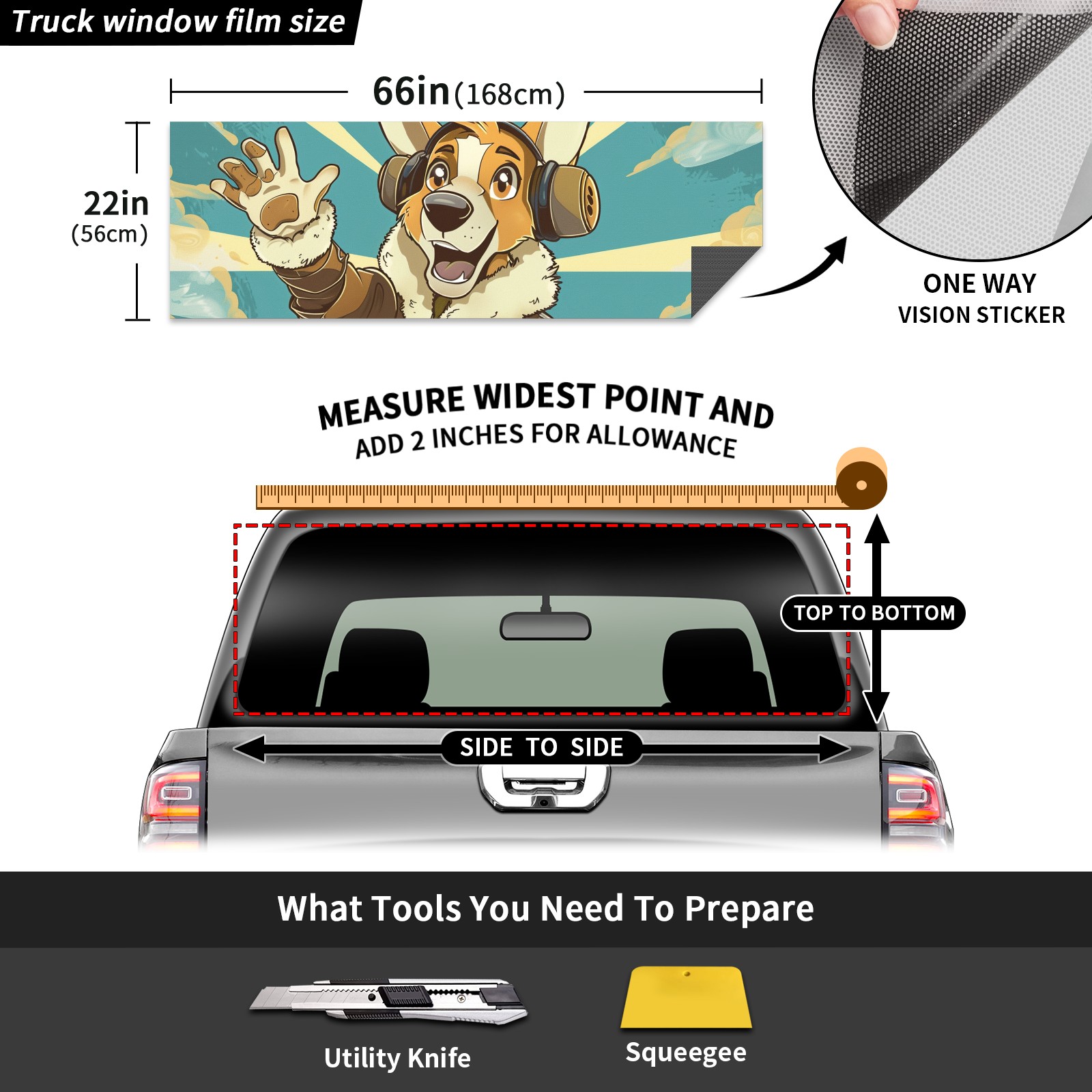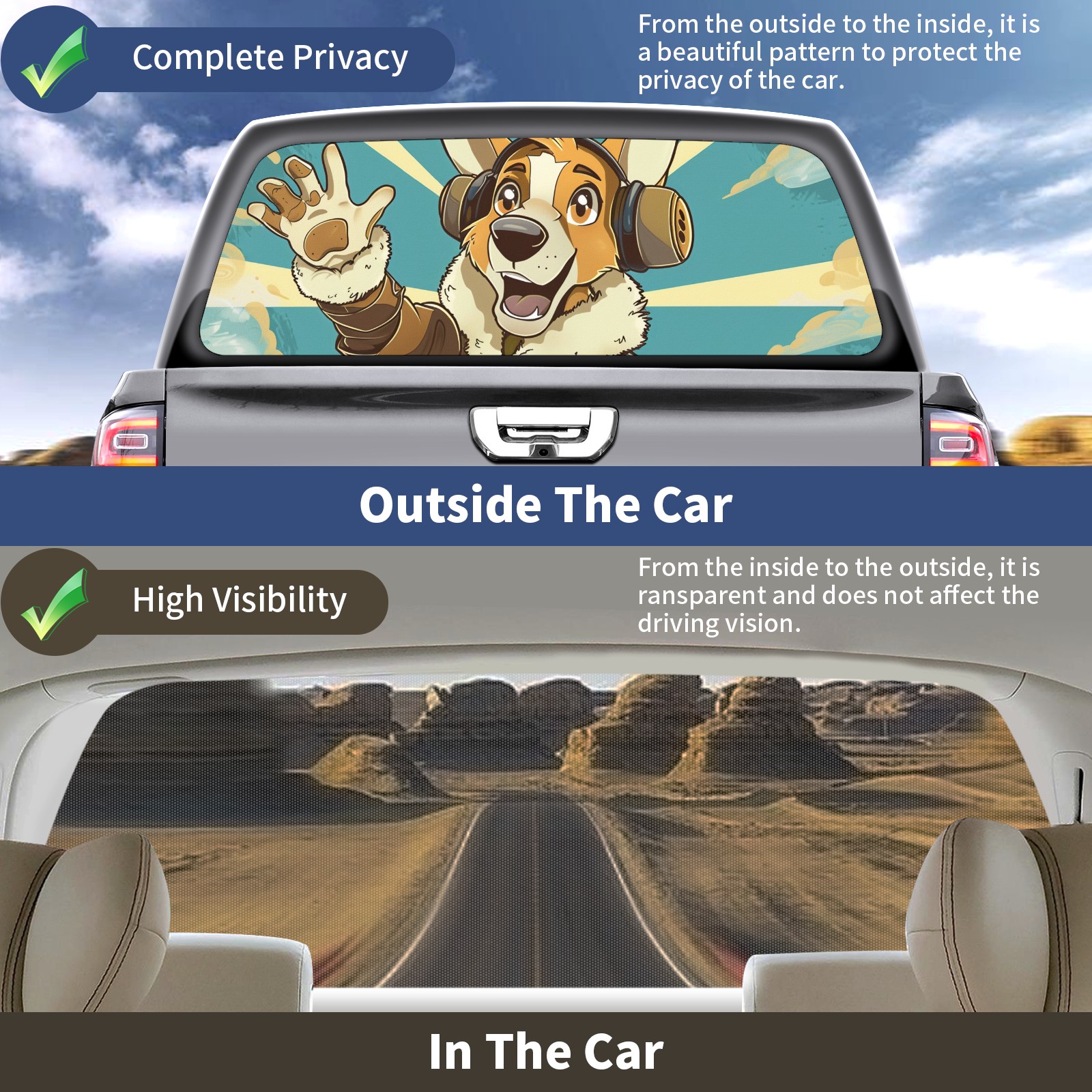 Truck Rear Window Graphics Decals Pickup Trucks Back Window Sticker Full Window Film Decal One Way Visual Waterproof Car Rear Tint Aviator's Greeting