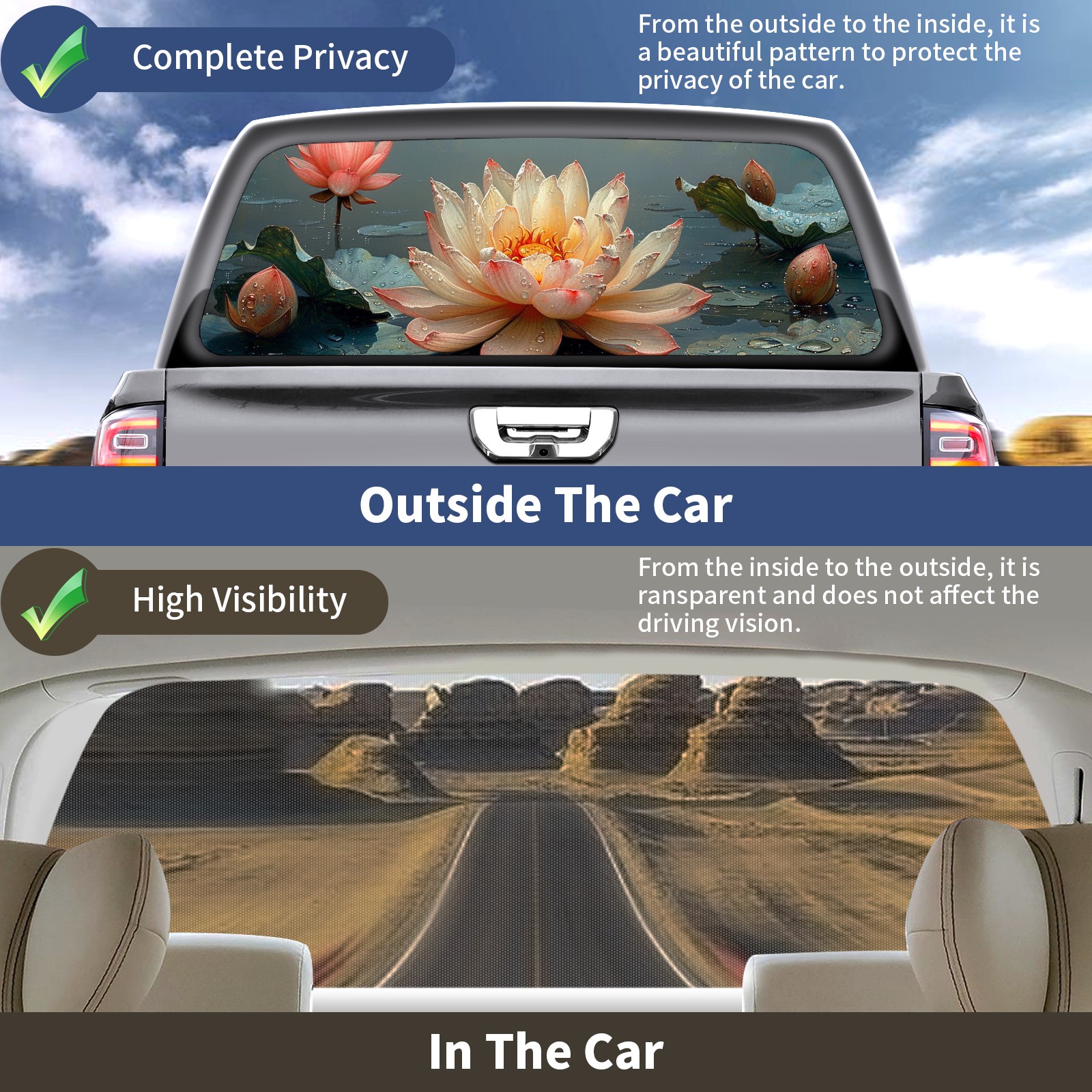 Truck Rear Window Graphics Decals Pickup Trucks Back Window Sticker Full Window Film Decal One Way Visual Waterproof Car Rear Tint Lotus