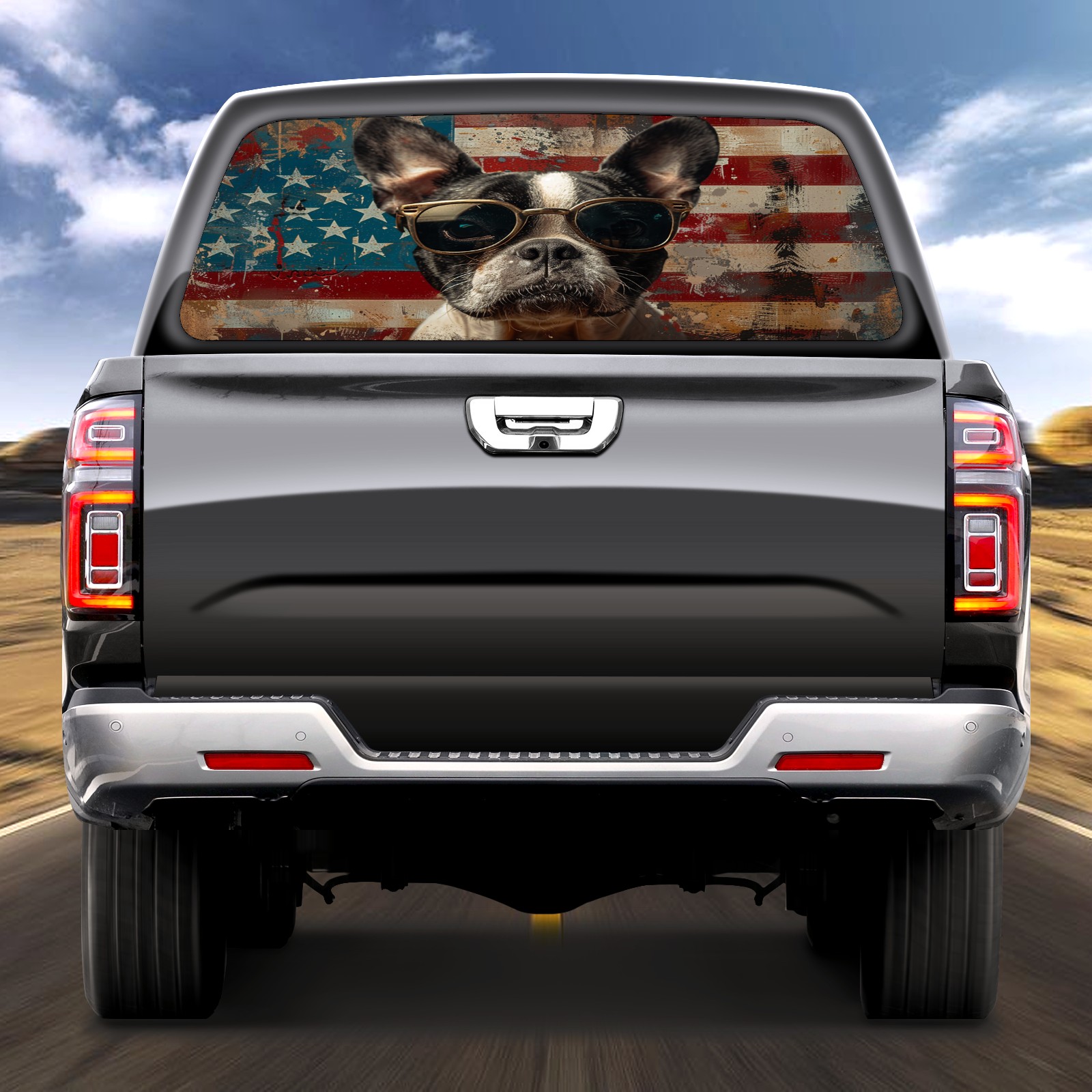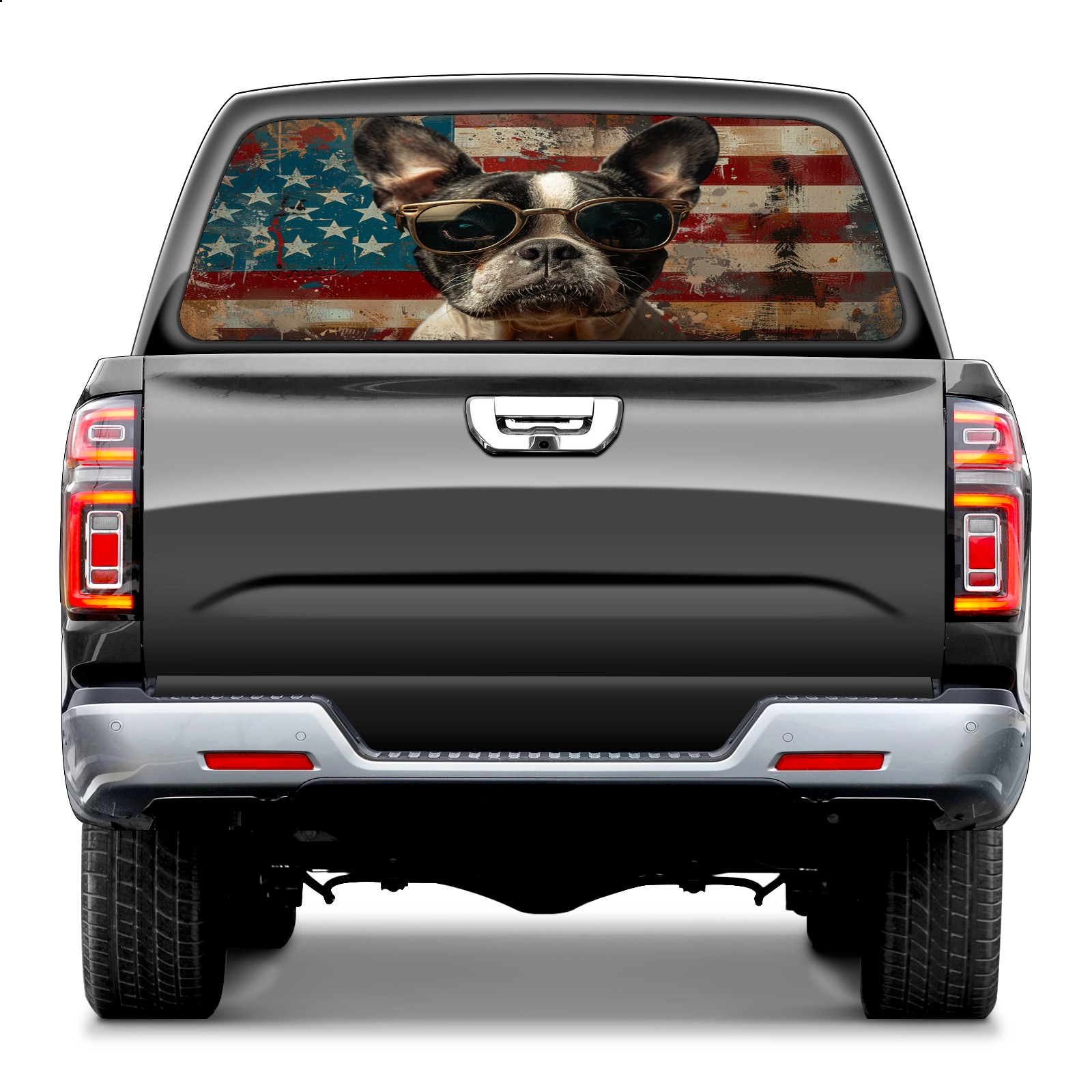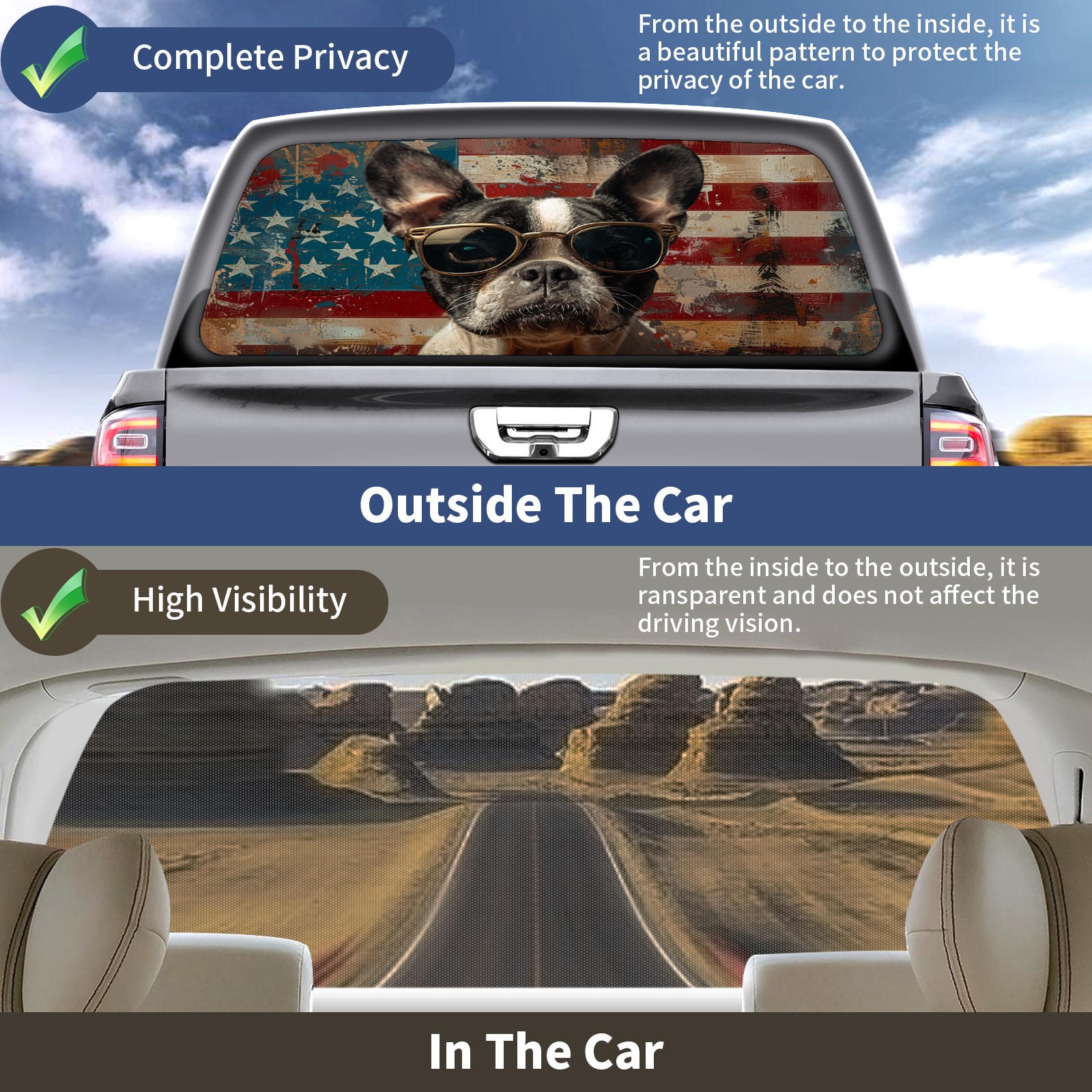 Truck Rear Window Graphics Decals Pickup Trucks Back Window Sticker Full Window Film Decal One Way Visual Waterproof Car Rear Tint Flag Dog