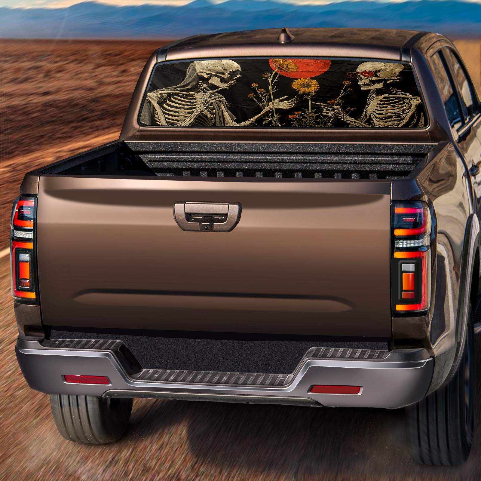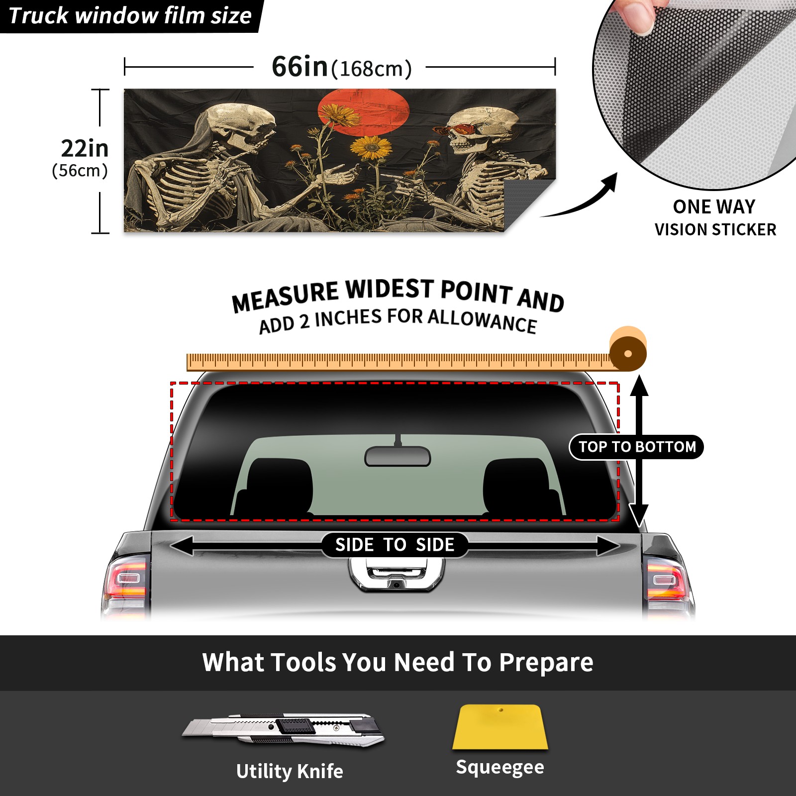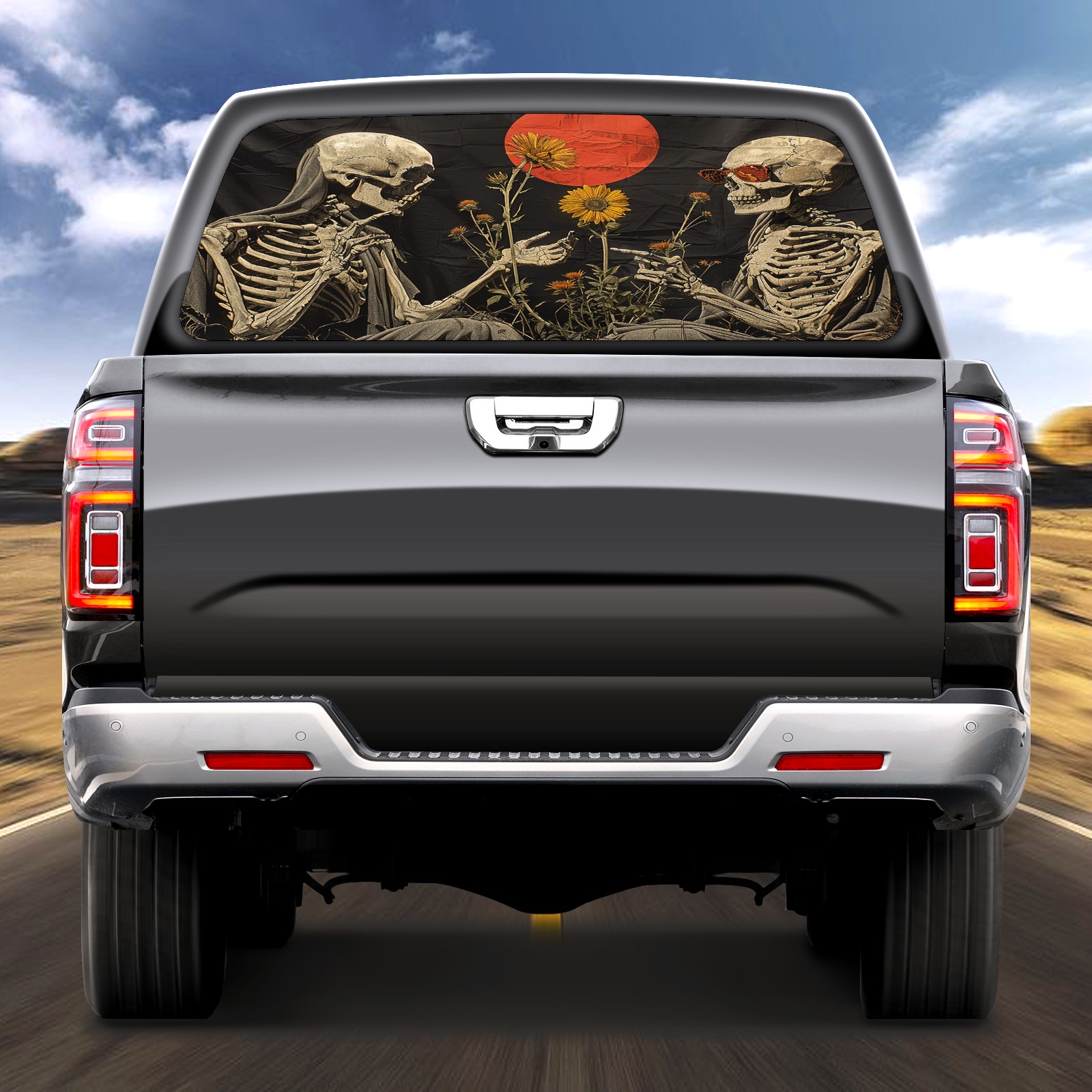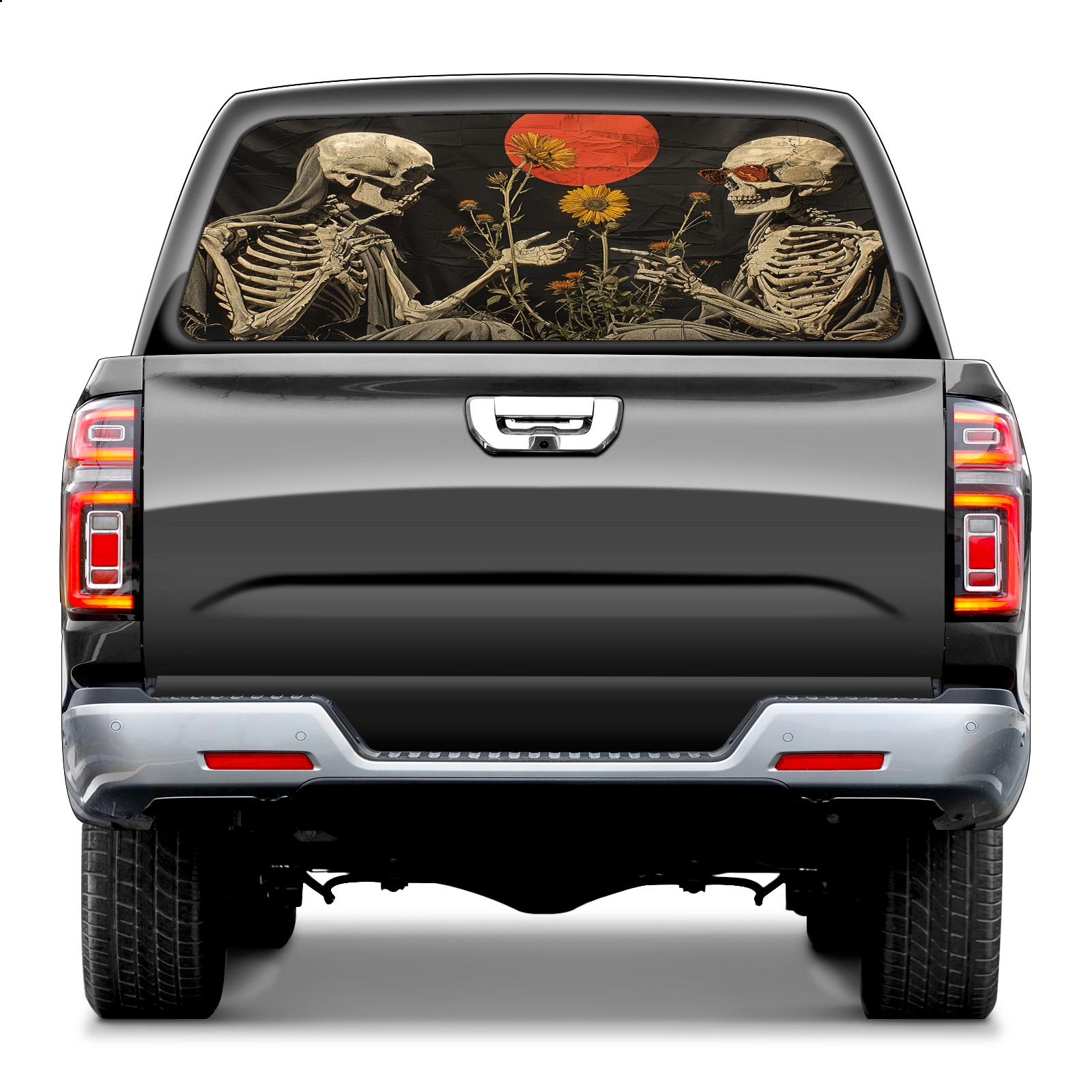 Truck Rear Window Graphics Decals Pickup Trucks Back Window Sticker Full Window Film Decal One Way Visual Waterproof Car Rear Tint Skull Party