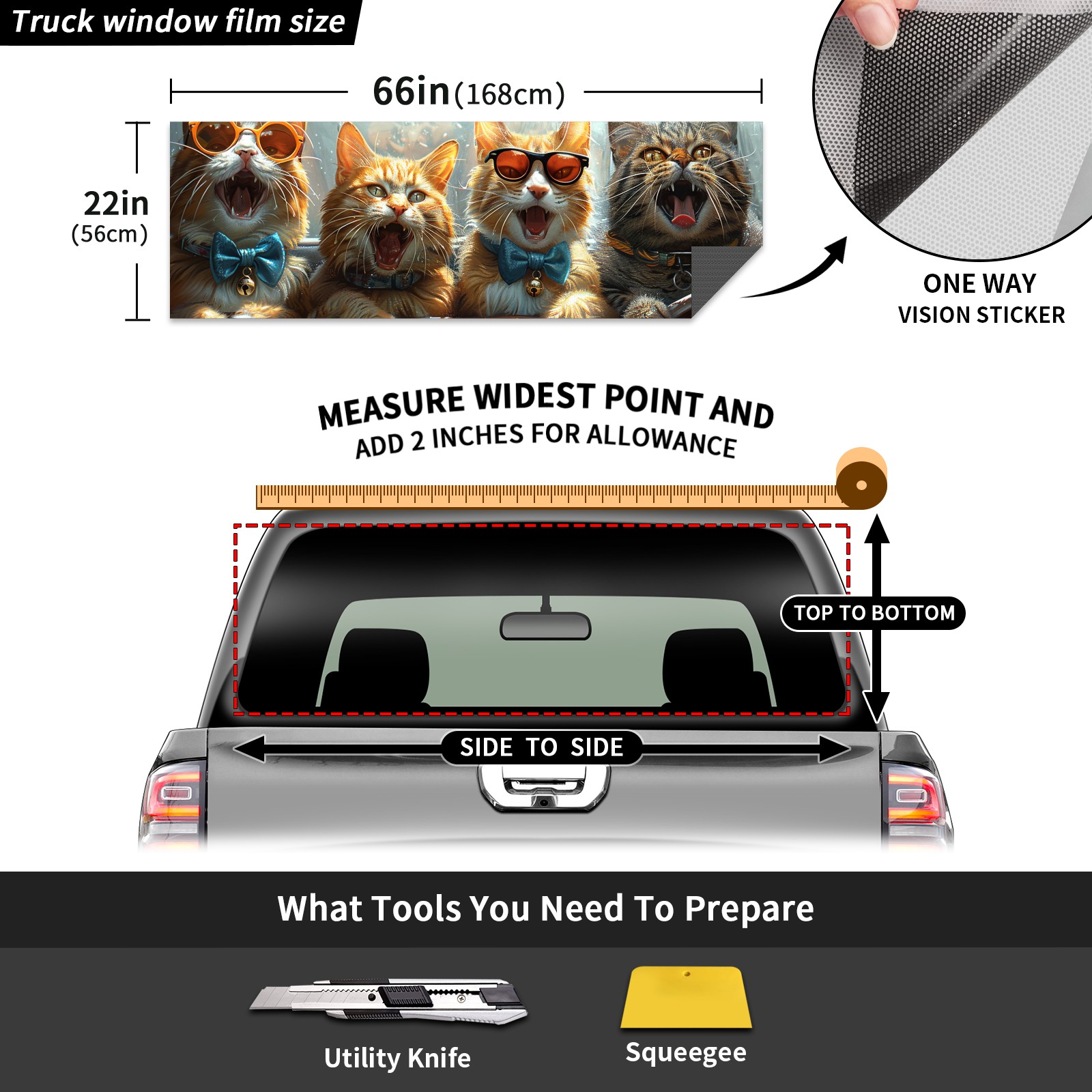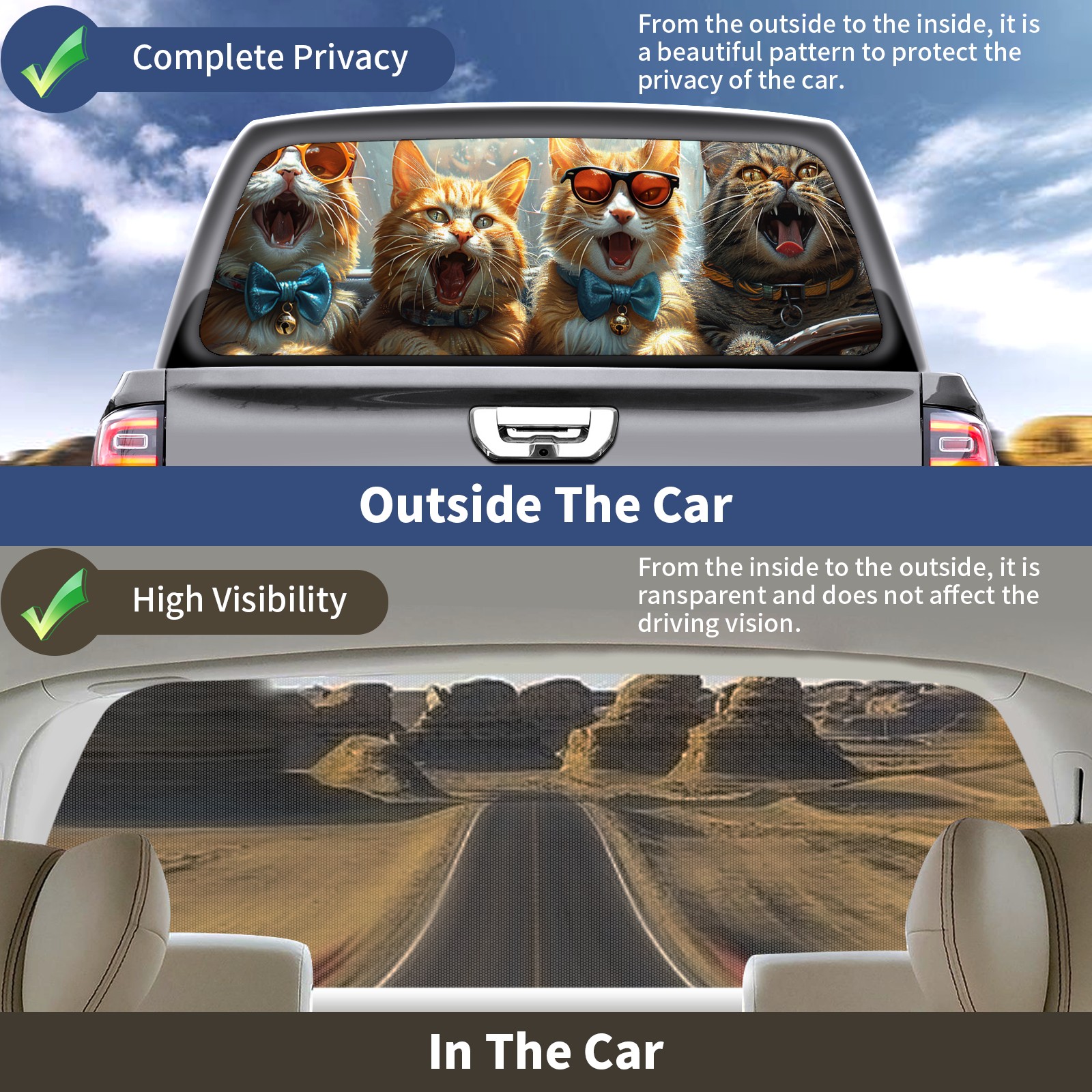 Truck Rear Window Graphics Decals Pickup Trucks Back Window Sticker Full Window Film Decal One Way Visual Waterproof Car Rear Tint Cat's Car Concert