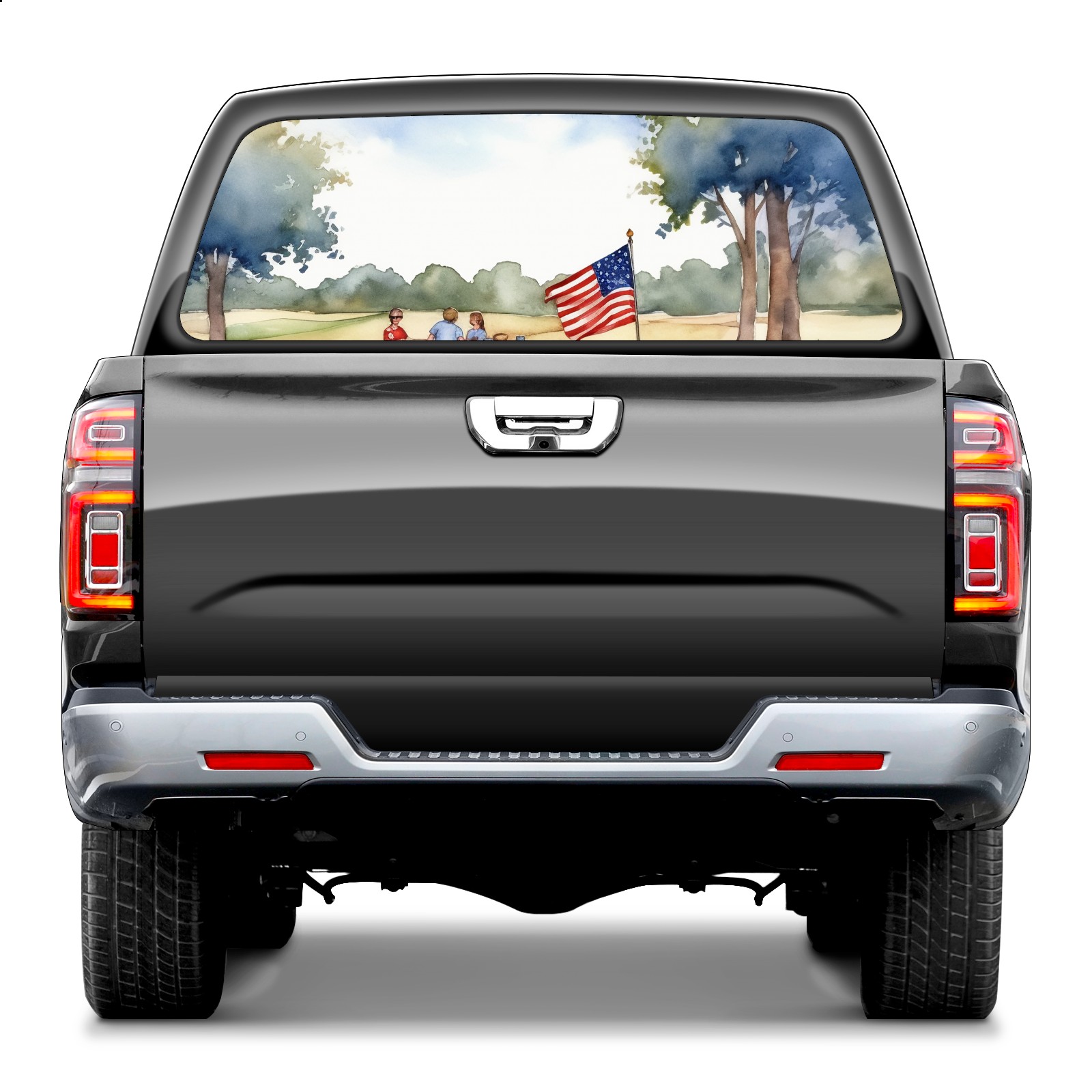 Truck Rear Window Graphics Decals Pickup Trucks Back Window Sticker Full Window Film Decal One Way Visual Waterproof Car Rear Tint Flag (42)