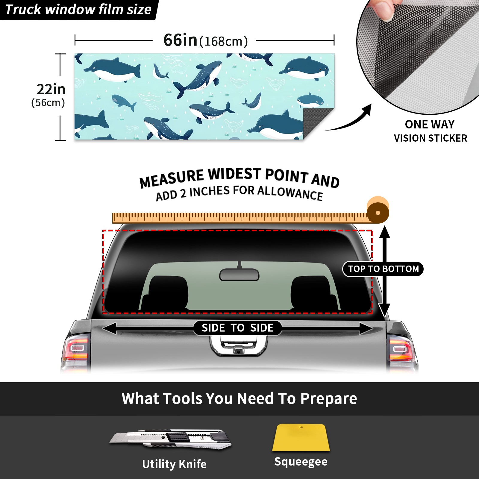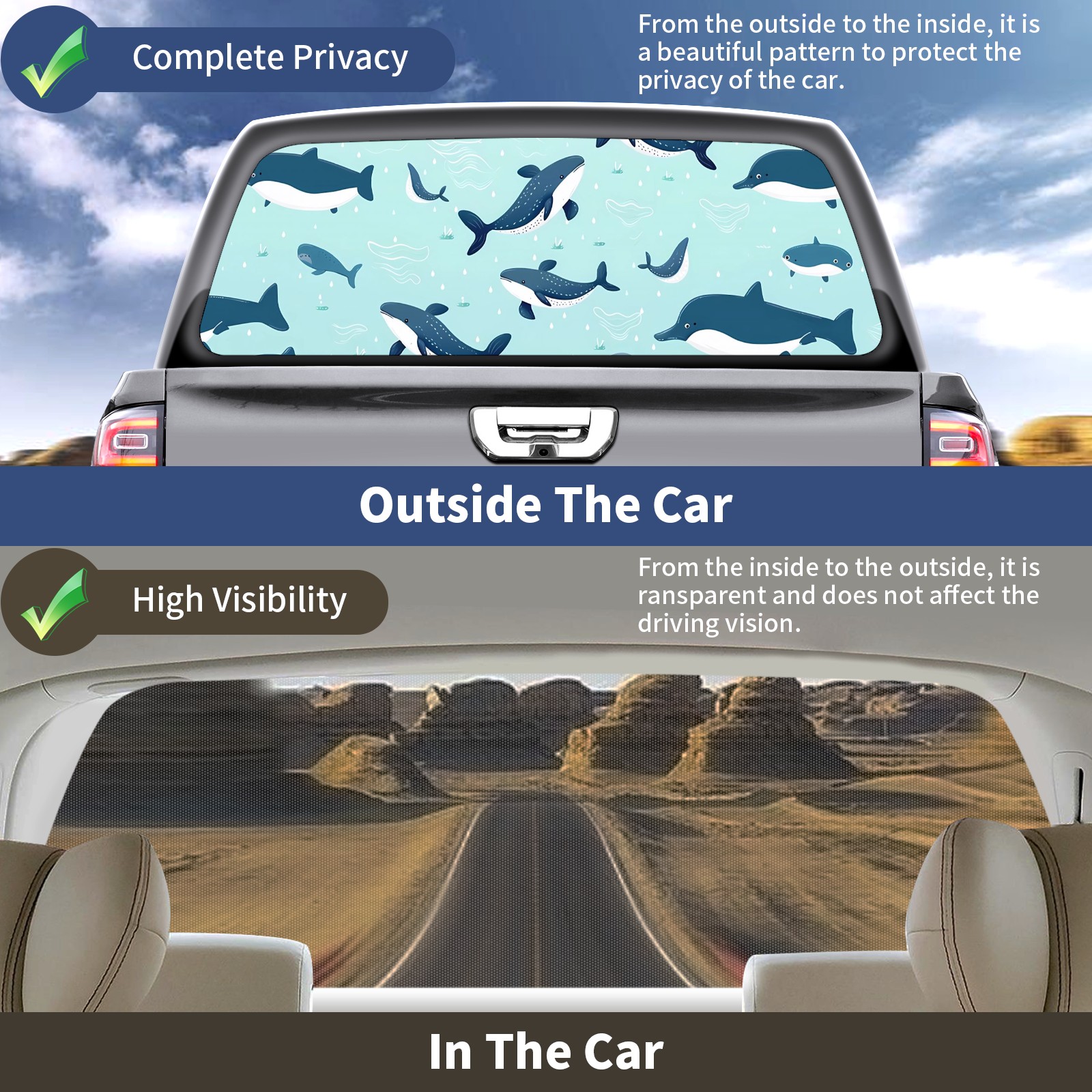 Truck Rear Window Graphics Decals Pickup Trucks Back Window Sticker Full Window Film Decal One Way Visual Waterproof Car Rear Tint Blue Little Whale