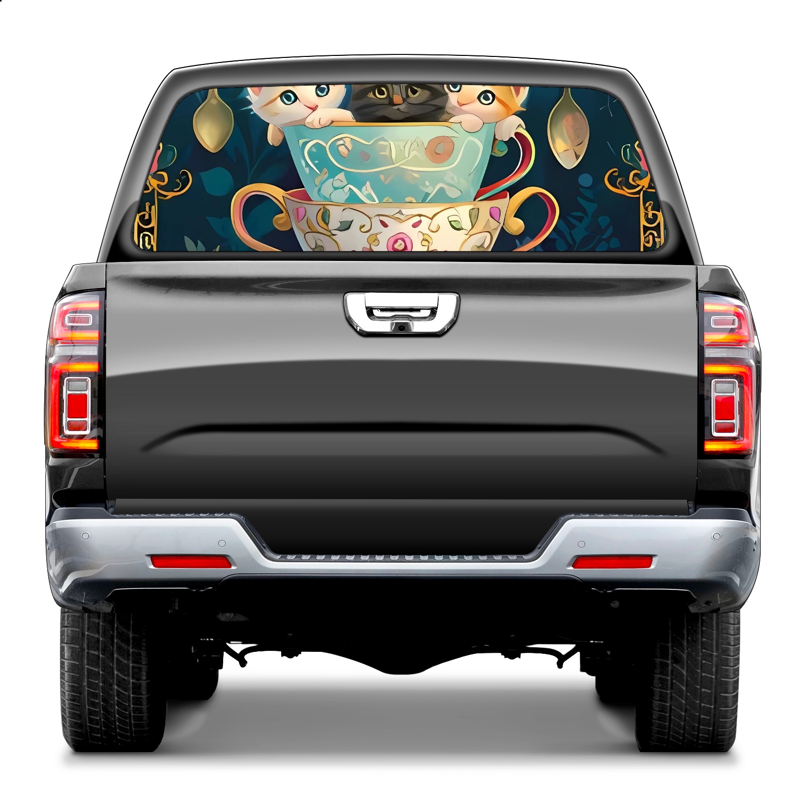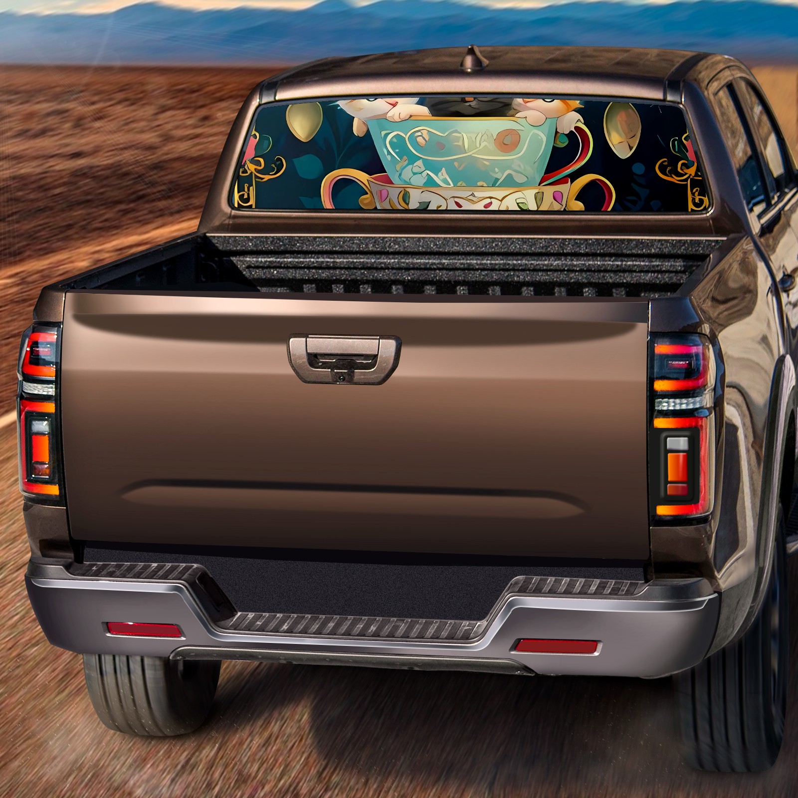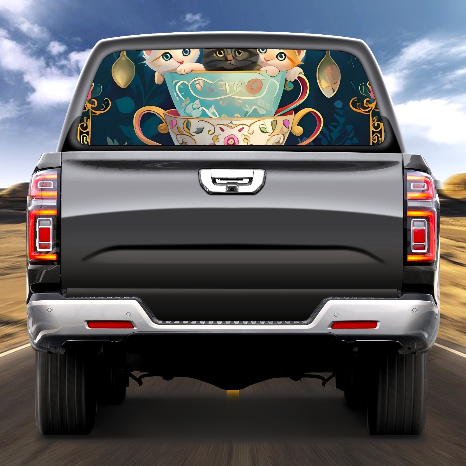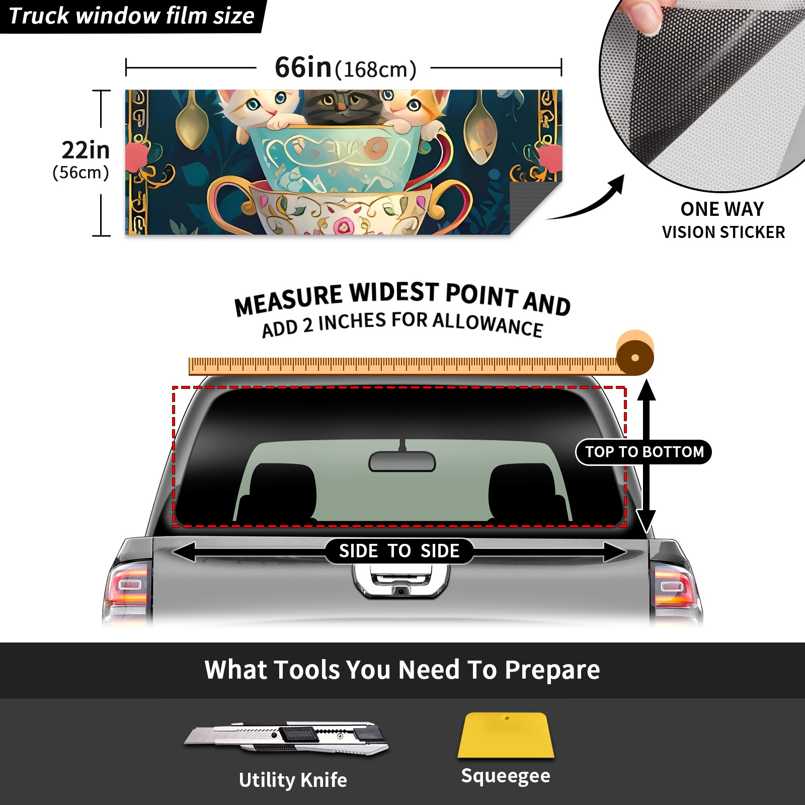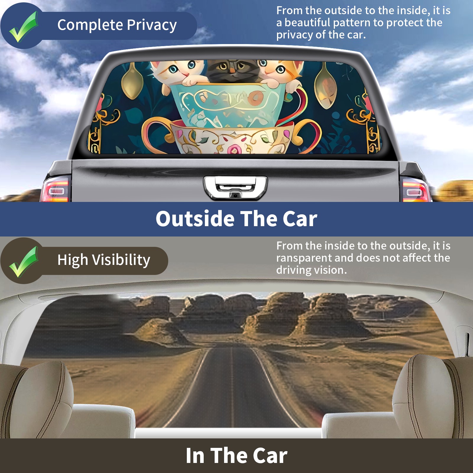 Truck Rear Window Graphics Decals Pickup Trucks Back Window Sticker Full Window Film Decal One Way Visual Waterproof Car Rear Tint Cupware Cat
