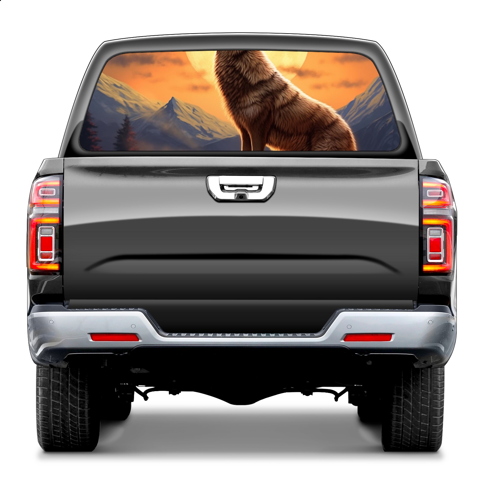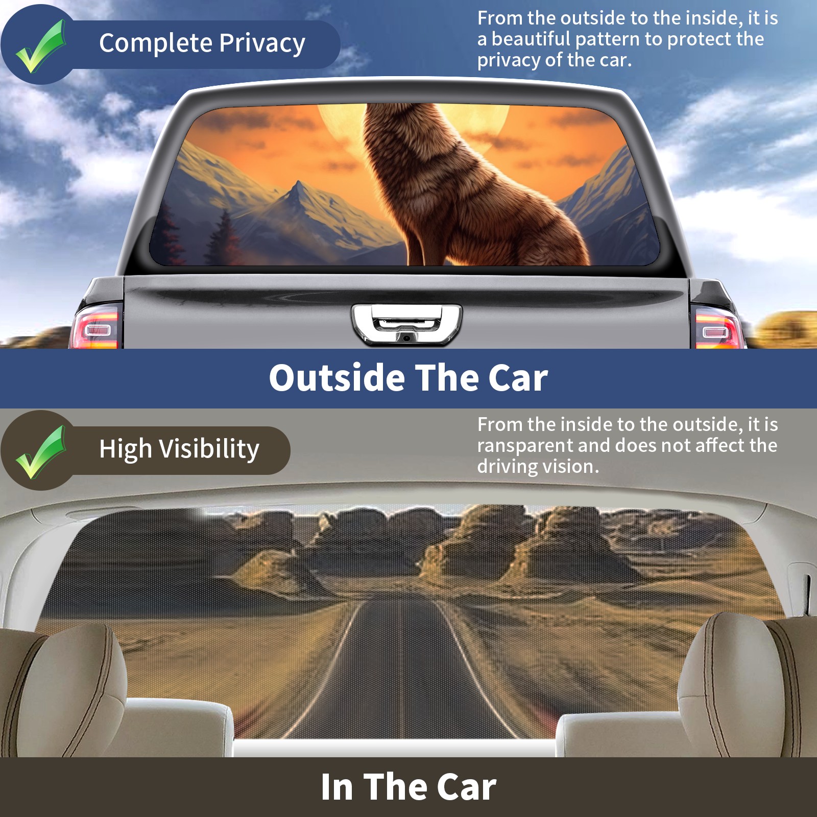 Truck Rear Window Graphics Decals Pickup Trucks Back Window Sticker Full Window Film Decal One Way Visual Waterproof Car Rear Tint Wolf (3)