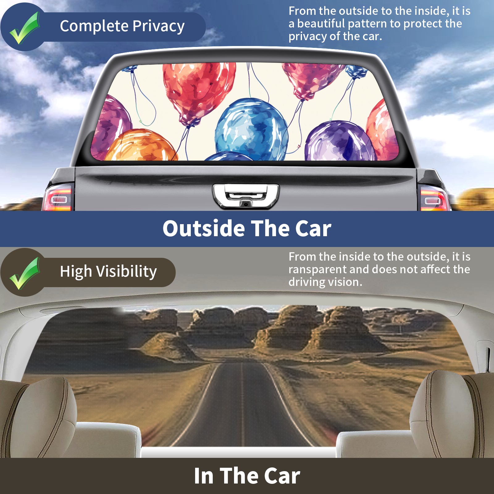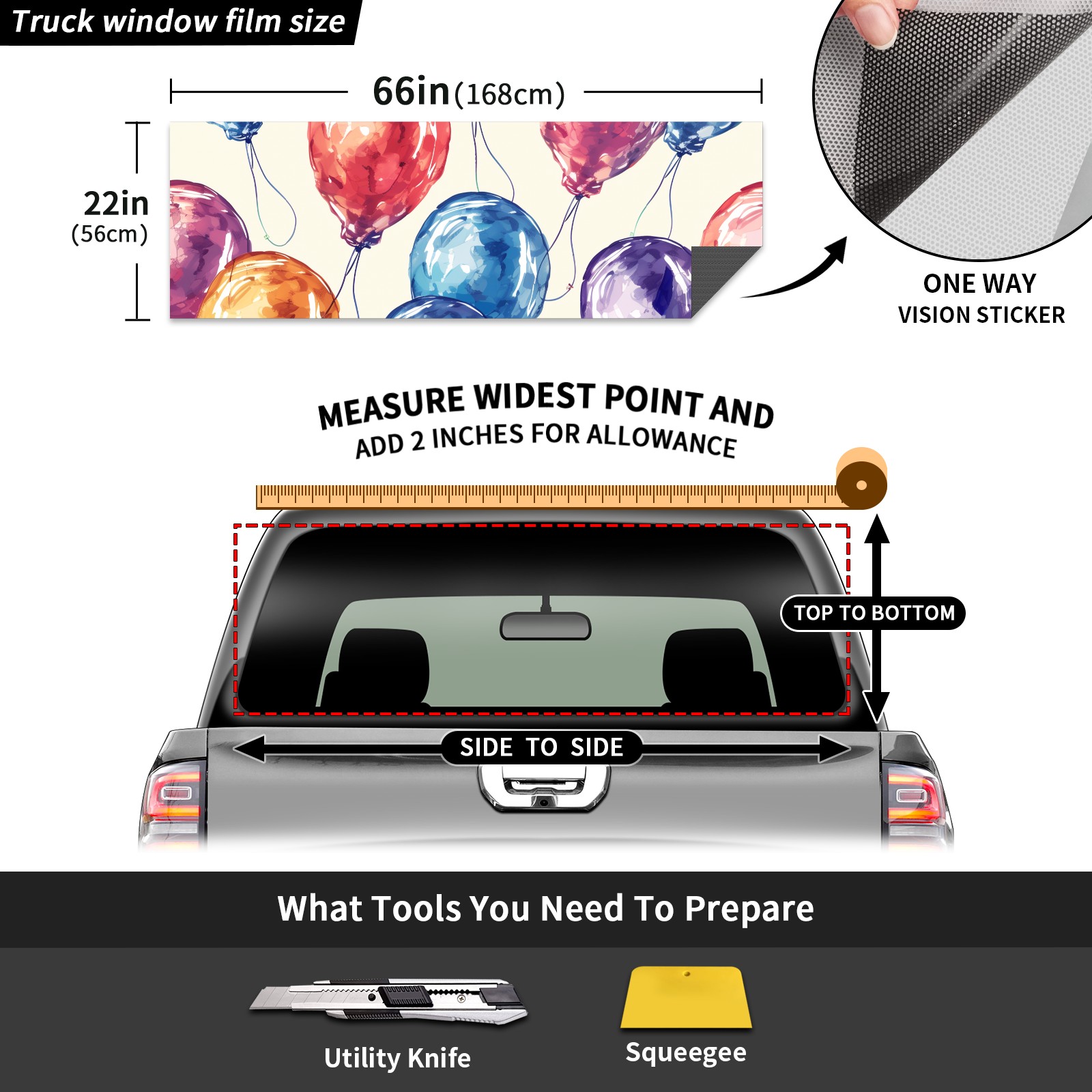 Truck Rear Window Graphics Decals Pickup Trucks Back Window Sticker Full Window Film Decal One Way Visual Waterproof Car Rear Tint Painted Balloons