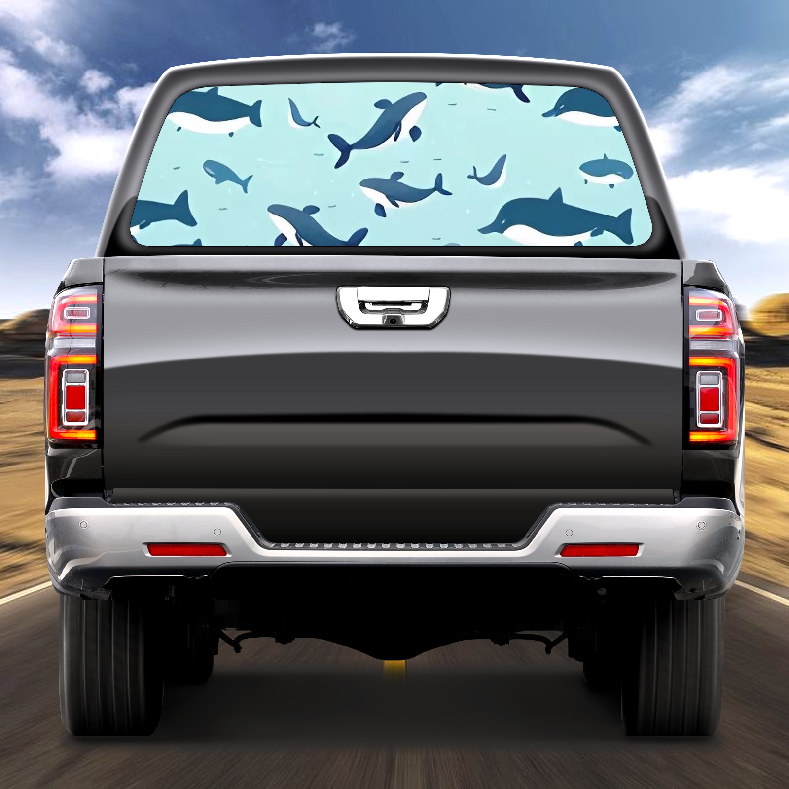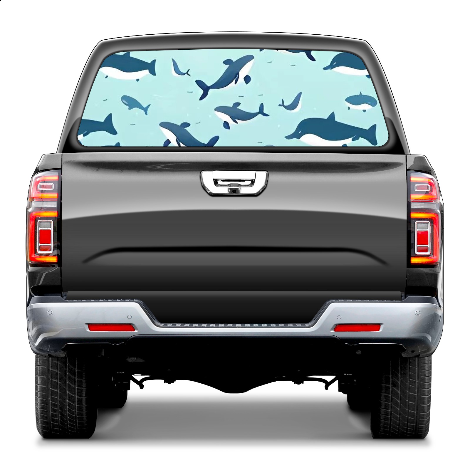 Truck Rear Window Graphics Decals Pickup Trucks Back Window Sticker Full Window Film Decal One Way Visual Waterproof Car Rear Tint Blue Little Whale