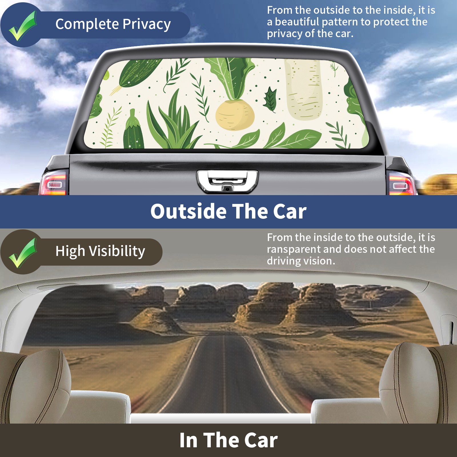 Truck Rear Window Graphics Decals Pickup Trucks Back Window Sticker Full Window Film Decal One Way Visual Waterproof Car Rear Tint Green Vegetable