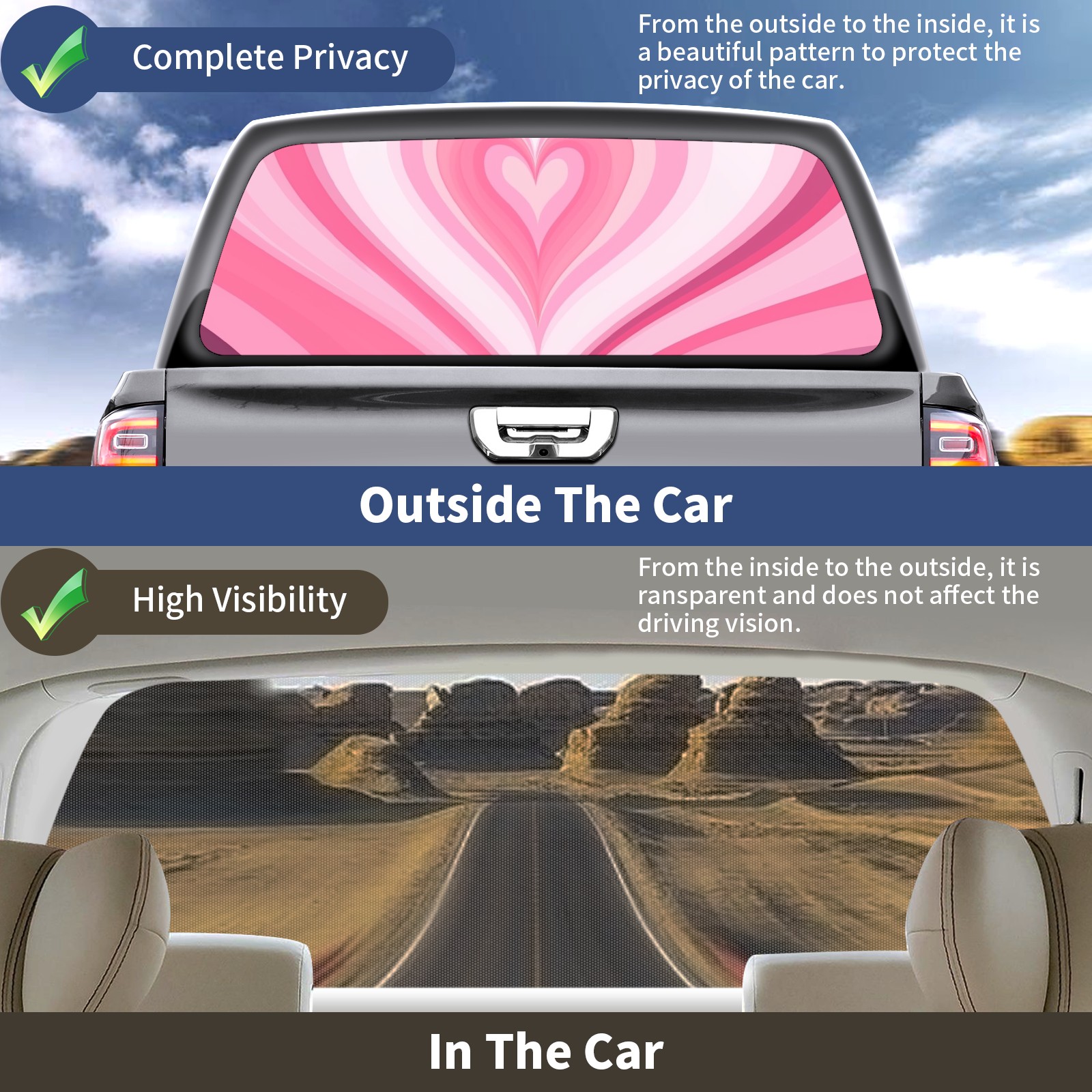 Truck Rear Window Graphics Decals Pickup Trucks Back Window Sticker Full Window Film Decal One Way Visual Waterproof Car Rear Tint Pink Hearts (2)