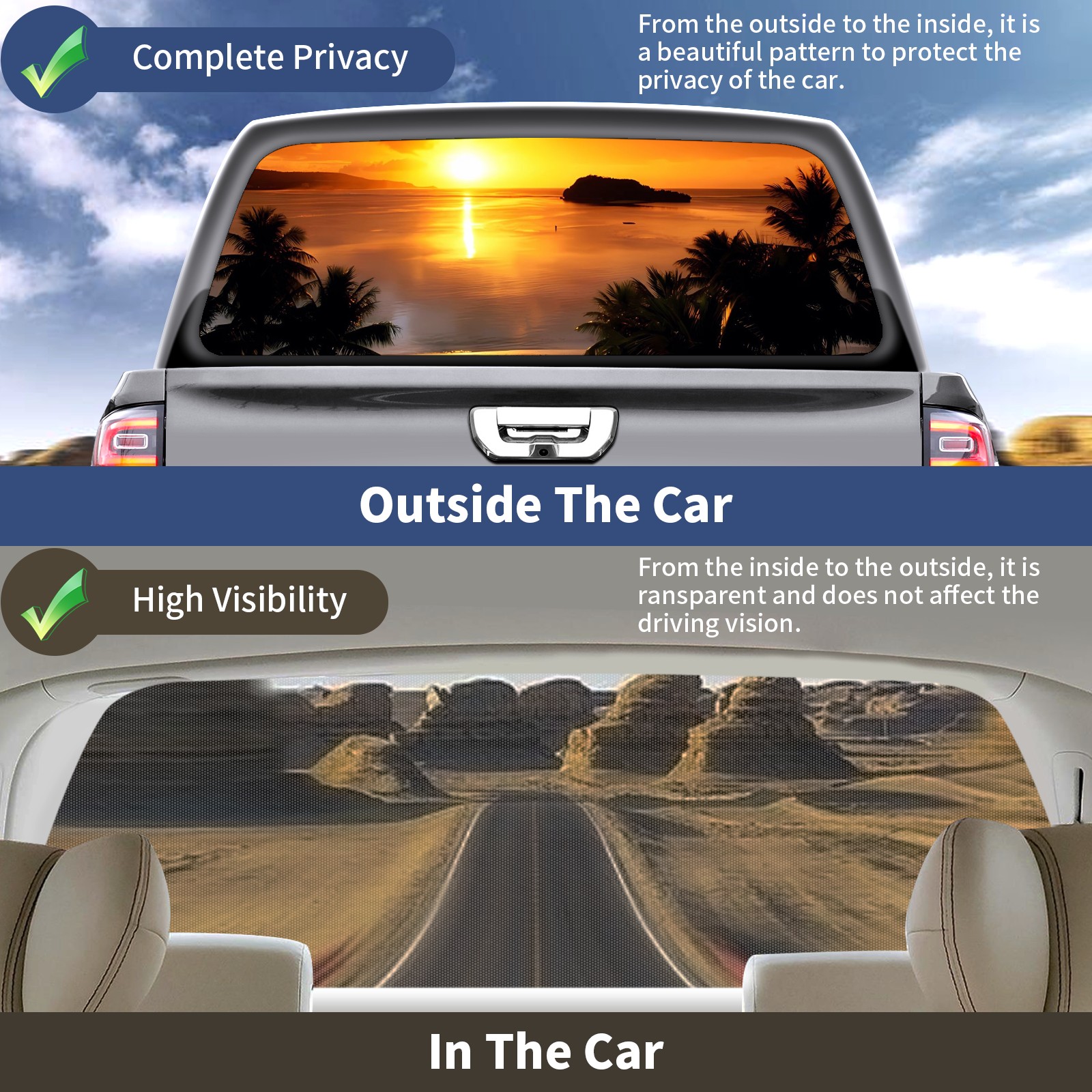 • </b>Window film one-way light transmission Protect your privacy while allowing you to enjoy the scenery outside your window!</b> <br> </b>●Decals Instructions Usage--Teach You To Use Quickly</b> <br> 1.Clean the window galss thoroughly <br> 2.Use a Squeegee or other card to scrape off the remaining water and bumps(don't use too much force) <br> 3.Remove the film's back cover .Use a knife to cut out a suitable contour and wipe off the remaining water(you can also use a hair dryer to blow dry) <br> 4.Find a suitable location and stick a sticker <br> </b>●Unique Design</b> <br> ZXIVGOQFR Back window stickers ‘s smart looking and unique cute design makes your vehicle special under sunshine. Makes your car easy to identify, perfect for finding your car in crowded parking lots and garages.funny visor reflects personality and attitude. <br> </b>●Perfect Gift for all Drivers<br></b> We create all the gifts and accessories you only need to choose what you like. Get full tailgate wraps, rear window decals, and everything you need to make your pickup truck look awesome. <br> </b> Decorate Your Pickup Truck With Rear Window Decal Today!</b>
