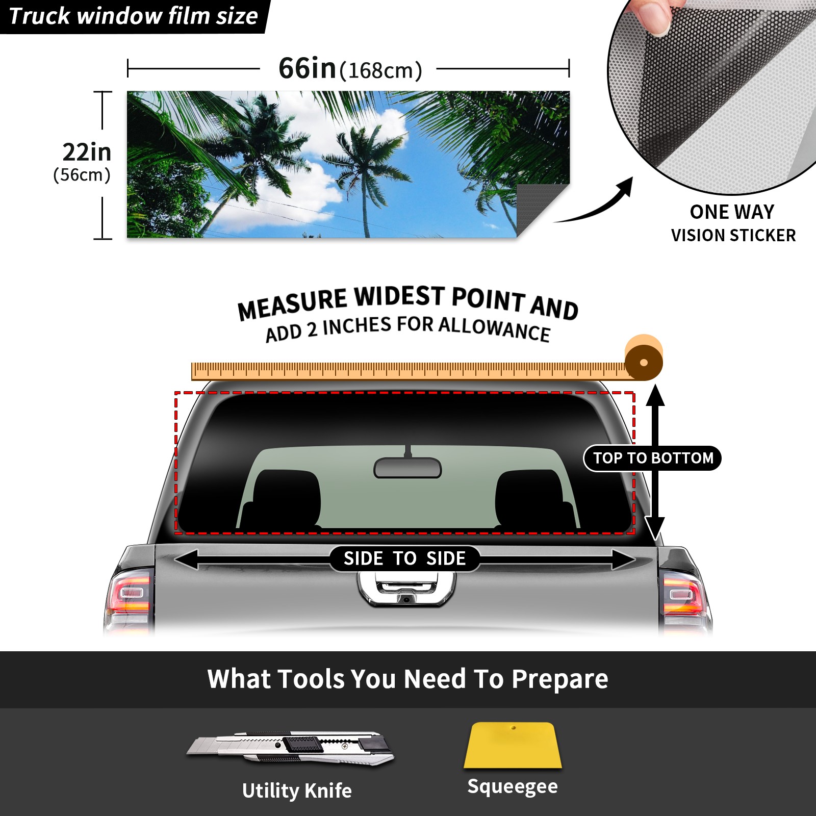 Truck Rear Window Graphics Decals Pickup Trucks Back Window Sticker Full Window Film Decal One Way Visual Waterproof Car Rear Tint Sky 8