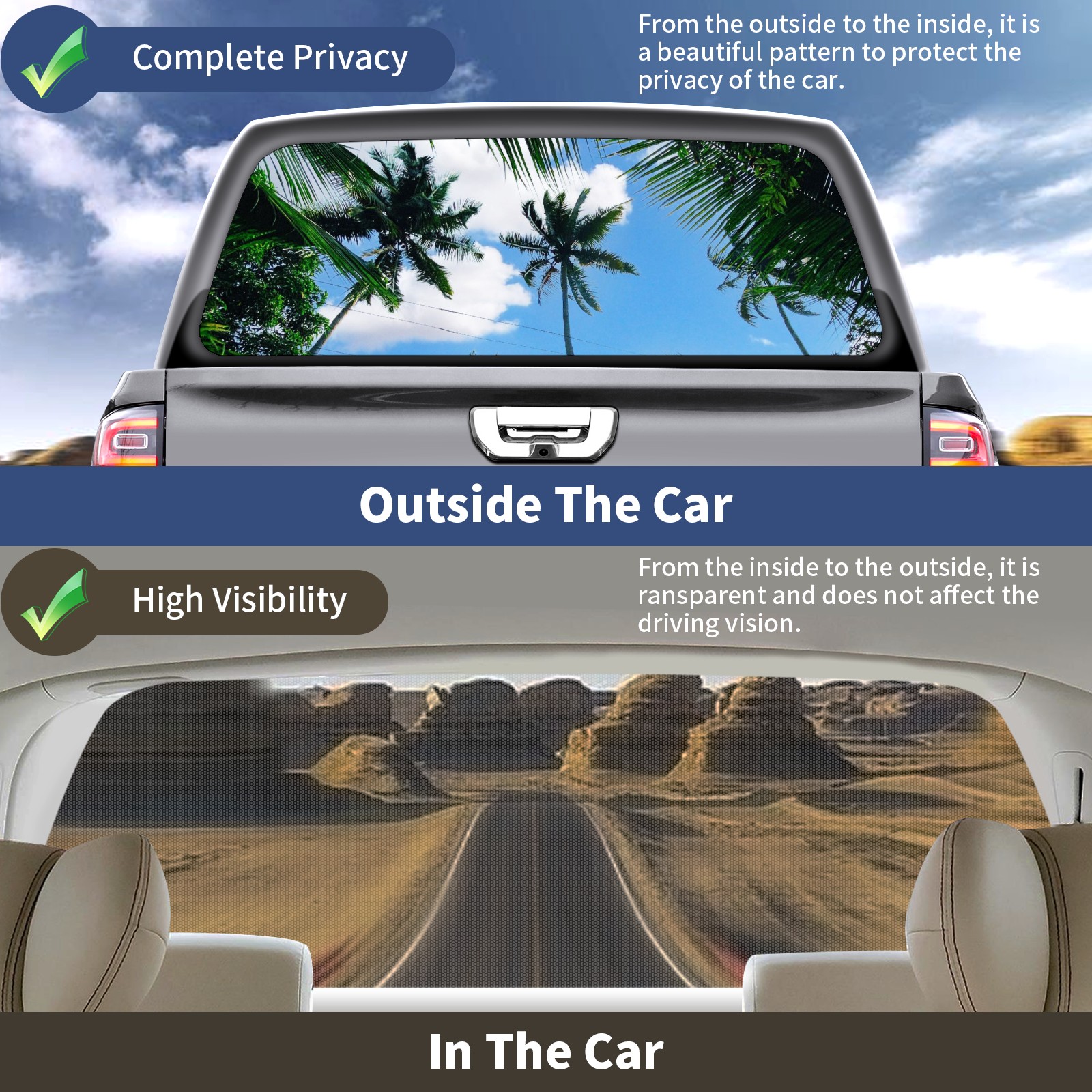 • </b>Window film one-way light transmission Protect your privacy while allowing you to enjoy the scenery outside your window!</b> <br> </b>●Decals Instructions Usage--Teach You To Use Quickly</b> <br> 1.Clean the window galss thoroughly <br> 2.Use a Squeegee or other card to scrape off the remaining water and bumps(don't use too much force) <br> 3.Remove the film's back cover .Use a knife to cut out a suitable contour and wipe off the remaining water(you can also use a hair dryer to blow dry) <br> 4.Find a suitable location and stick a sticker <br> </b>●Unique Design</b> <br> ZXIVGOQFR Back window stickers ‘s smart looking and unique cute design makes your vehicle special under sunshine. Makes your car easy to identify, perfect for finding your car in crowded parking lots and garages.funny visor reflects personality and attitude. <br> </b>●Perfect Gift for all Drivers<br></b> We create all the gifts and accessories you only need to choose what you like. Get full tailgate wraps, rear window decals, and everything you need to make your pickup truck look awesome. <br> </b> Decorate Your Pickup Truck With Rear Window Decal Today!</b>